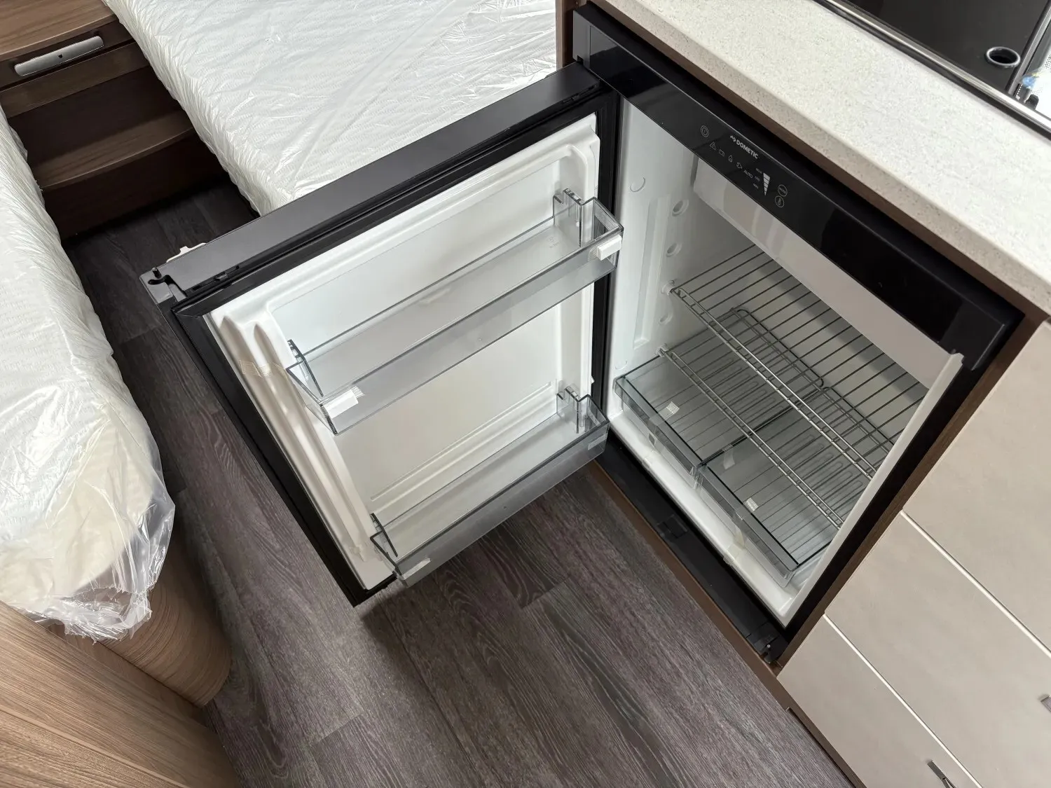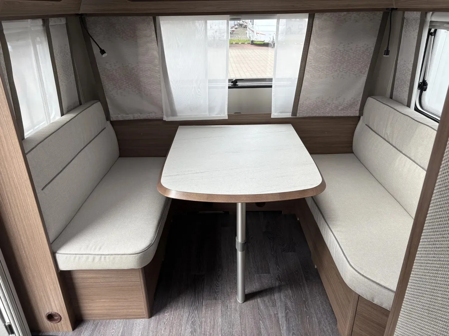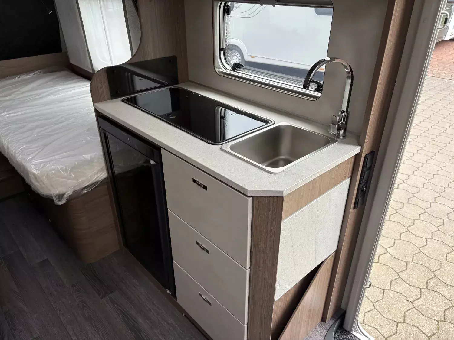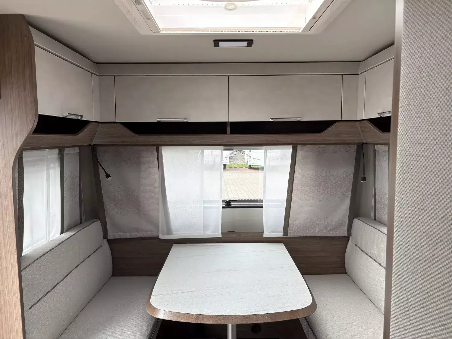 - Premium Interieur-Paket I (Deko-Paket Schlafen "CAZADORA": 4 Kissen und 2 Decken im Schlafbereich, TABBERT Komfort Schlafsystem mit flexiblem Tellerrost und WaterGEL-Matratze, Insektenschutztür, Füllstandsanzeige für Frischwassertank)