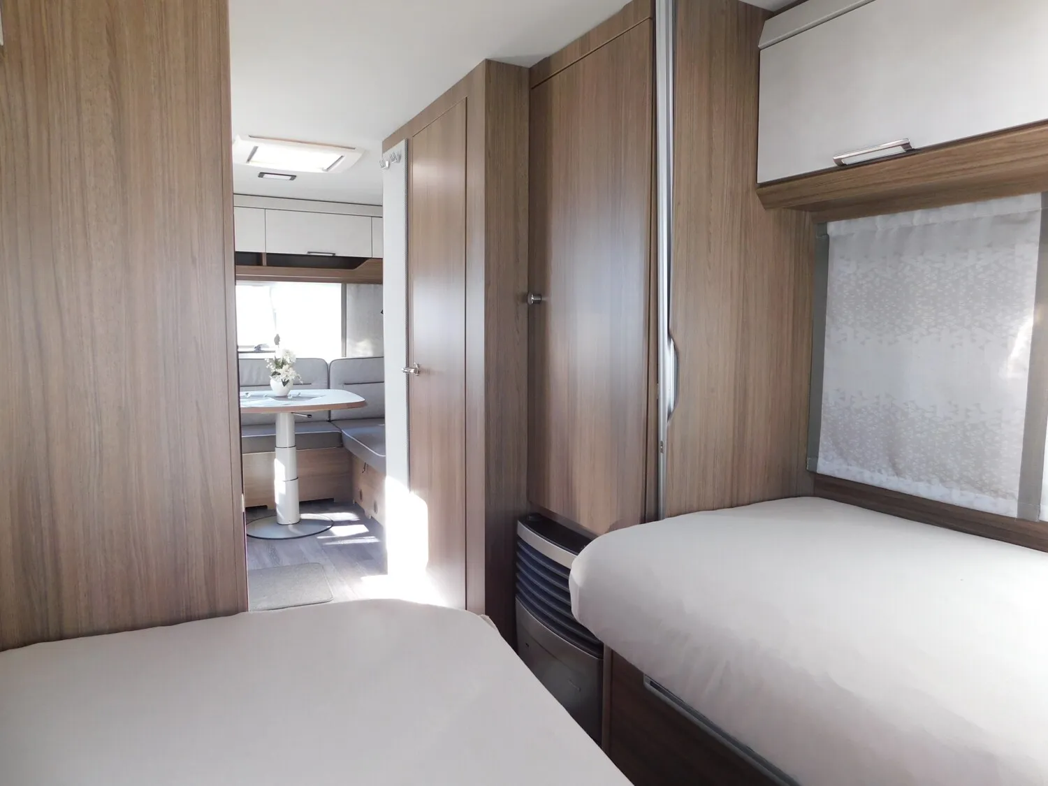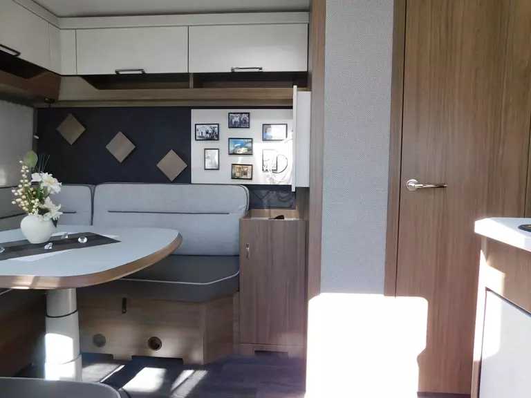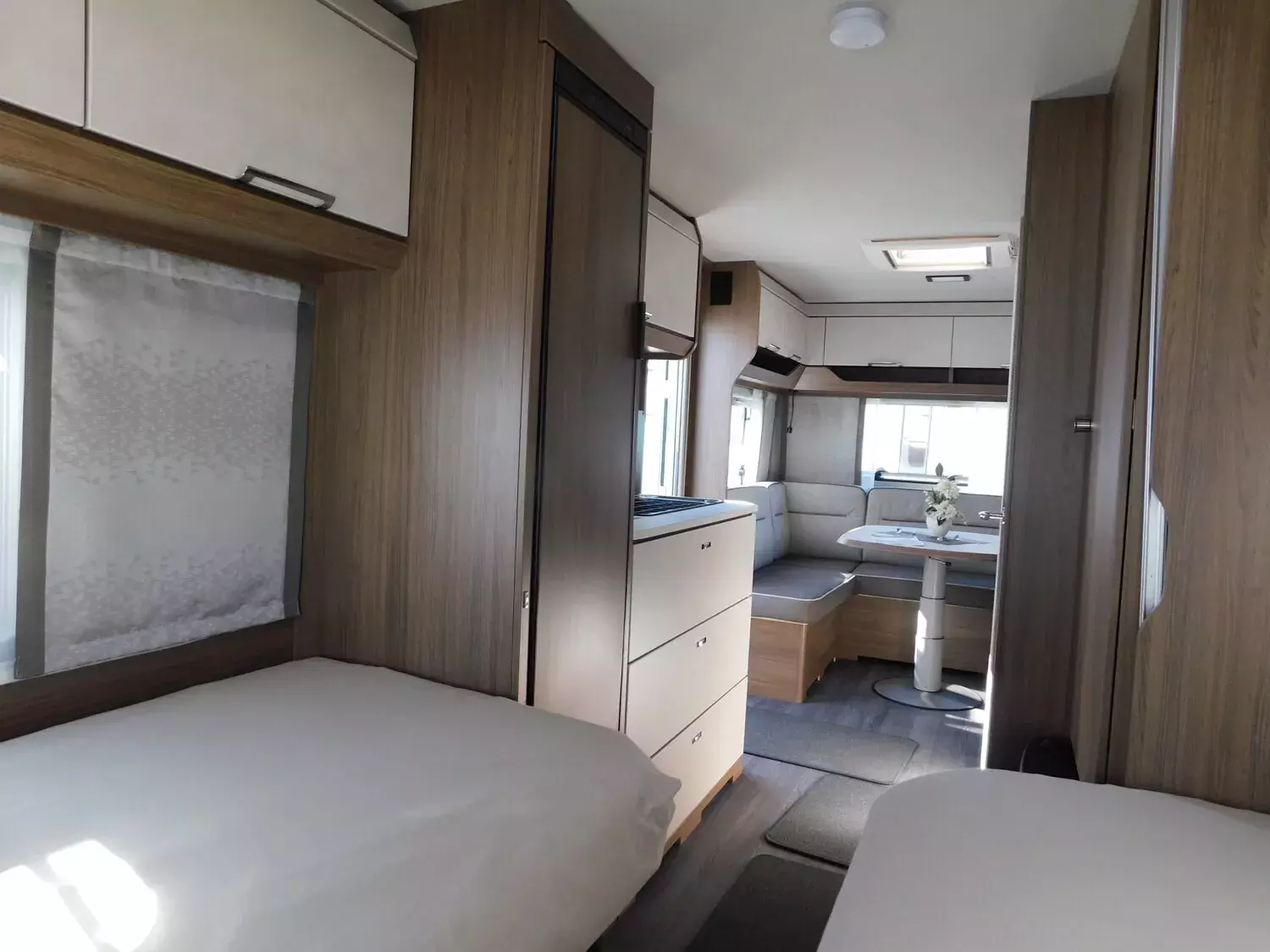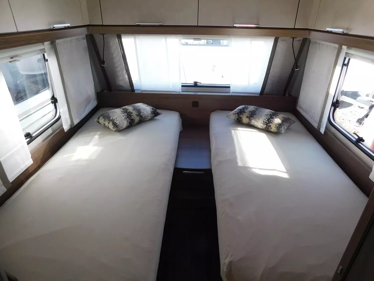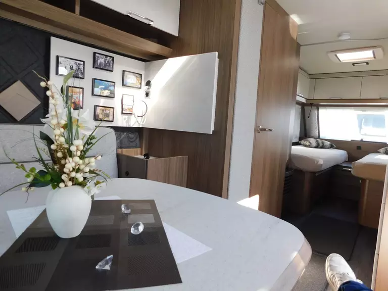 - Premium Interieur-Paket I (Deko-Paket Schlafen "CAZADORA": 4 Kissen und 2 Decken im Schlafbereich, TABBERT Komfort Schlafsystem mit flexiblem Tellerrost und WaterGEL-Matratze, Insektenschutztür, Füllstandsanzeige für Frischwassertank)