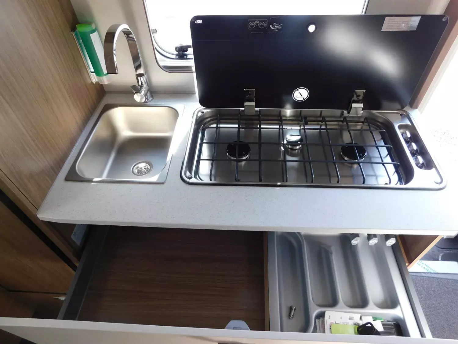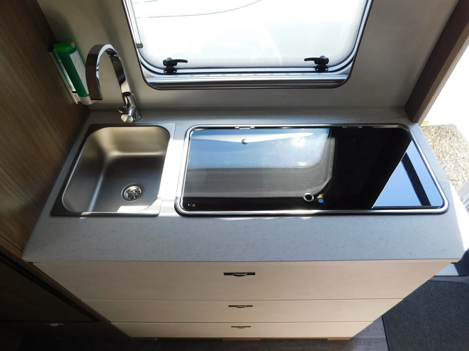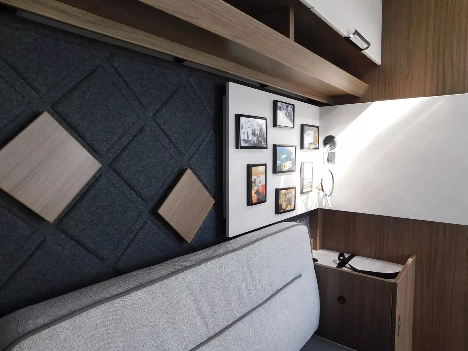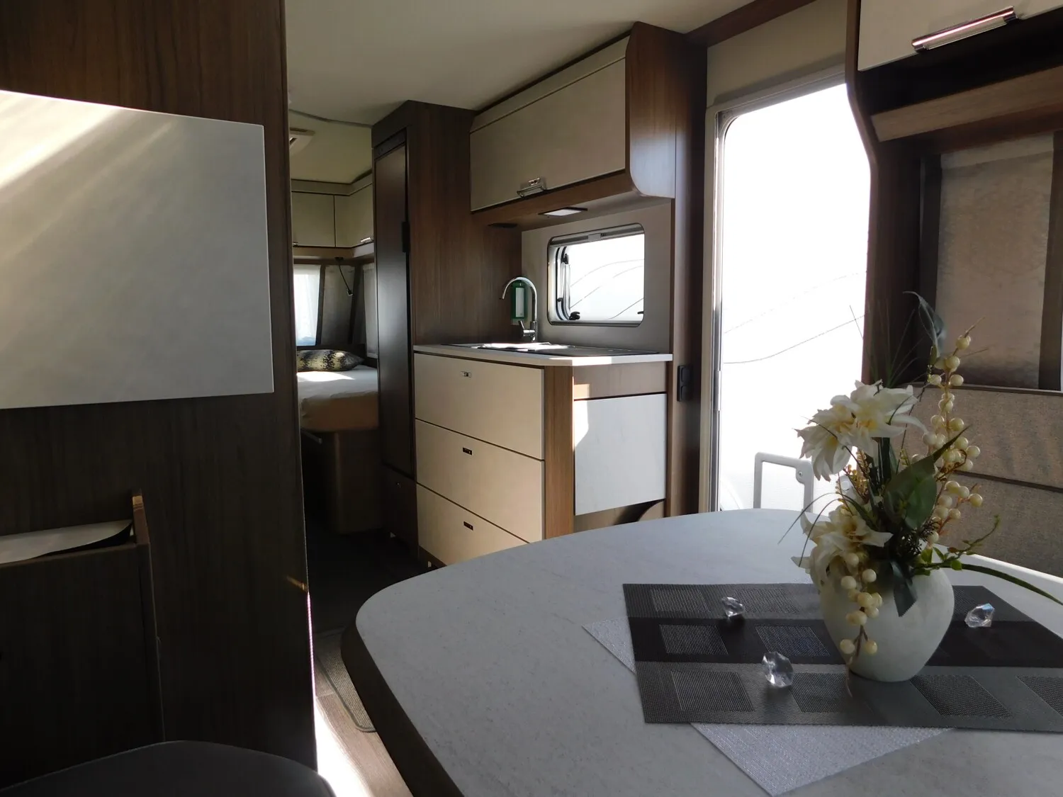 - Premium Interieur-Paket I (Deko-Paket Schlafen "CAZADORA": 4 Kissen und 2 Decken im Schlafbereich, TABBERT Komfort Schlafsystem mit flexiblem Tellerrost und WaterGEL-Matratze, Insektenschutztür, Füllstandsanzeige für Frischwassertank)