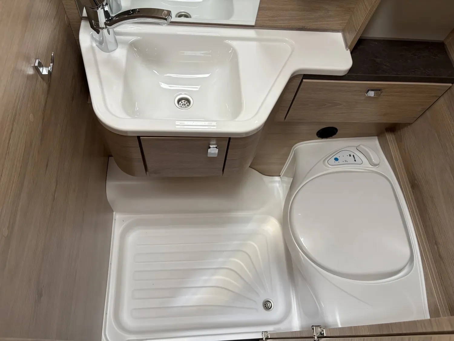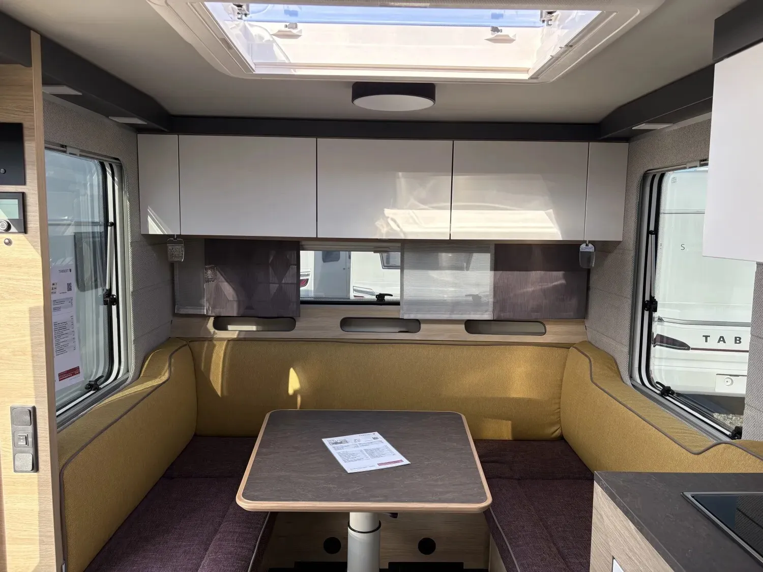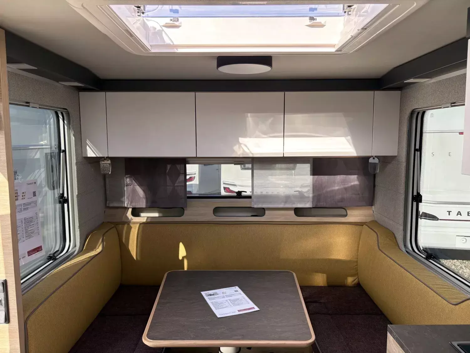 - Premium Interieur-Paket (TABBERT Komfort Schlafsystem mit flexiblem Tellerrost und WaterGEL-Matratze, Insektenschutztür, Deko-Paket Schlafen "PANTIGA": 4 Kissen und 2 Decken im Schlafbereich, Füllstandsanzeige für Frischwassertank)