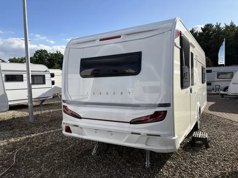 - Exterieur Design-Paket (Deichselabdeckung, Aufbautür: TABBERT PREMIUM, Markisenleiste linke und rechte Fahrzeugseite, inkl. LED-Beleuchtung auf Türseite)