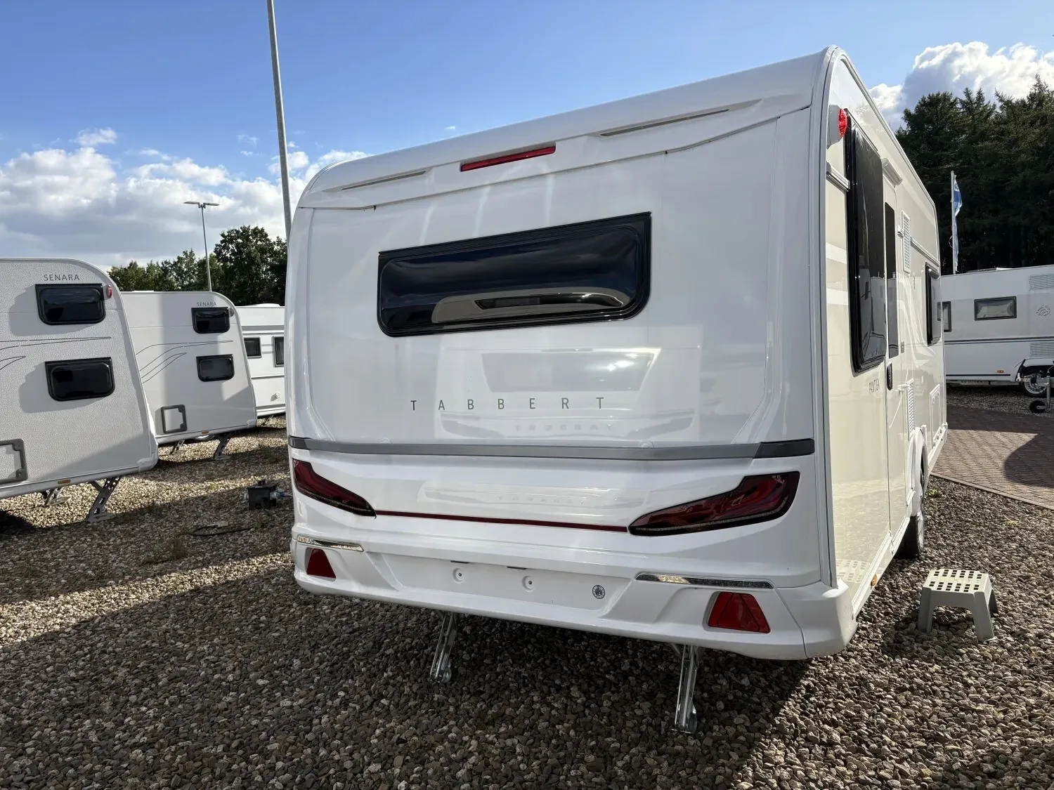 - Exterieur Design-Paket (Deichselabdeckung, Aufbautür: TABBERT PREMIUM, Markisenleiste linke und rechte Fahrzeugseite, inkl. LED-Beleuchtung auf Türseite)