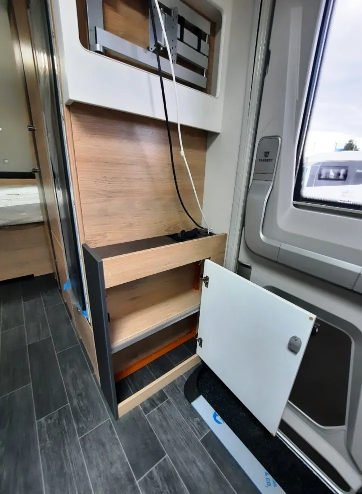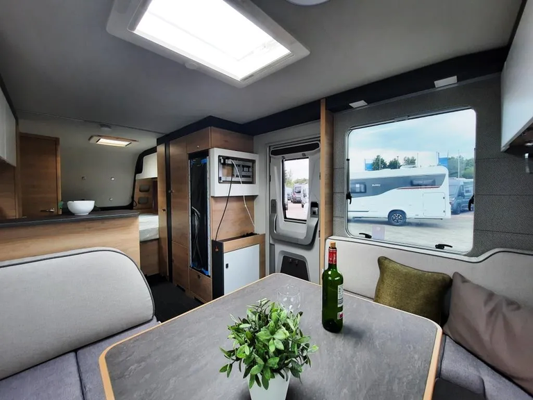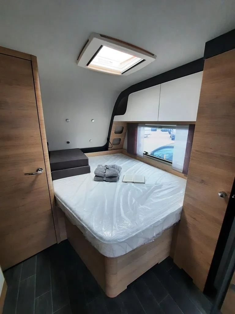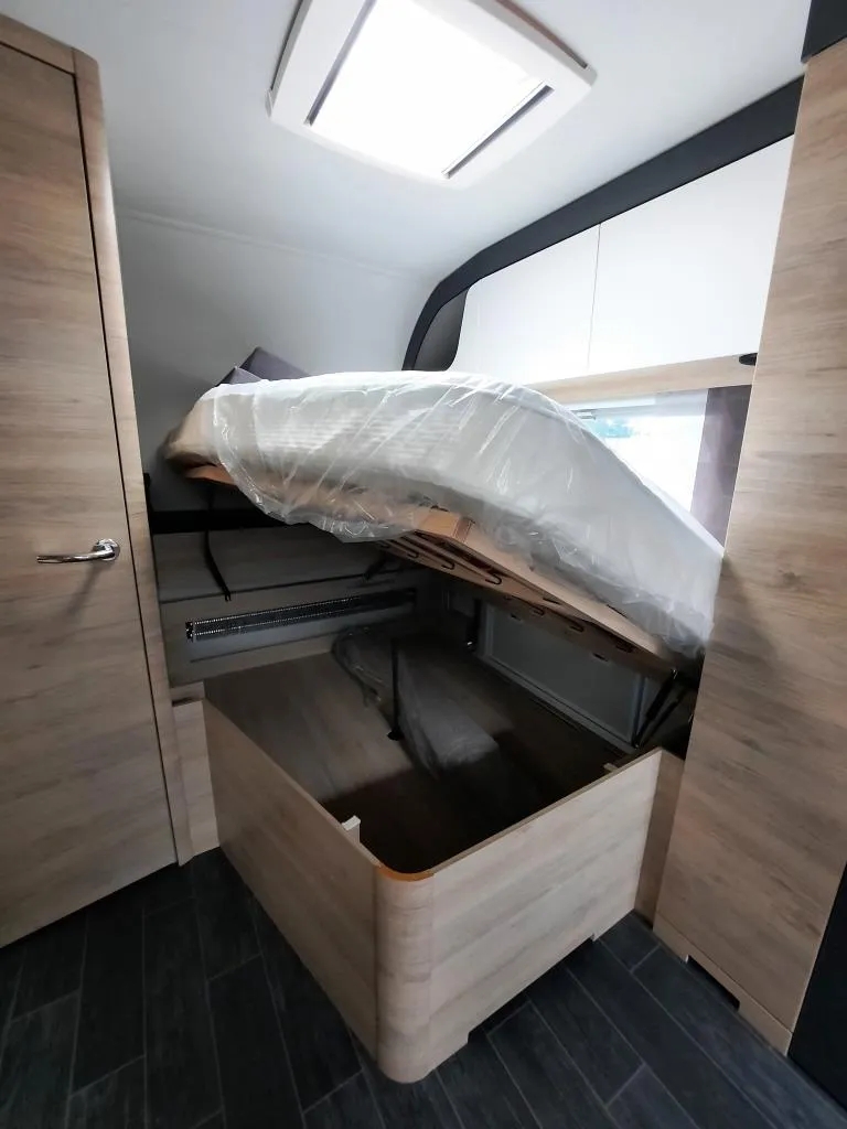 - Premium Interieur-Paket (Insektenschutztür, Füllstandsanzeige für Frischwassertank, TABBERT Komfort Schlafsystem mit flexiblemTellerrost und WaterGEL-Matratze, Deko-Paket Schlafen "PANTIGA": 4 Kissen und 2 Decken im Schlafbereich)