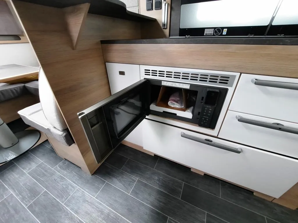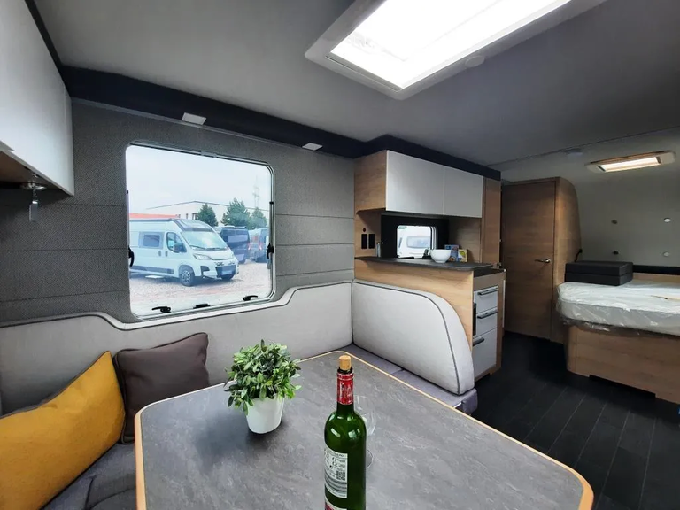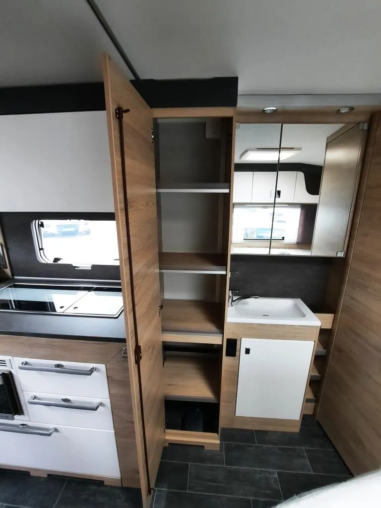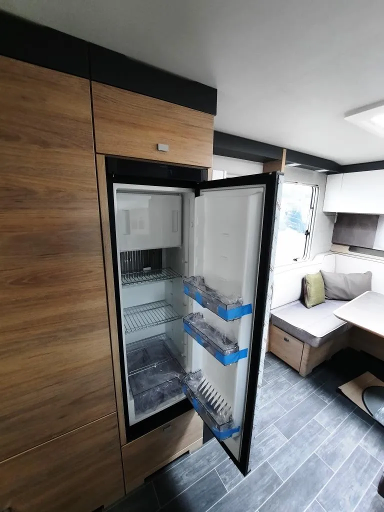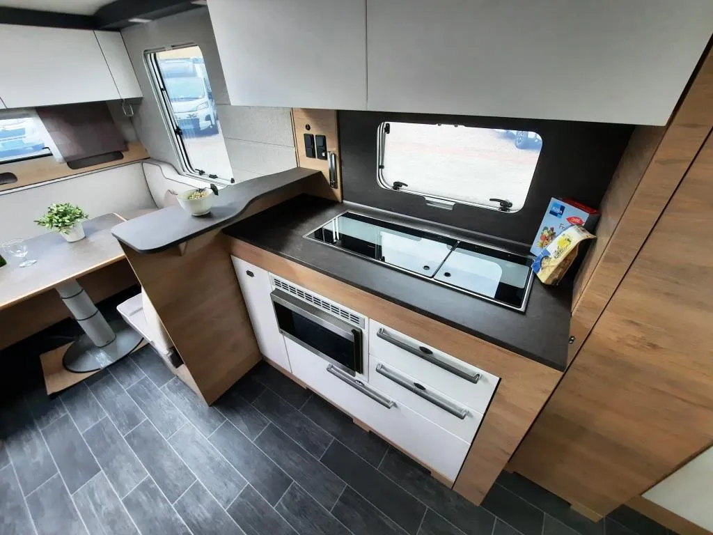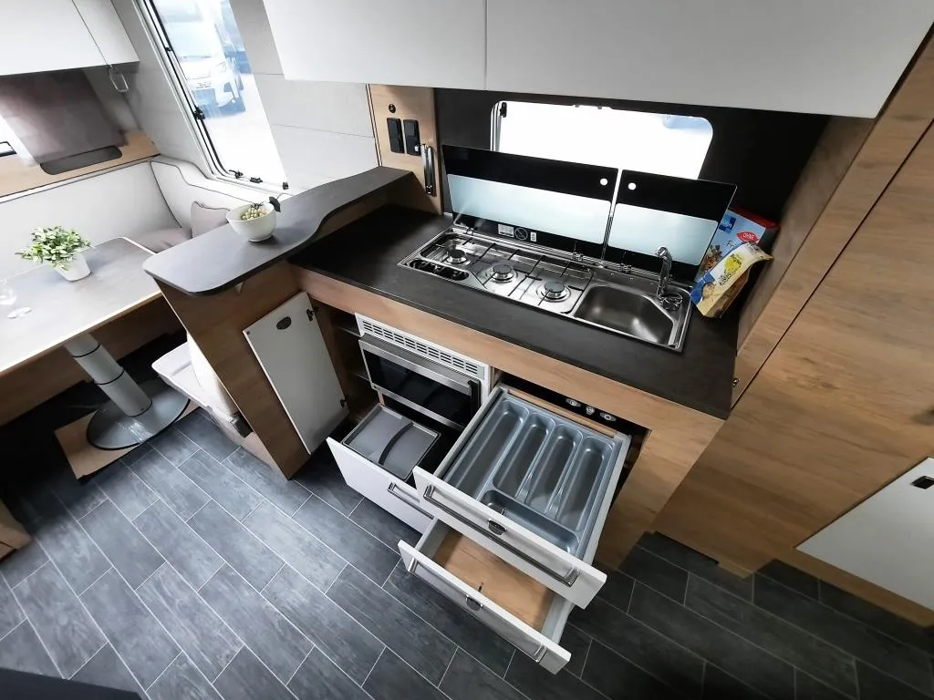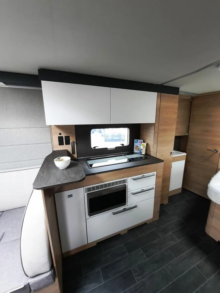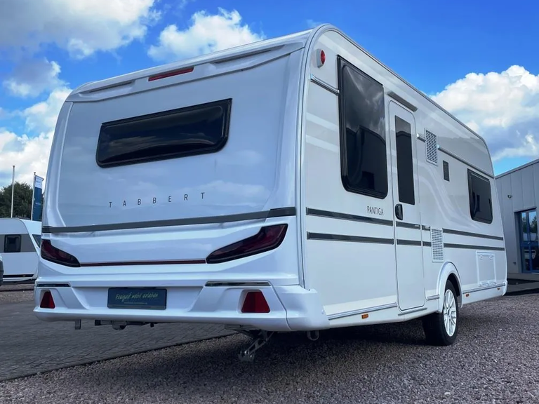 Hydraulische Radstoßdämpfer, Stabilisator-Sicherheits-Kupplung, Standfixierung mit Kurbelstützen, Komfortable Rangiergriffe, Aufbautür TABBERT TREND, Integrierter Flaschenkasten mit Aluminiumboden, Kombi-Rollos an den Fenstern, inkl. Verdunklung und Insektenschutz, Komfortrollos bei Salon- und Küchenfenster, Ausstellfenster Privacy Black getönt und wärmedämmend, mit Sicherheitsverschluss verriegelbar, GFK-Dach mit reduzierter Hagelempfindlichkeit in Weiß, Vinyl-Bodenbelag, Stoffverkleidung bei Salonfenstern, Festbetten mit 5-Zonen-Komfortschaummatratze, Kühlschrank 133 Liter, Edelstahlspüle mit Glasabdeckung, Frischwassertank 45 Liter, Festeinbau – von außen und innen befüllbar und Reinigungsöffnung Dichtigkeitsgarantie 10 Jahre u.v.m.*