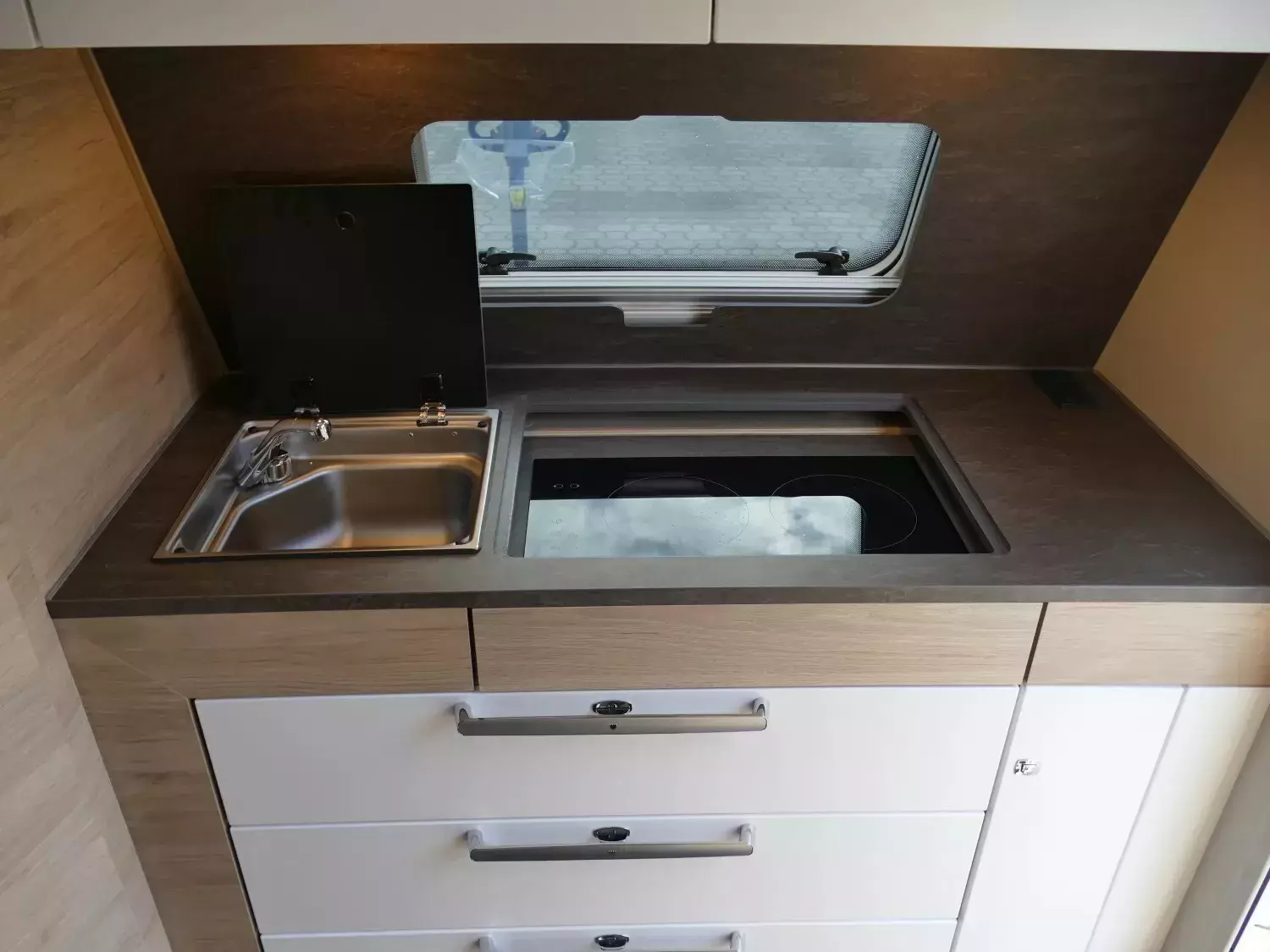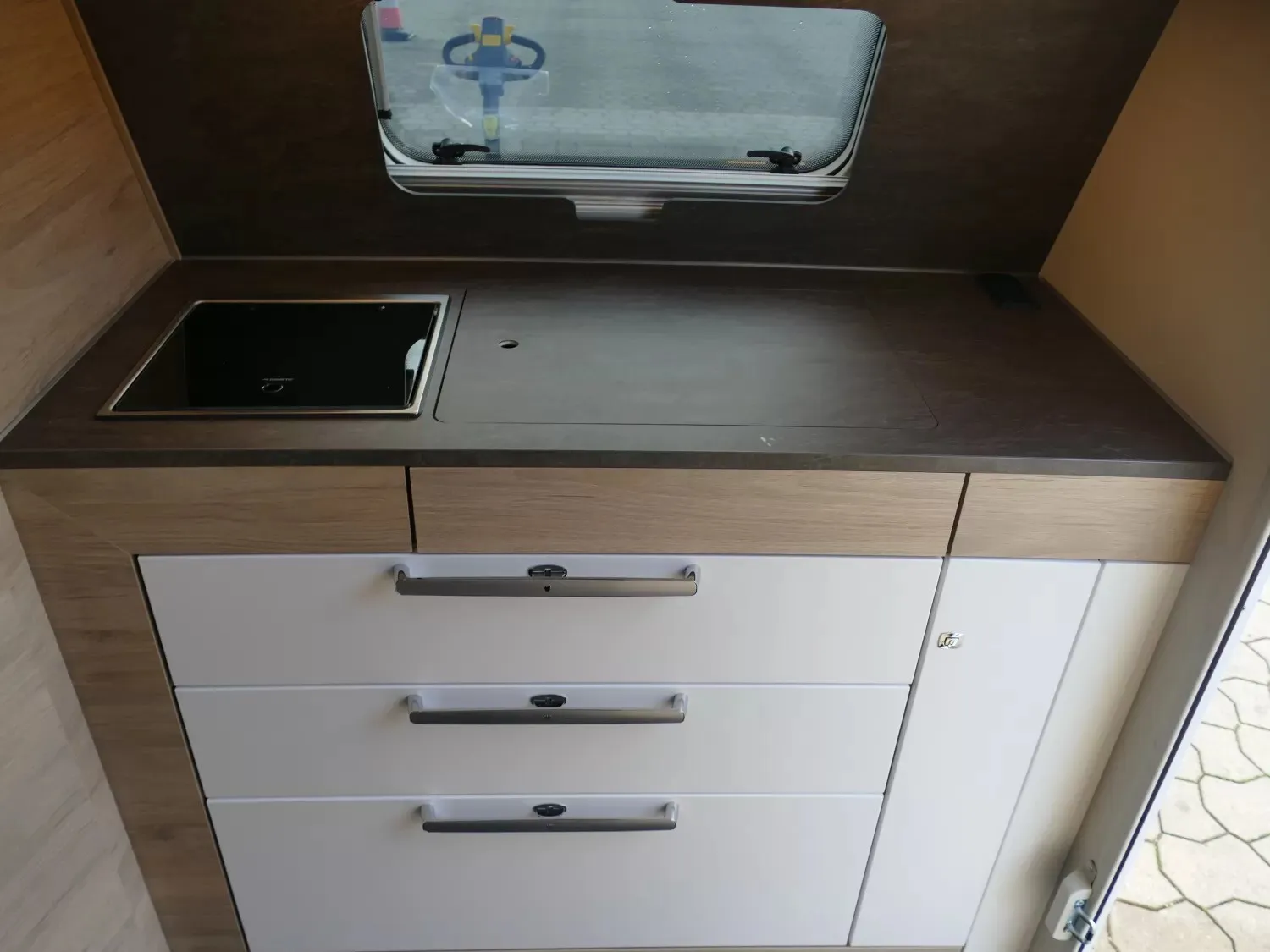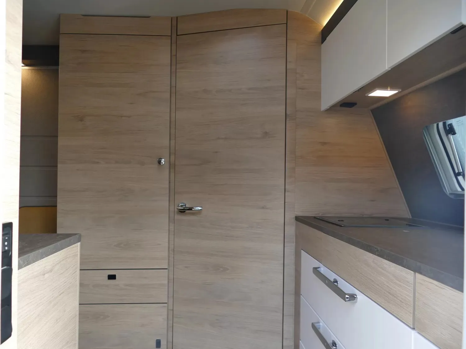 - Exterieur Design-Paket (Deichselabdeckung, Aufbautüre PREMIUM statt Trend, Markisenleisten linke und rechte Fahrzeugseite inkl. LED-Beleuchtung auf Türseite (PANTIGA))