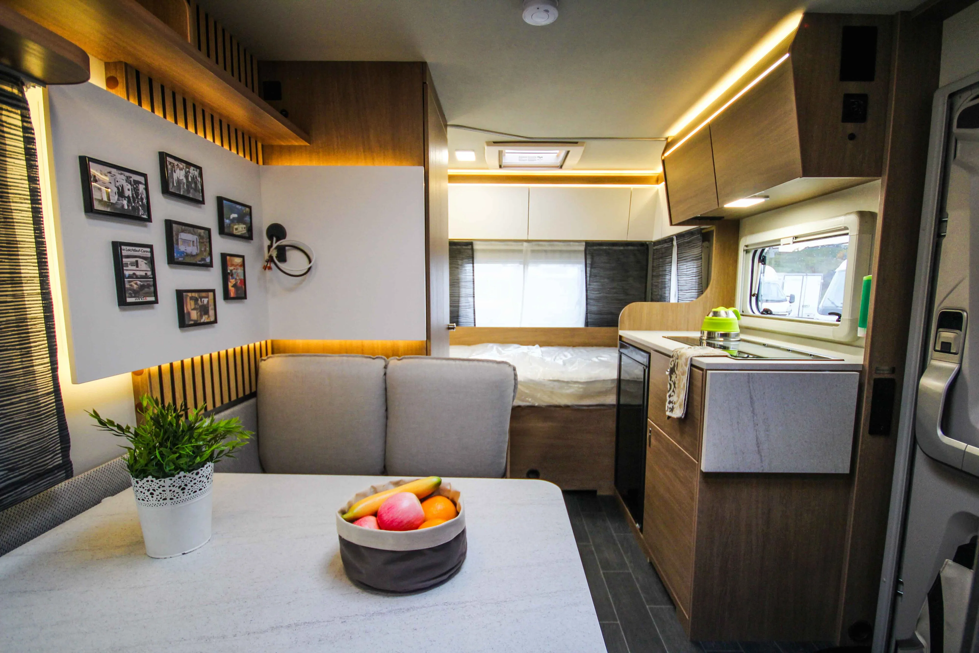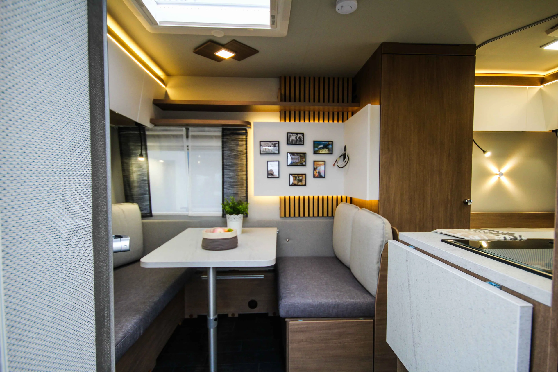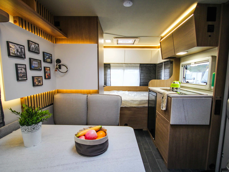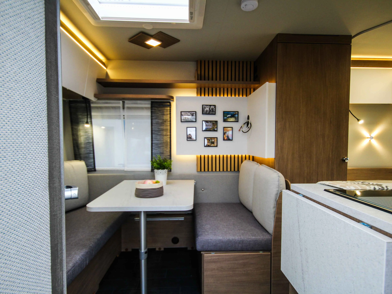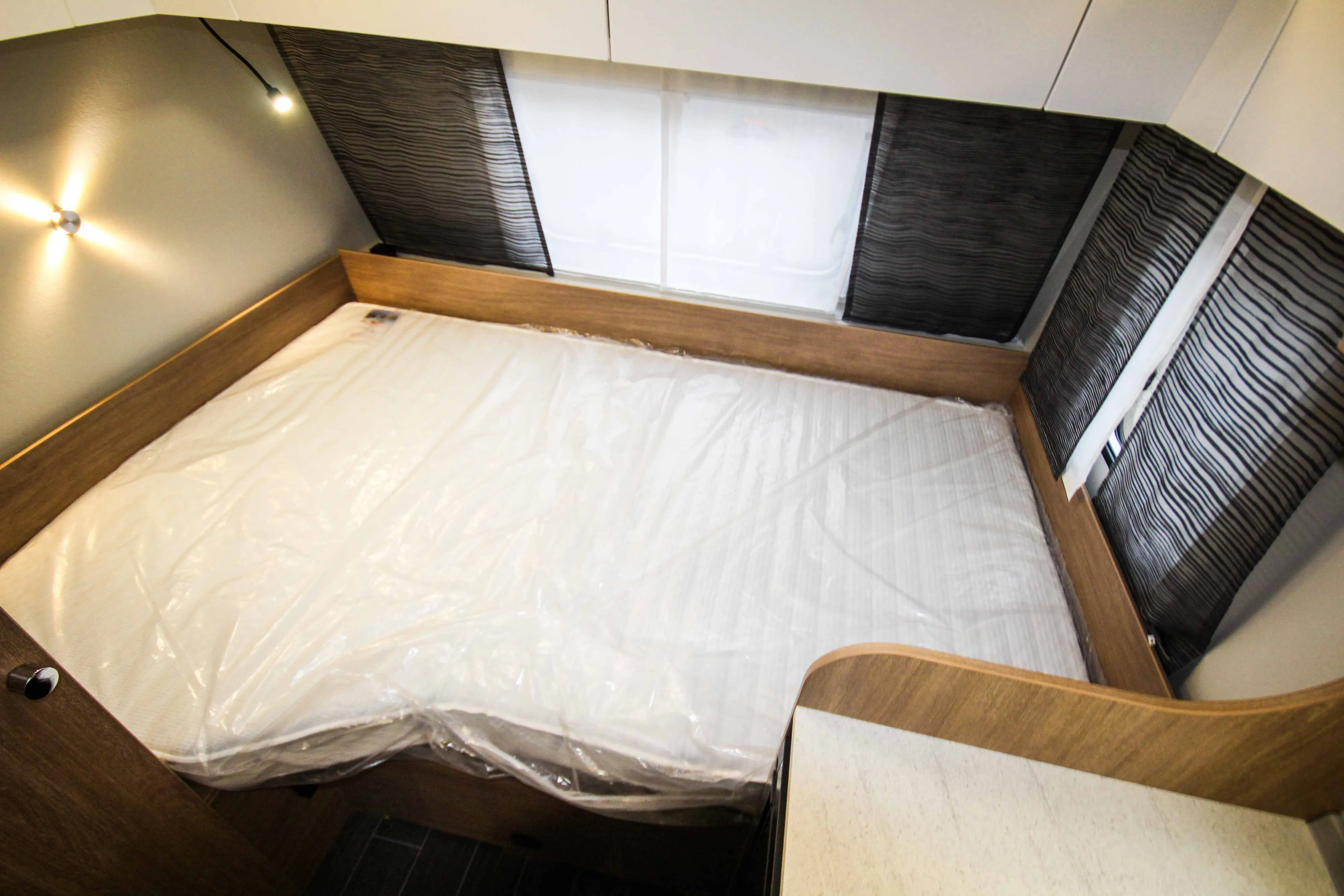 - Premium-Interieur-Paket (Insektenschutztür, Deko-Paket Schlafen "Senara" mit 4 Kissen und 2 Decken im Schlafbereich, TABBERT Komfort Schlafsystem mit flexiblem Tellerrost und WaterGEL-Matratze, Füllstandsanzeige Frischwassertank)