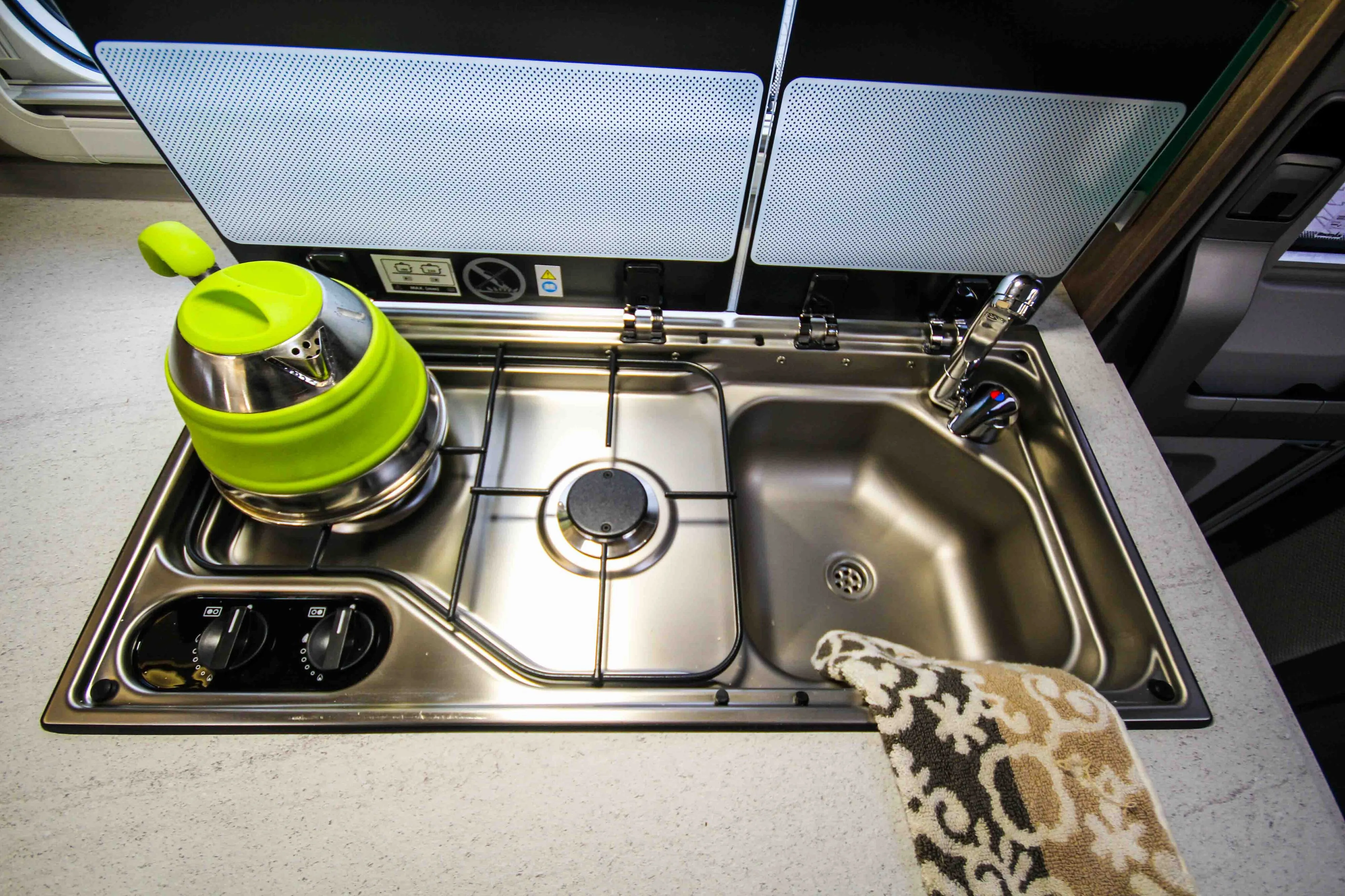 - Aufklappbare Arbeitsplattenverlängerung an der Küche