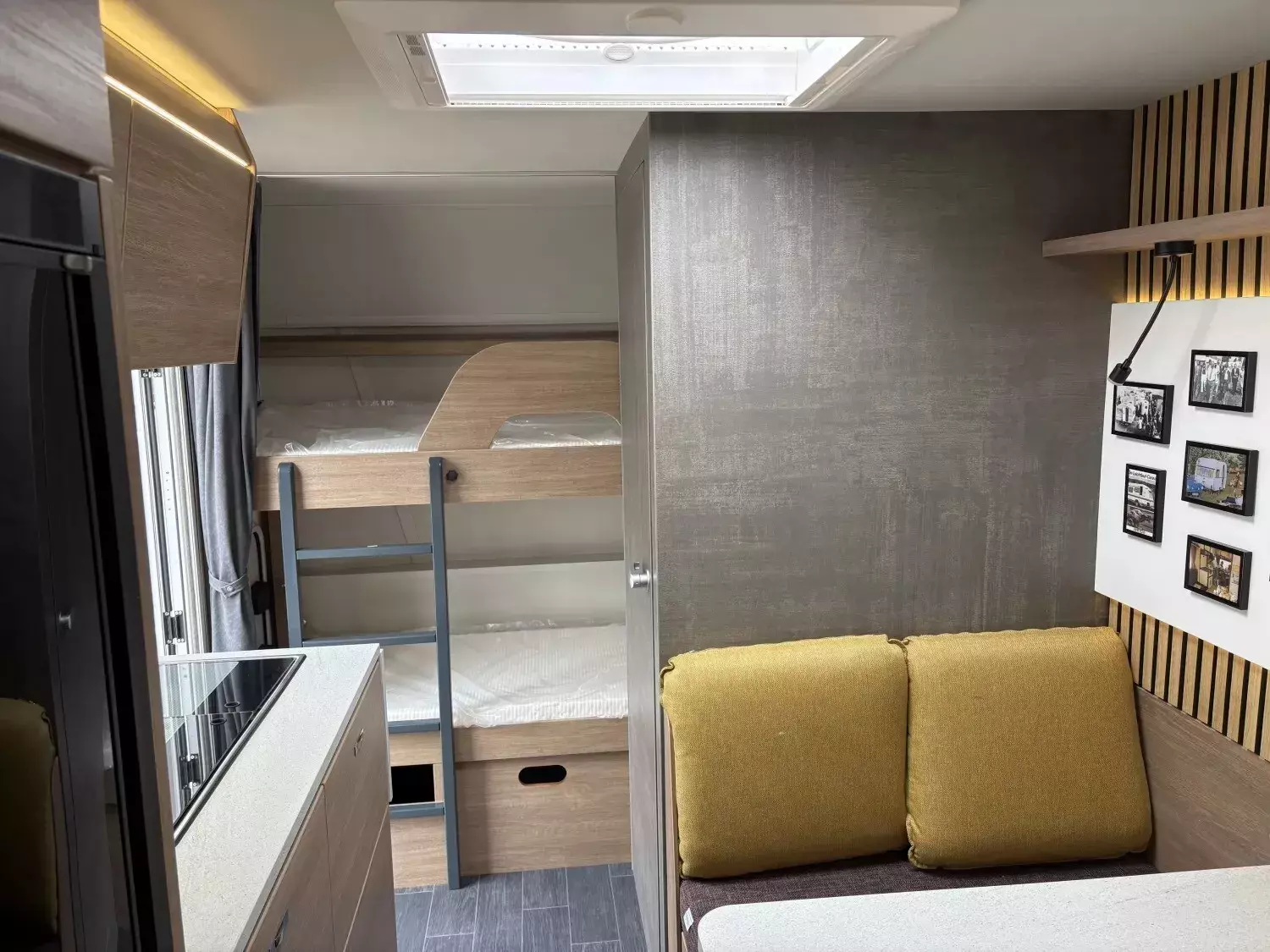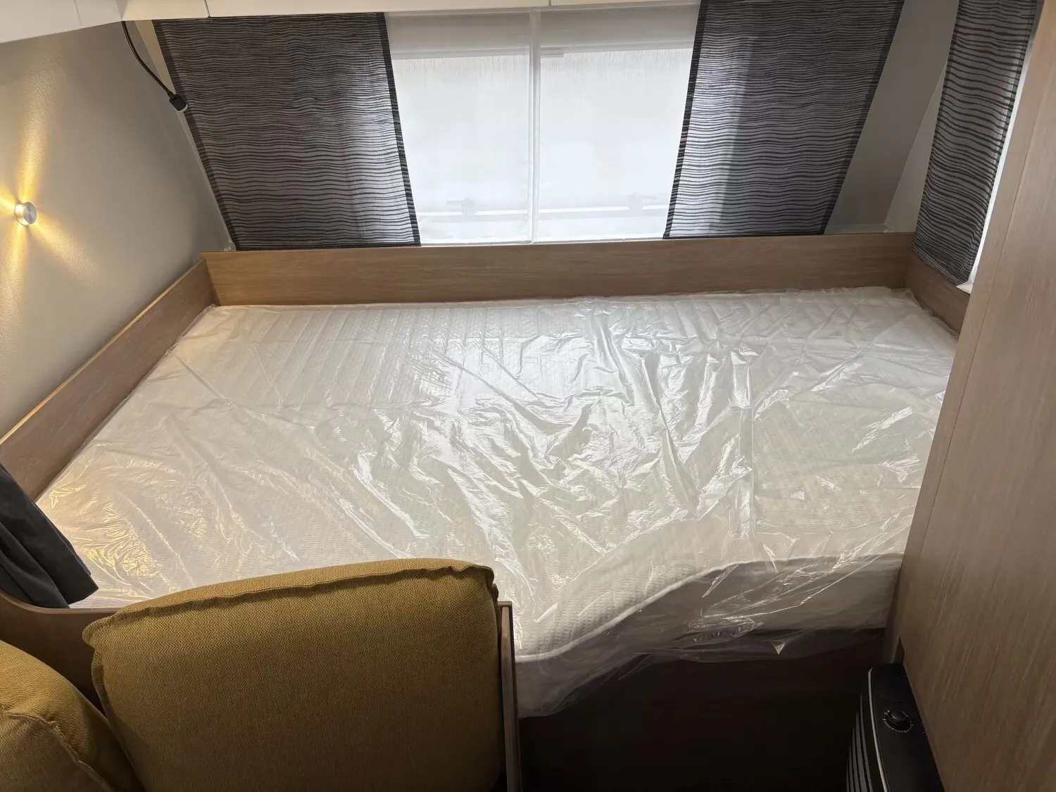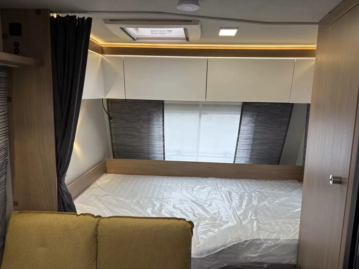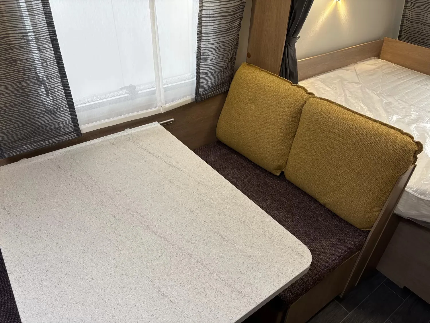 - Premium Interieur-Paket (Deko-Paket Schlafen "PANTIGA": 4 Kissen und 2 Decken im Schlafbereich, TABBERT Komfort Schlafsystem mit flexiblem Tellerrost und WaterGEL-Matratze, Insektenschutztür, Füllstandsanzeige für Frischwassertank)