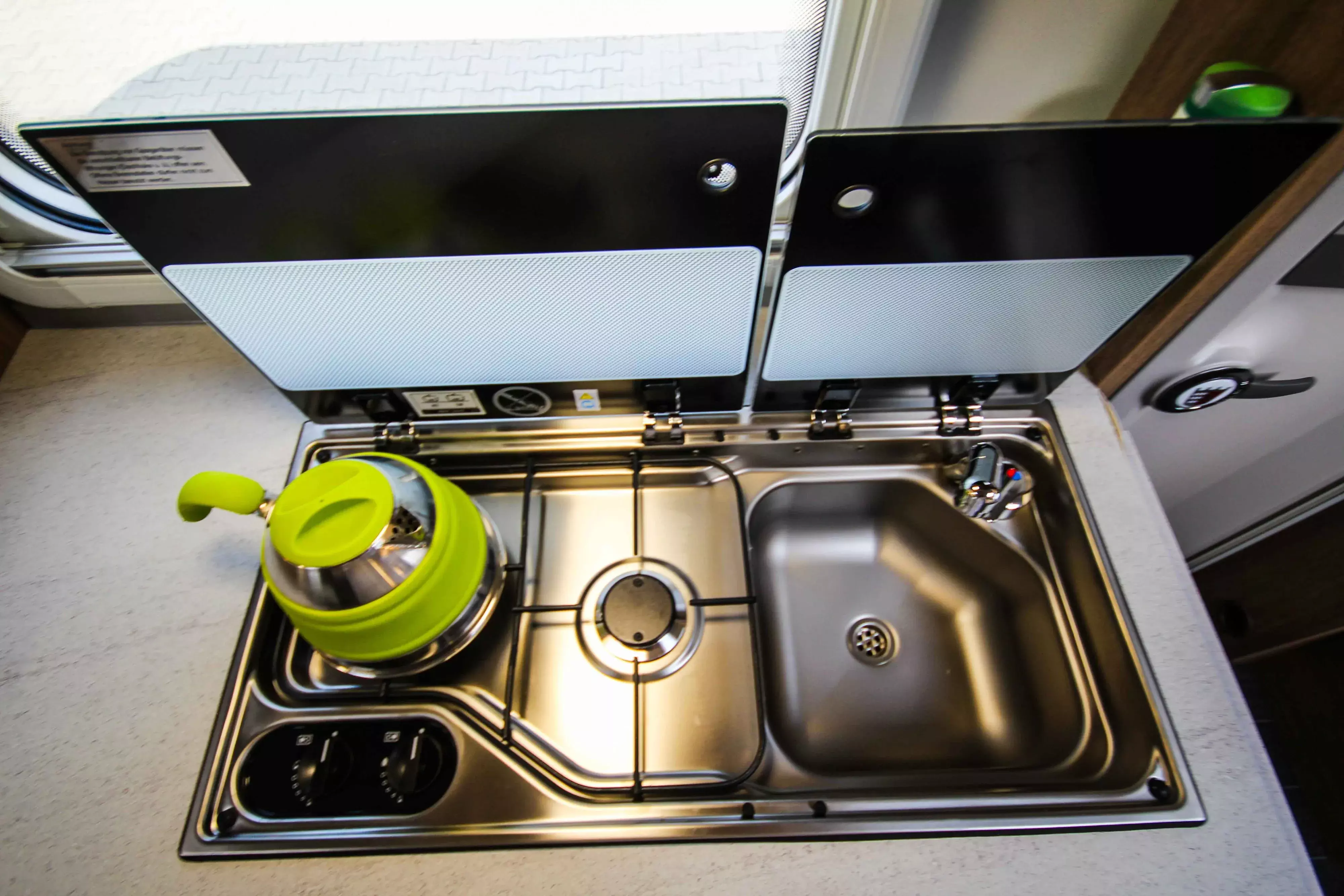 - aufklappbare Arbeitsplattenverlängerung an der Küche