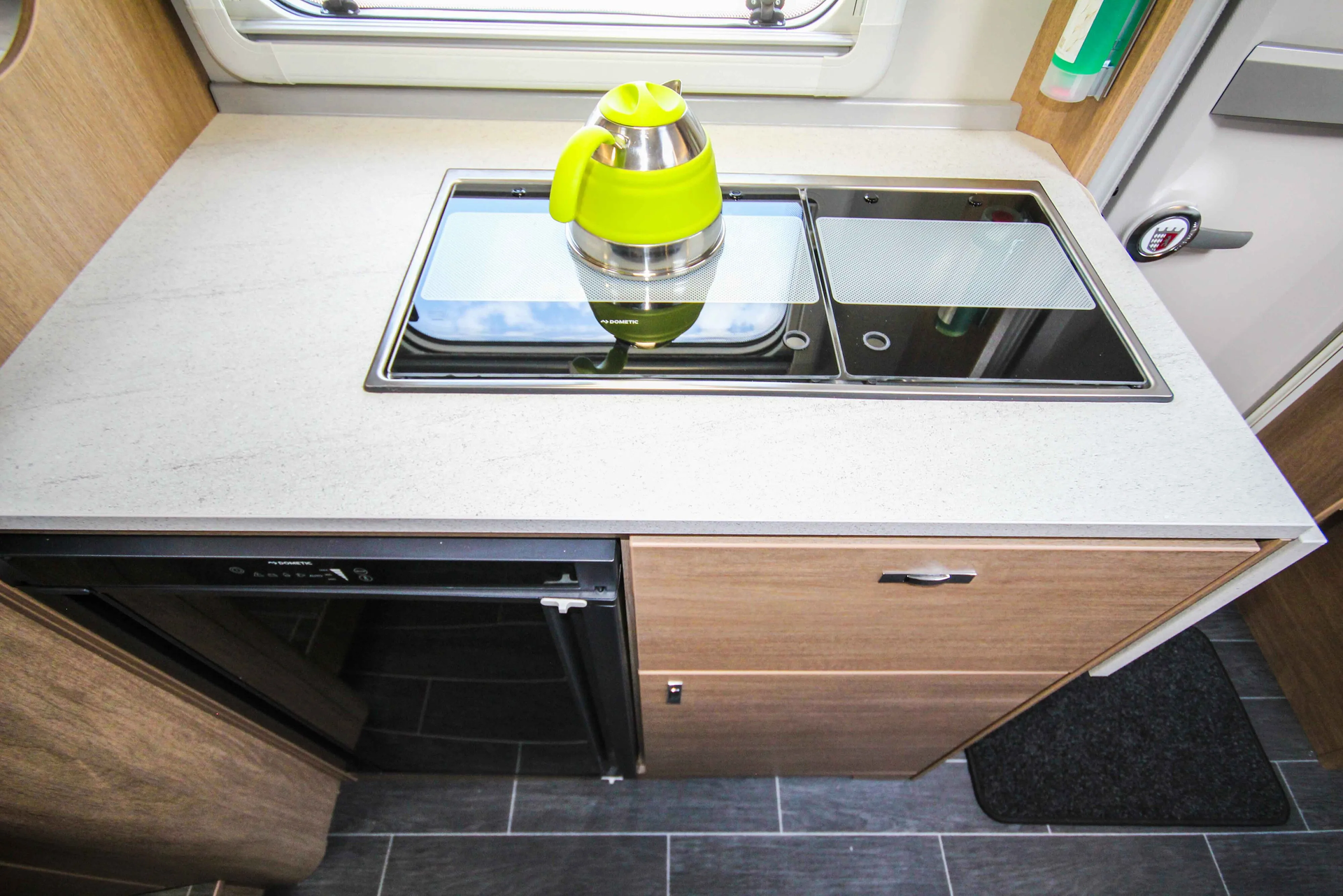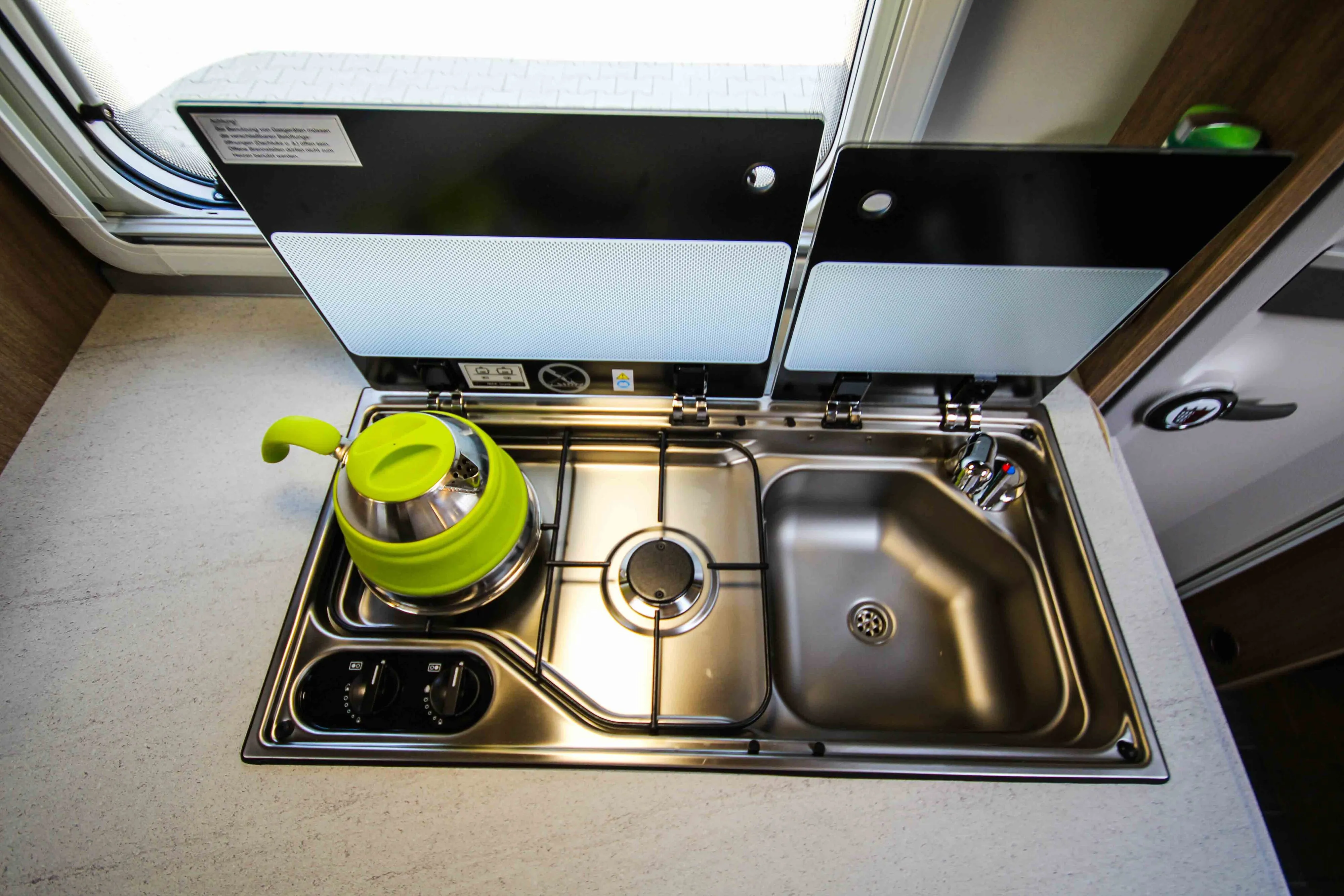 - 12 V Versorgungspaket (AGM-Batterie, geeignet für Solartechnik, Ladegerät 28 A elektronisch, mit Spannungsfilter (für optimale Ladung im Fahrbetrieb), Anzeige für Batterieleistung über Bord-Control inkl. Füllstandanzeige für Frischwassertank)
