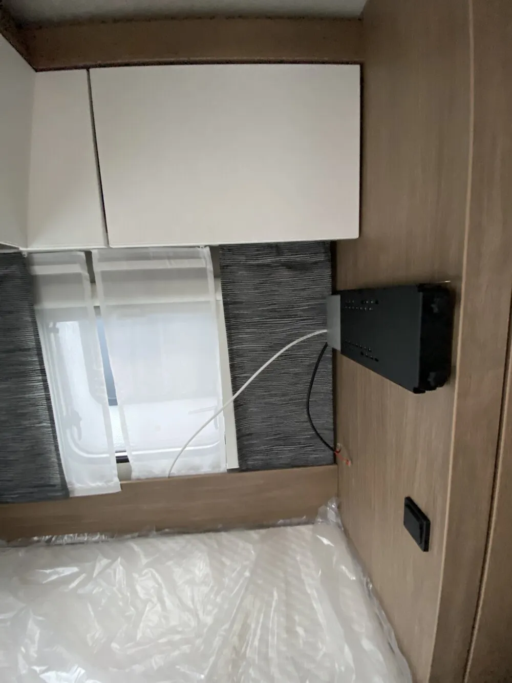 - TV-Halter für Flachbildschirm mit 230 V und TV-Anschluss, im Schlafbereich