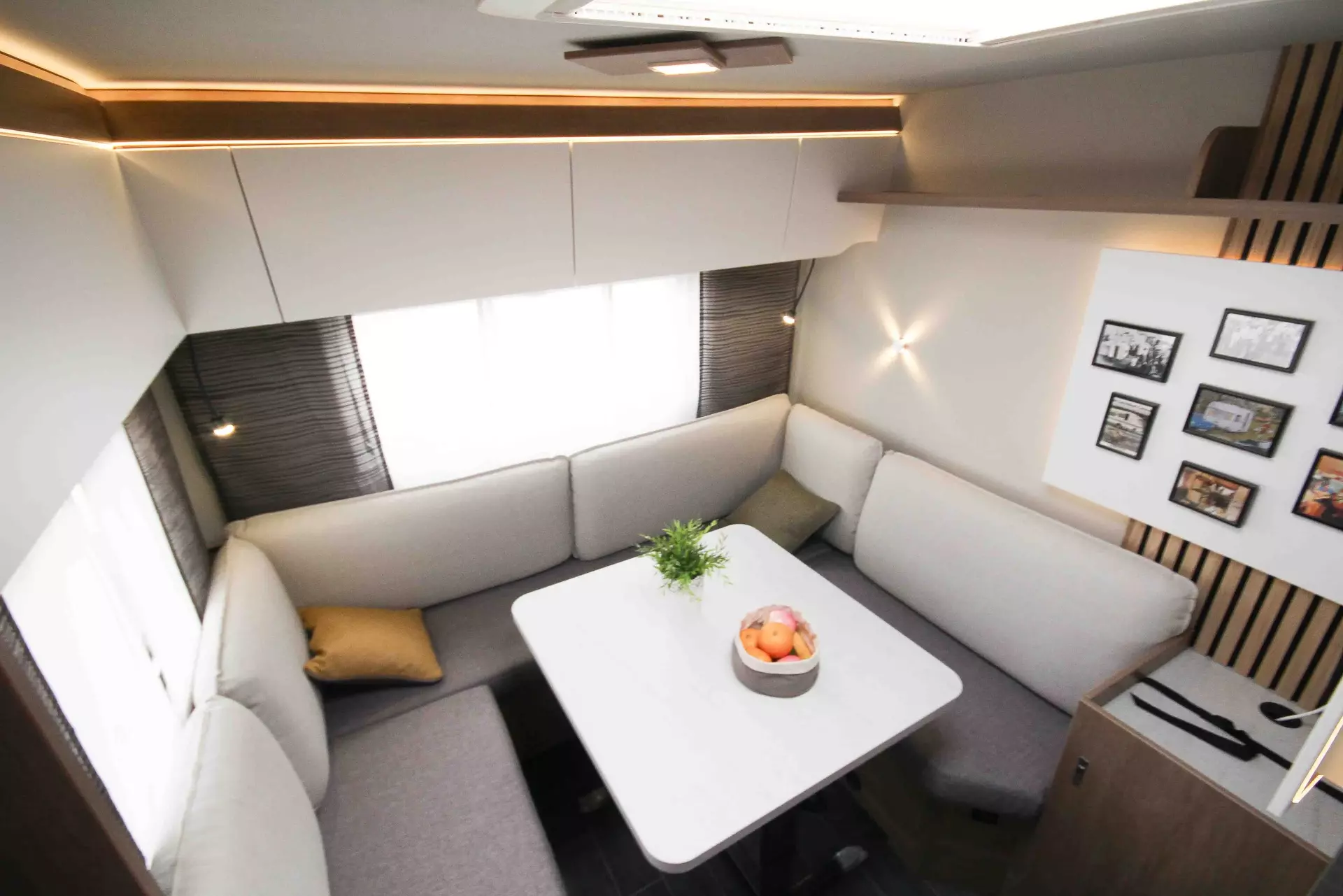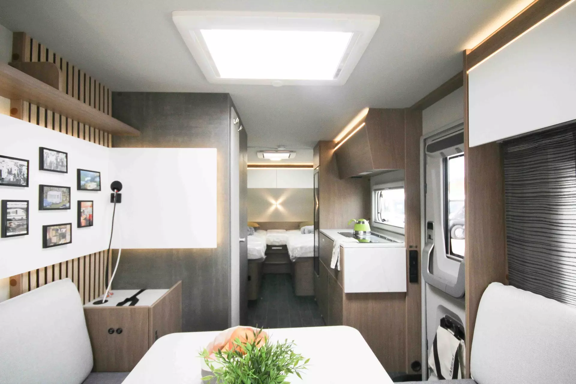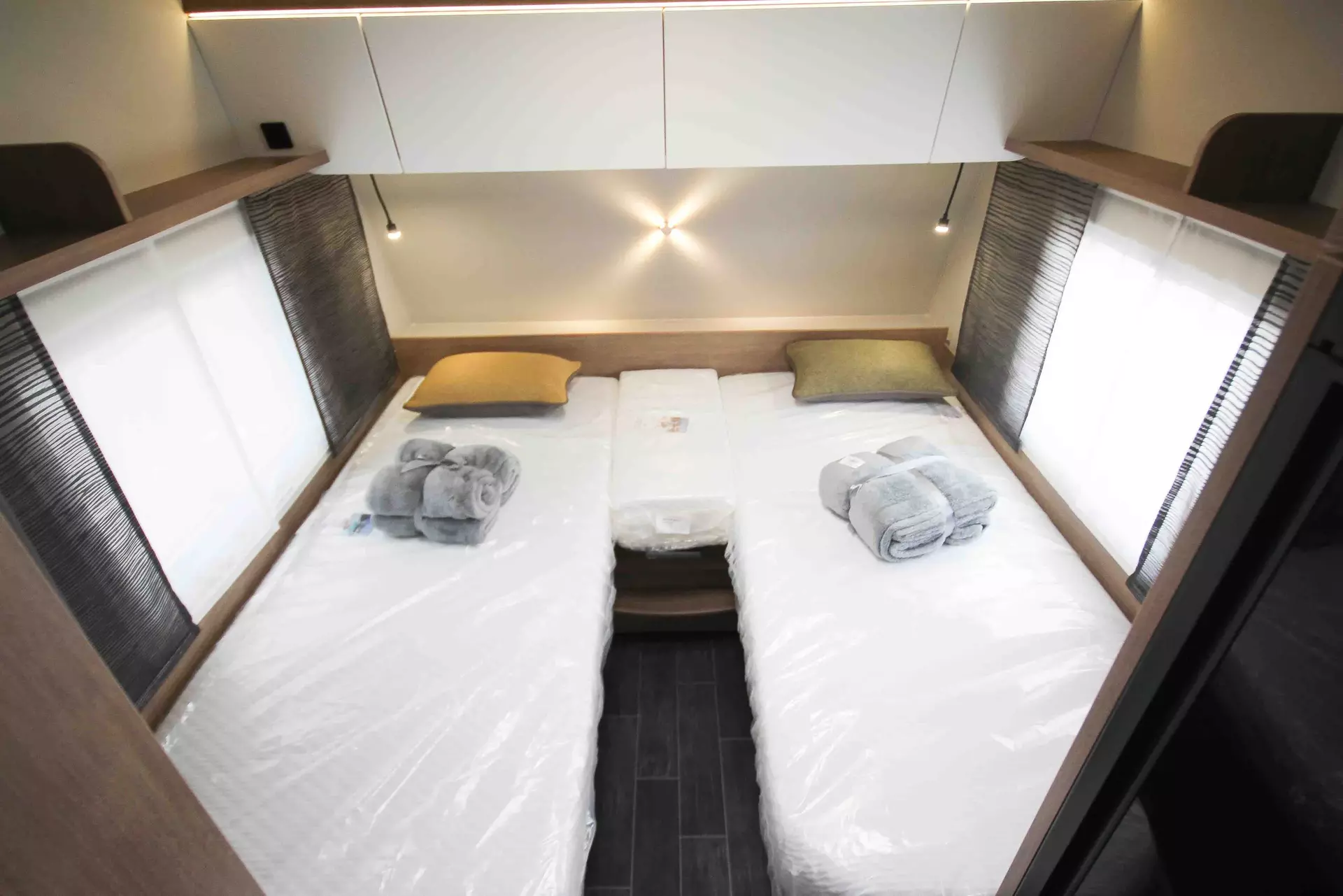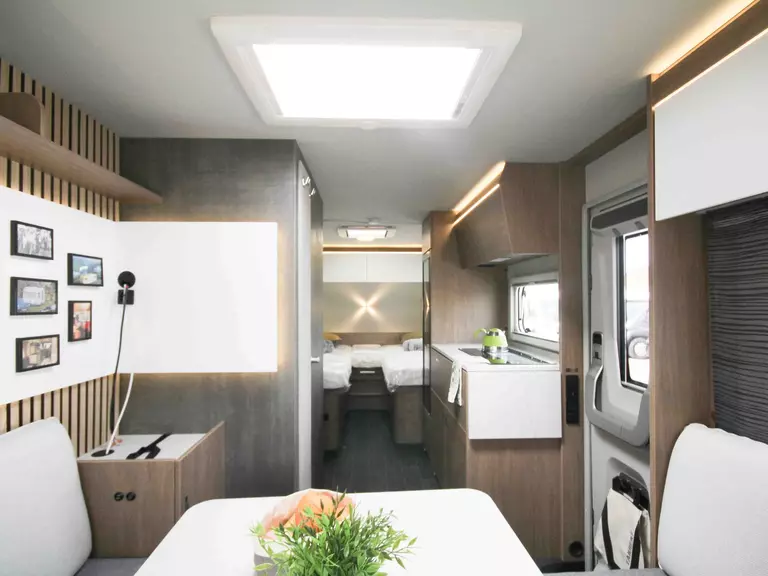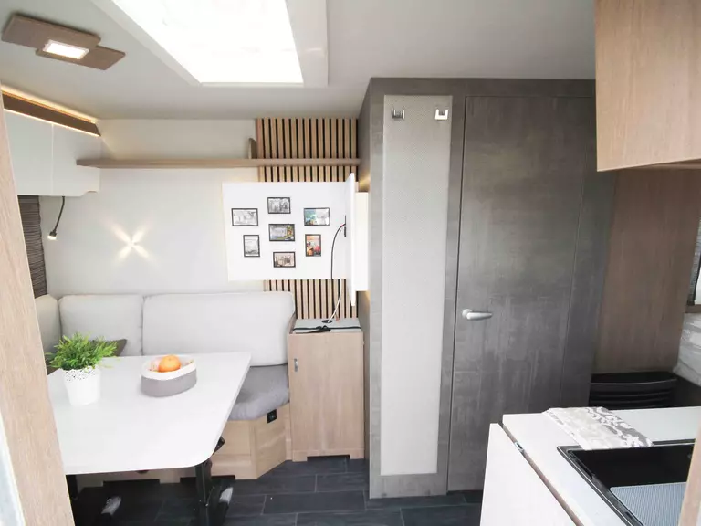 - Premium-Interieur-Paket (Insektenschutztür, Deko-Paket Schlafen "Senara" mit 4 Kissen und 2 Decken im Schlafbereich, TABBERT Komfort Schlafsystem mit flexiblem Tellerrost und WaterGEL-Matratze, Füllstandsanzeige Frischwassertank)