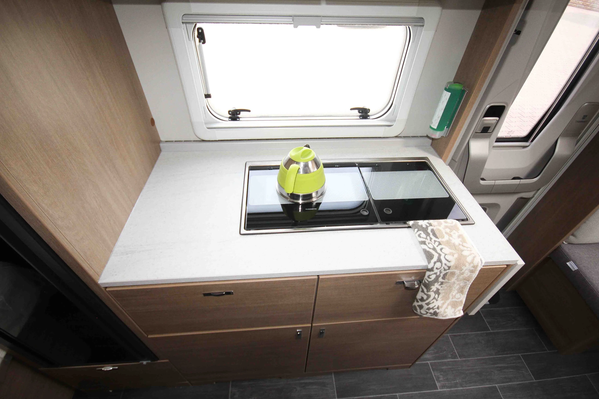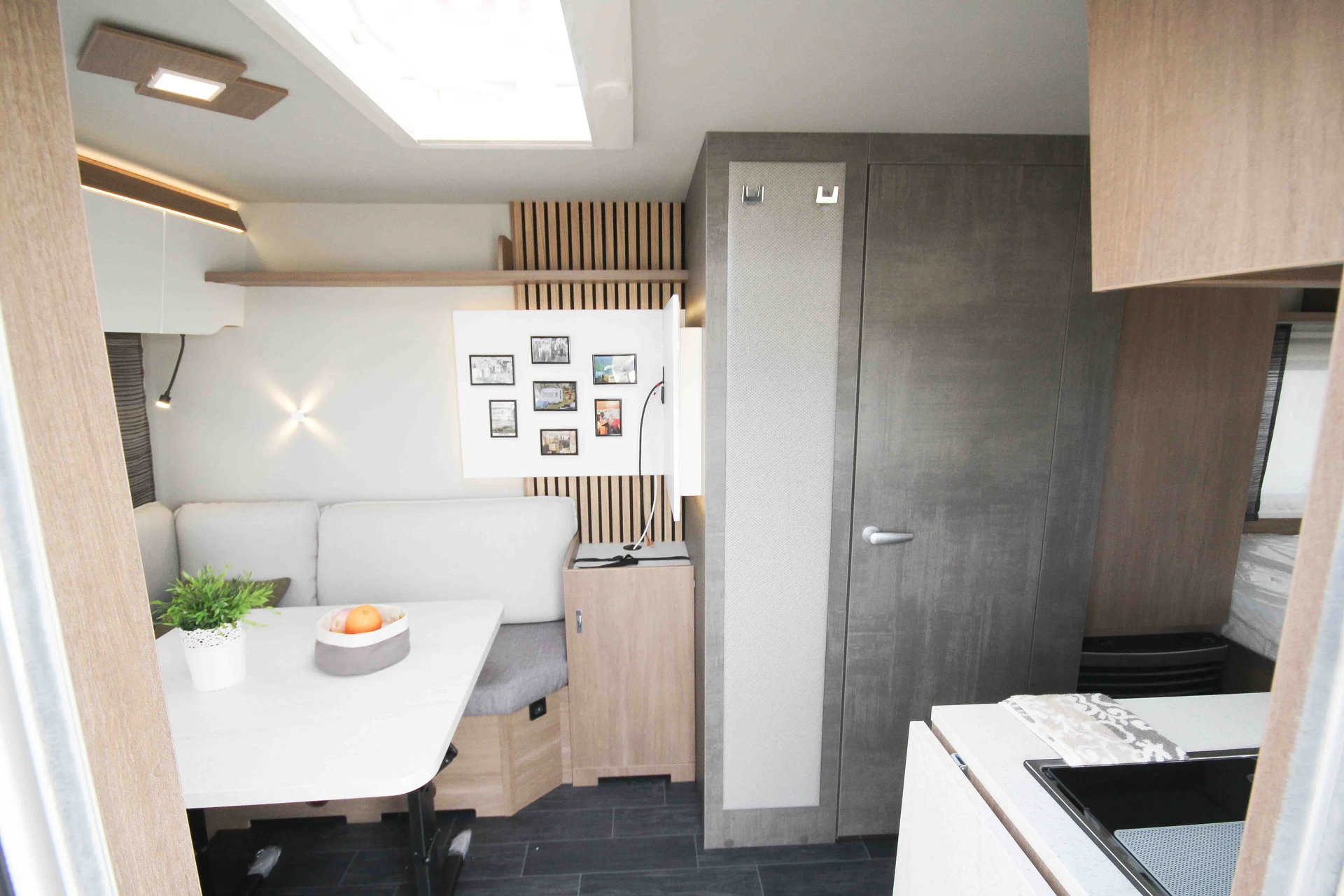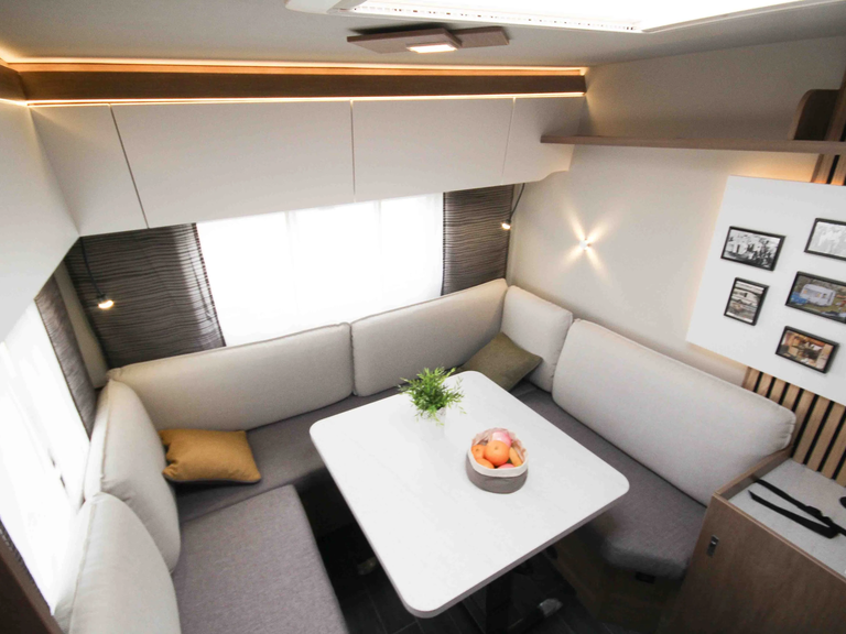 - Premium-Interieur-Paket (Insektenschutztür, Deko-Paket Schlafen "Senara" mit 4 Kissen und 2 Decken im Schlafbereich, TABBERT Komfort Schlafsystem mit flexiblem Tellerrost und WaterGEL-Matratze, Füllstandsanzeige Frischwassertank)