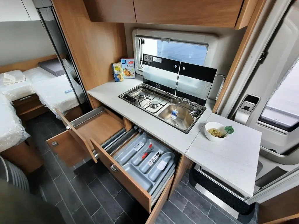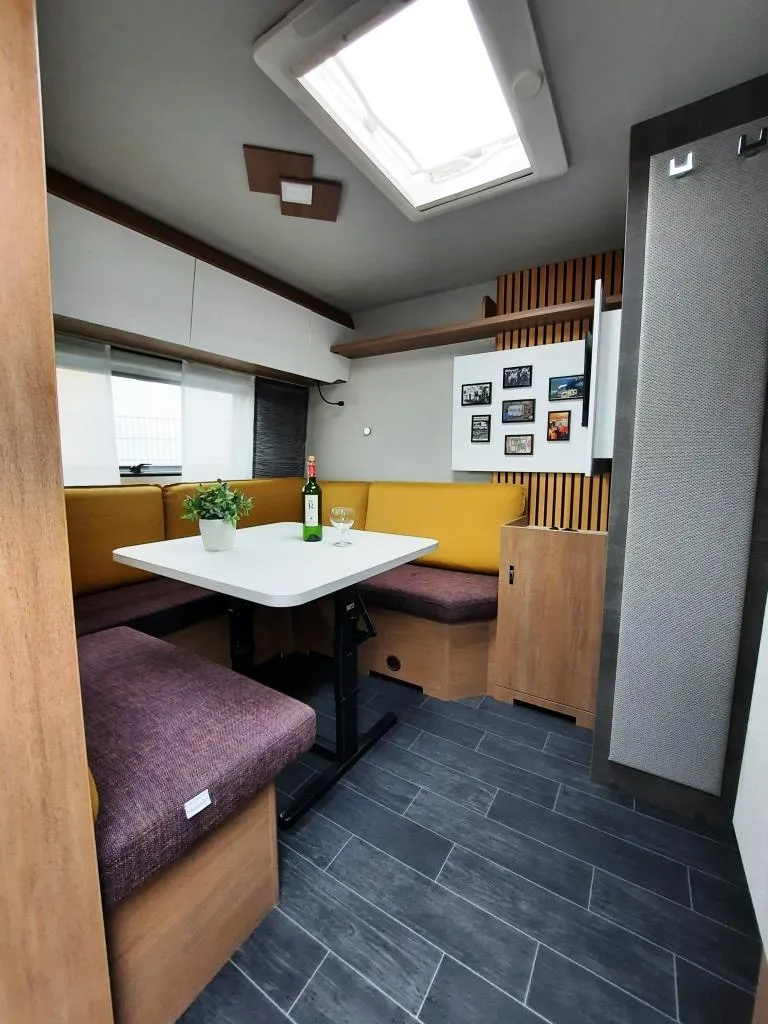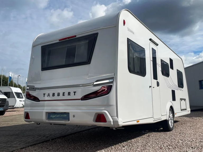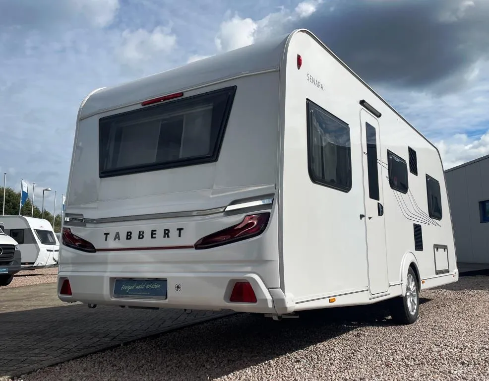 Breitspur-Sicherheitsfahrwerk mit Achsstoßdämpfer, Stabilisator-Sicherheits-Kupplung, AL-KO Premiumstützen, Komfortable Rangiergriffe, Aufbautür TABBERT TREND, Integrierter Flaschenkasten mit Aluminiumboden, Kombi-Rollos an den Fenstern, inkl. Verdunklung und Insektenschutz, Hammerschlagblech weiß, Ausstellfenster getönt und wärmedämmend, mit Sicherheitsverschluss verriegelbar, GFK-Dach mit reduzierter Hagelempfindlichkeit in Weiß, Vinyl-Bodenbelag, Staukästen und umlaufende Ablage im Sitzgruppenbereich, Festbetten mit 5-Zonen-Komfortschaummatratze, Kühlschrank 133 Liter, Edelstahlspüle, 3-Flammen-Gaskocher mit Elektrozündung und Glasabdeckung, Frischwassertank 45 Liter, Festeinbau – von außen und innen befüllbar und Reinigungsöffnung Dichtigkeitsgarantie 10 Jahre u.v.m.*