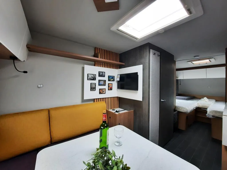 - Premium Interieur-Paket II Insektenschutztür, Füllstandsanzeige für Frischwassertank, 0 TABBERT Komfort Schlafsystem mit flexiblem Tellerrost und WaterGEL-Matratze, 1 Deko-Paket Schlafen "PANTIGA": 4 Kissen & 2 Decken im Schlafbereich*