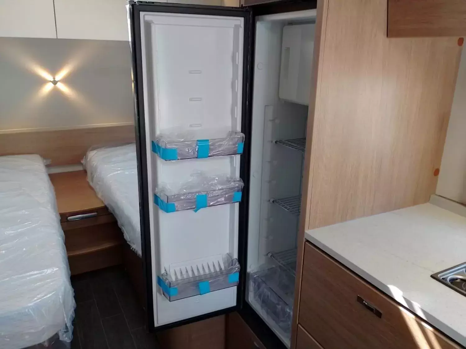 - Luxus-Bettenbau mit zweitem Ausgleichspolster (bei Salonsitzgruppe oder Dinette)