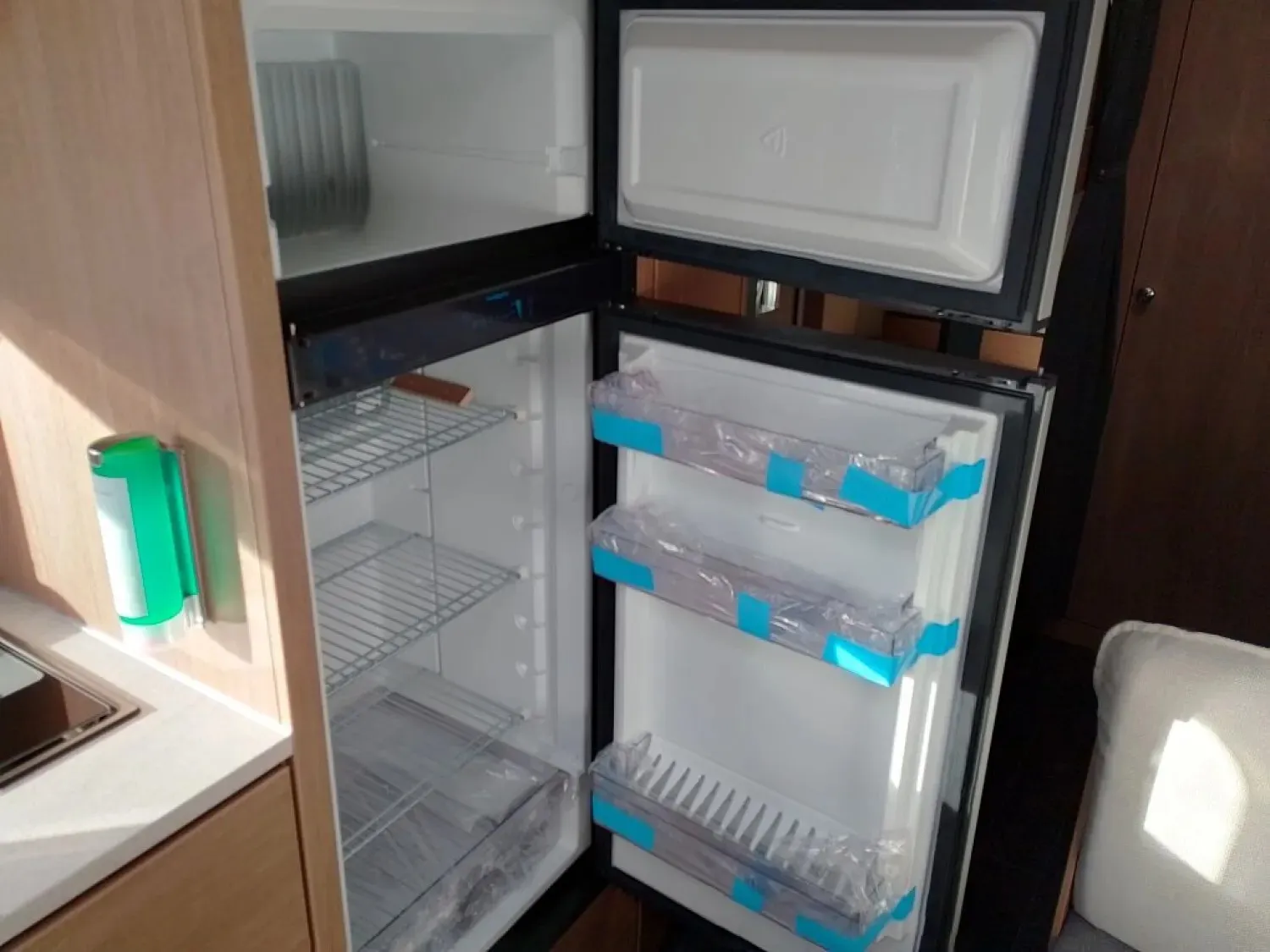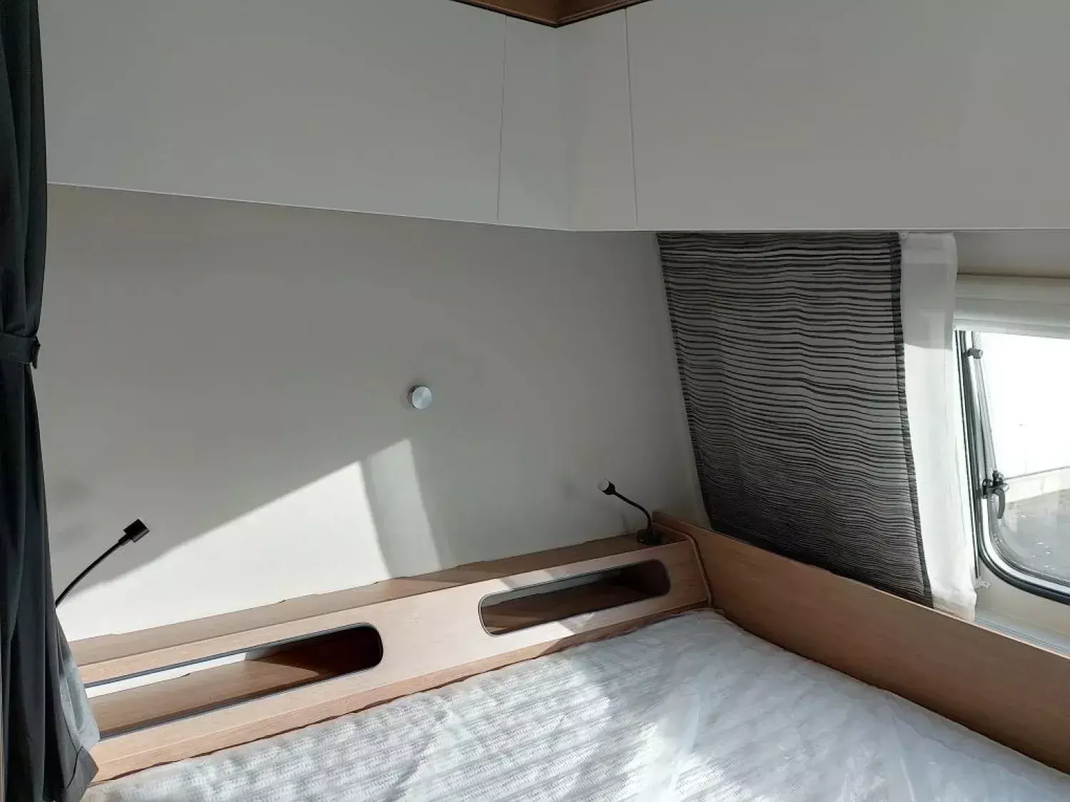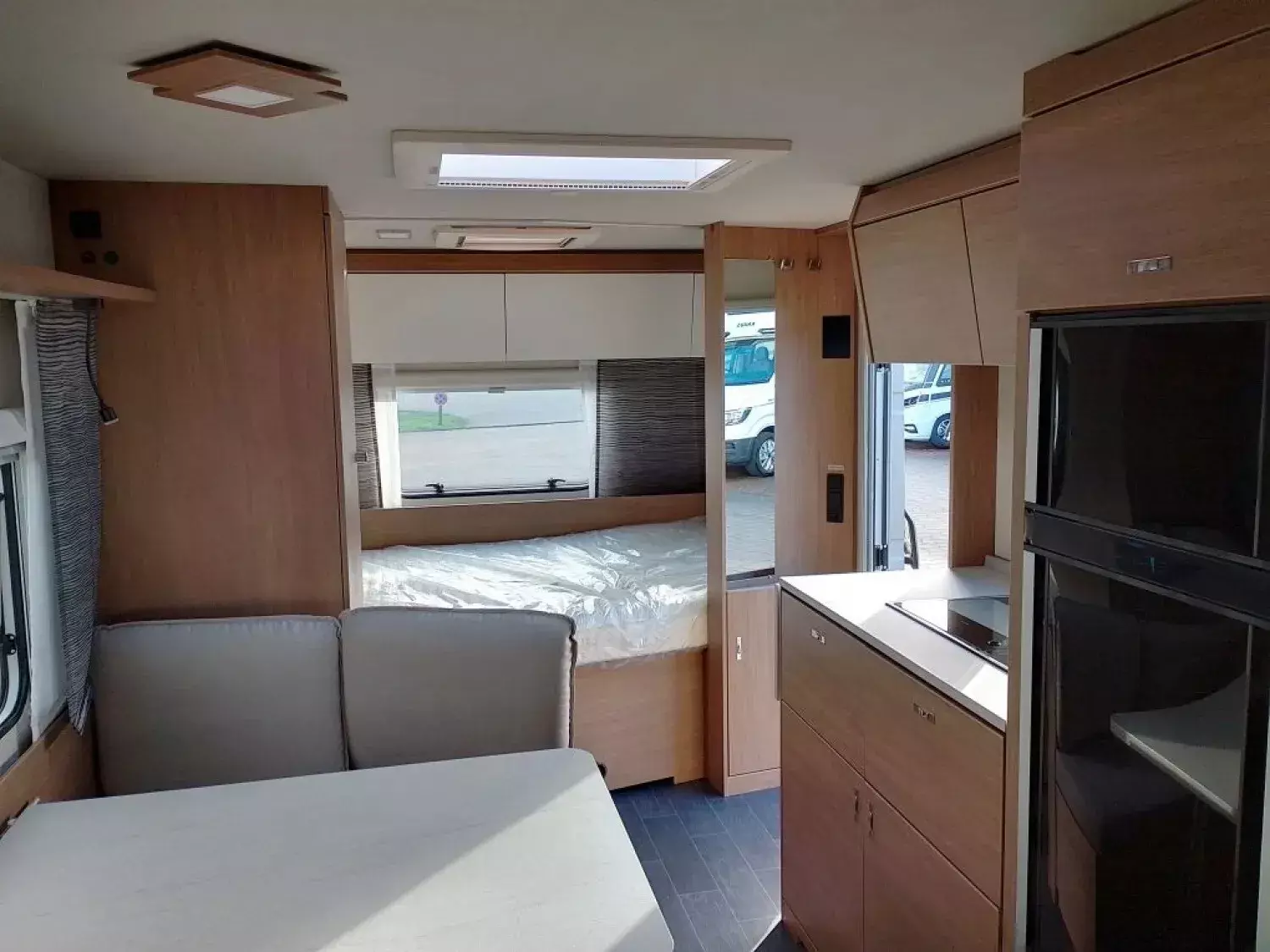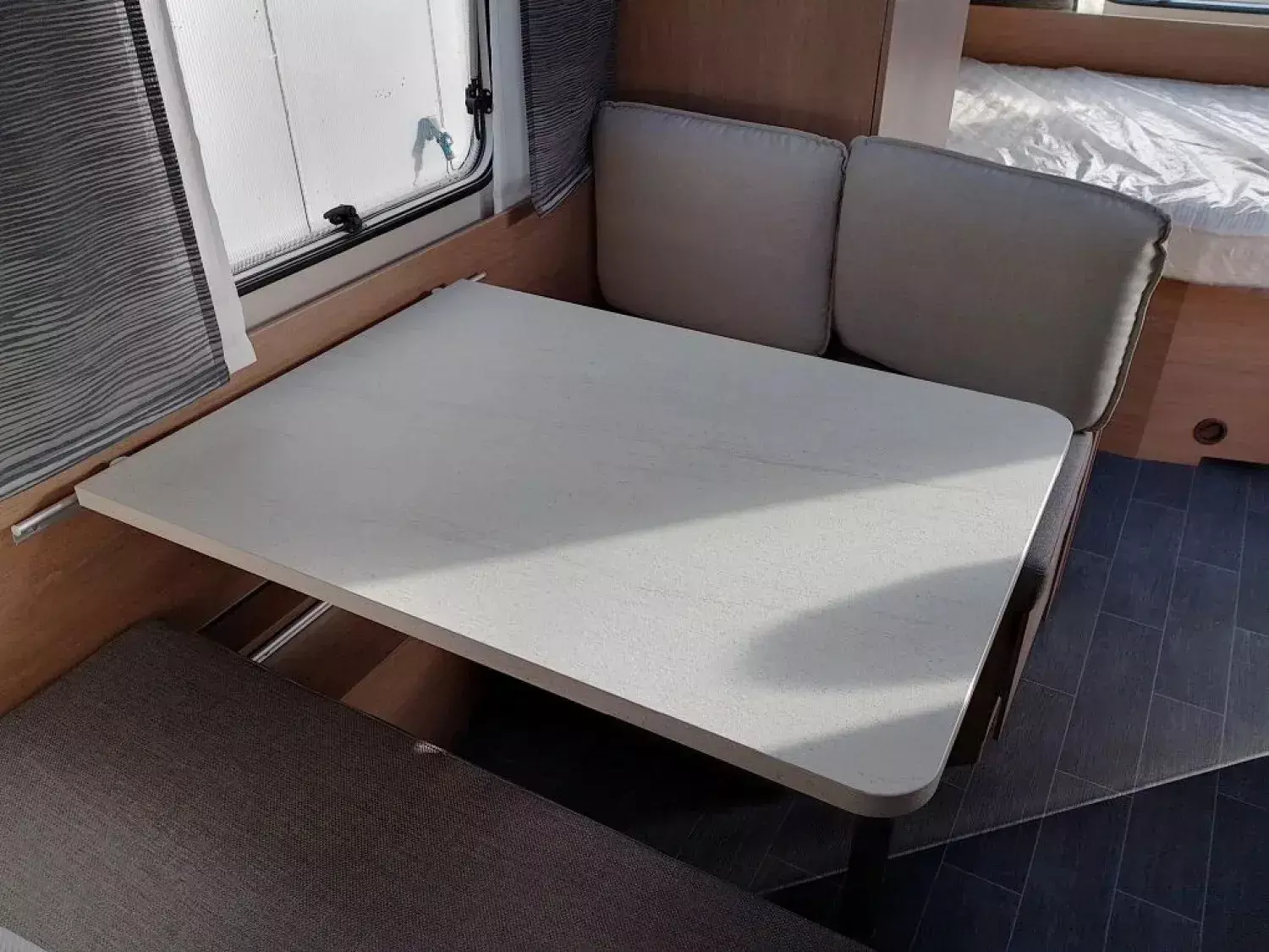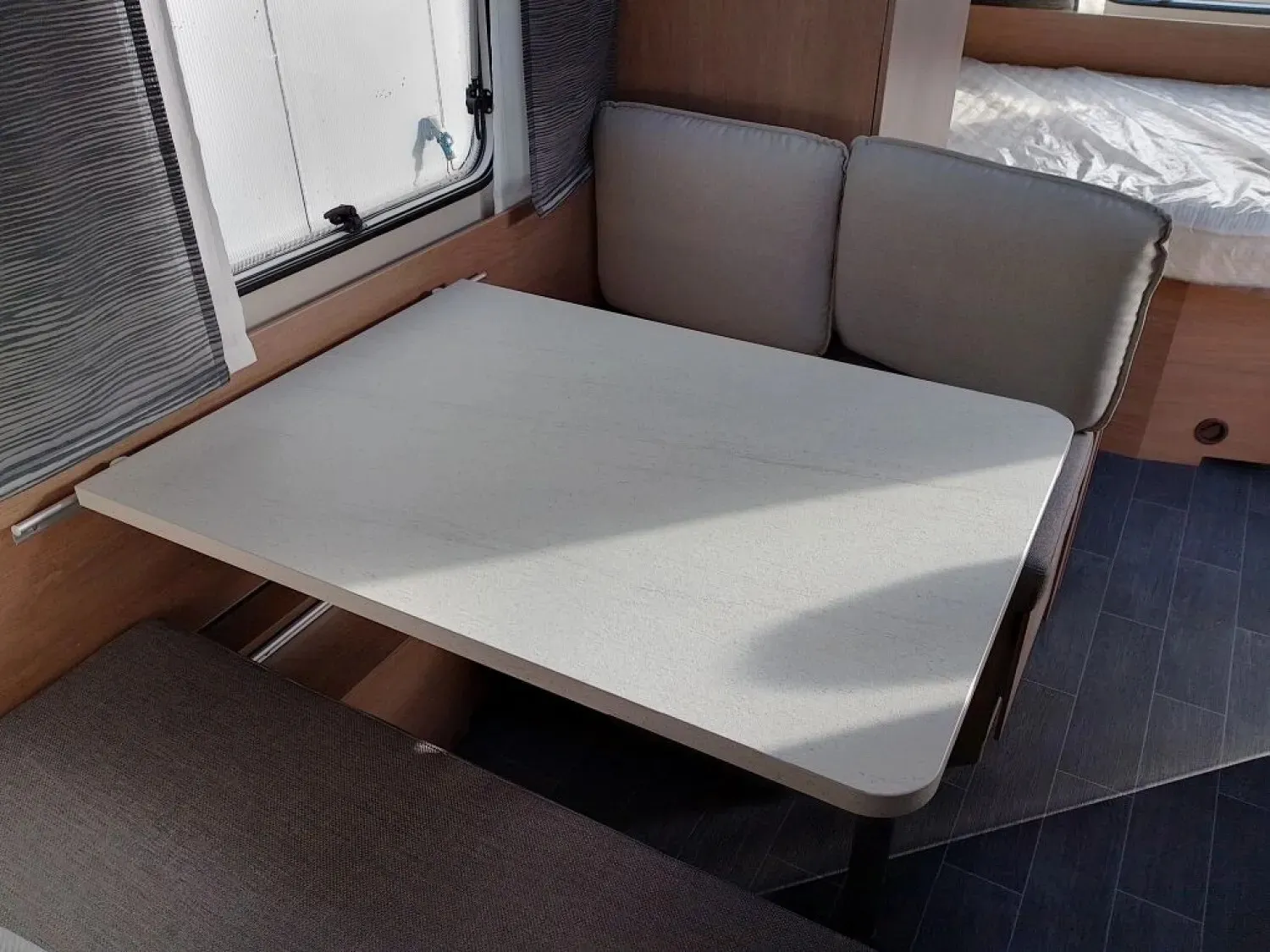 - Premium Interieur-Paket (Deko-Paket Schlafen "PANTIGA": 4 Kissen und 2 Decken im Schlafbereich, TABBERT Komfort Schlafsystem mit flexiblem Tellerrost und WaterGEL-Matratze, Insektenschutztür, Füllstandsanzeige für Frischwassertank)