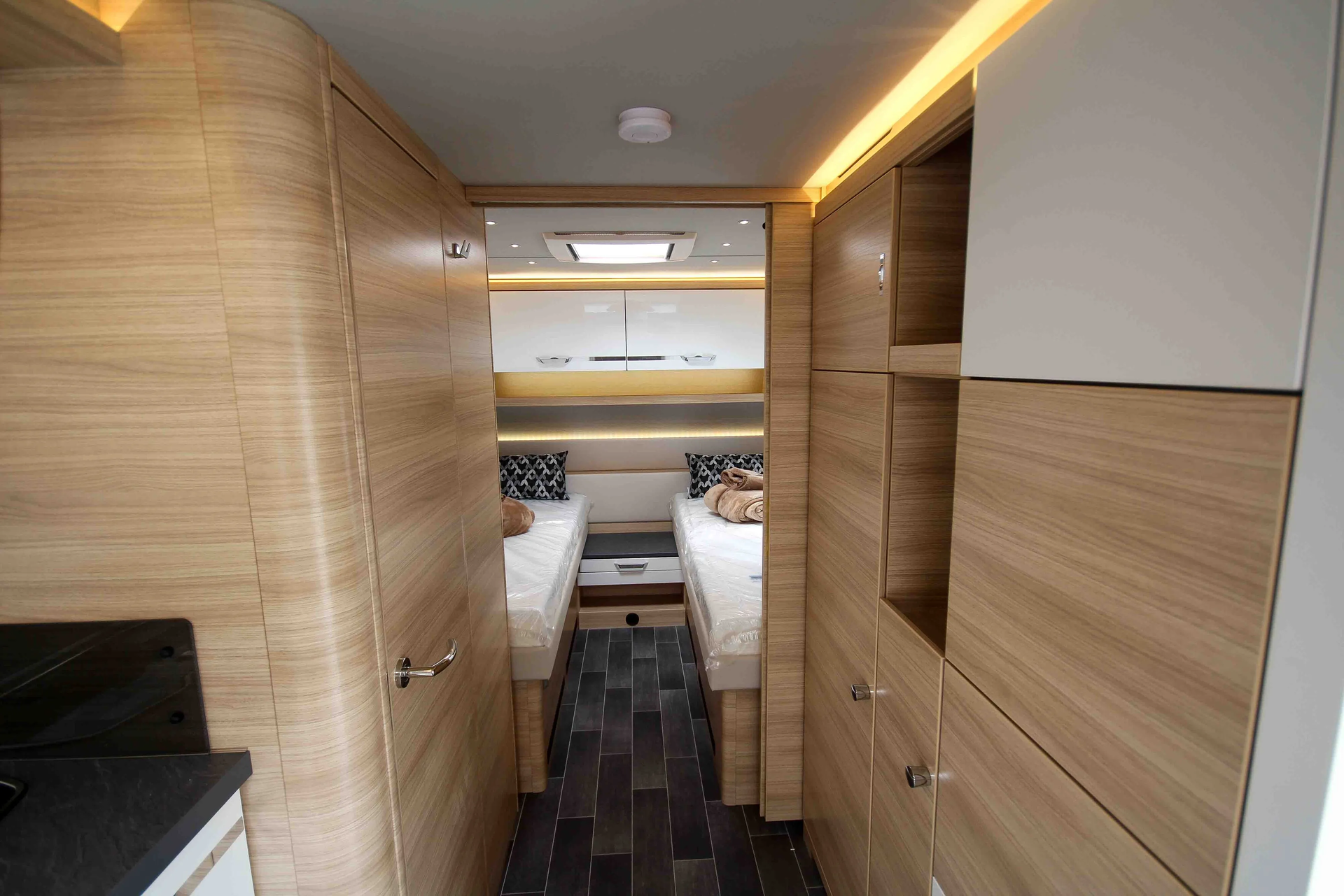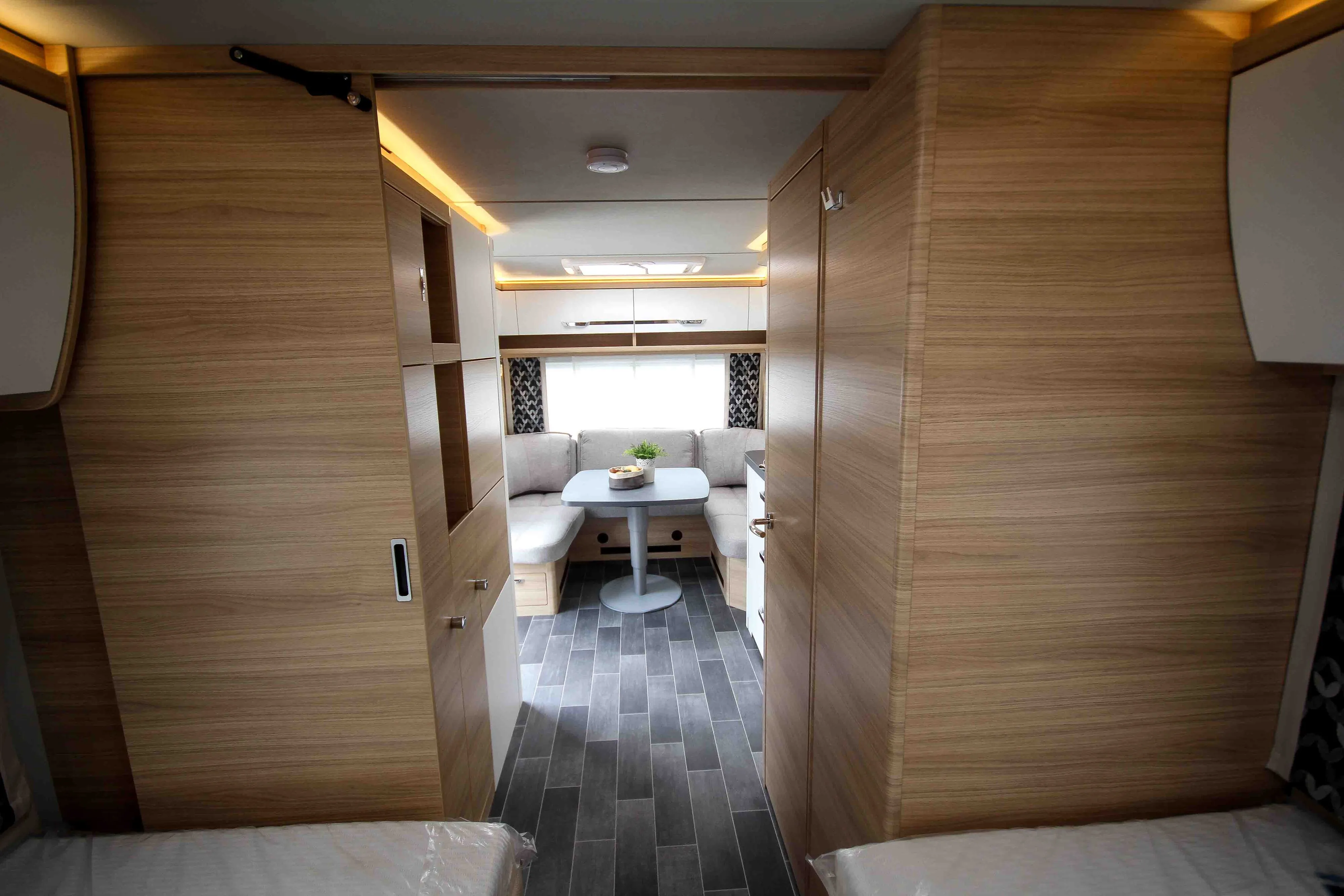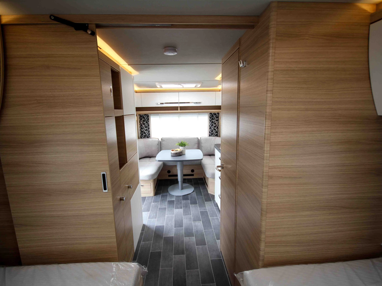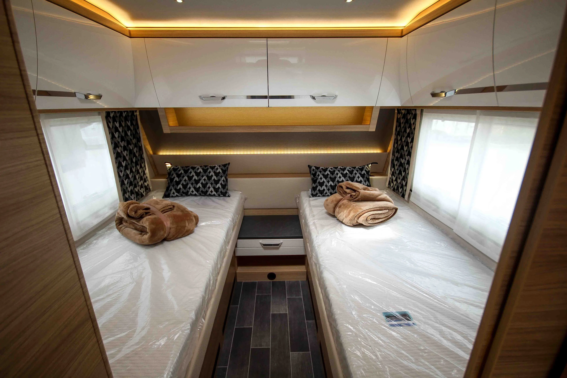 - Premium-Interieur-Paket (Insektenschutztür, Deko-Paket Schlafen: 2 Kissen und 2 Decken im Schlafbereich, TABBERT Komfort Schlafsystem mit flexiblem Tellerrost und WaterGEL-Matratze, Füllstandsanzeige Frischwassertank)