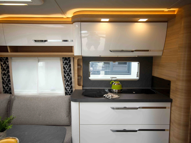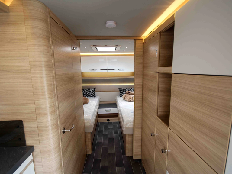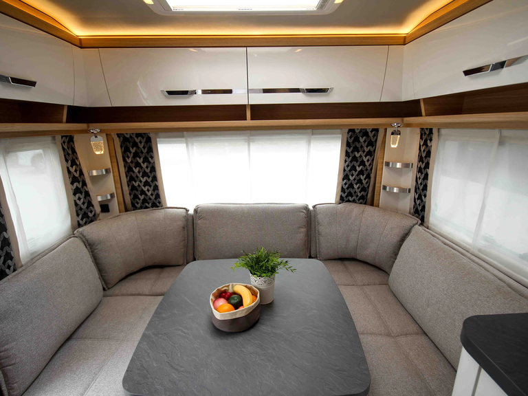 - Design-Exterieur-Paket (Rahmenfenster Seitz S6, Markisenleisten beleuchtet auf Türseite (dimmbar), Seitenwände mit Glattblech)