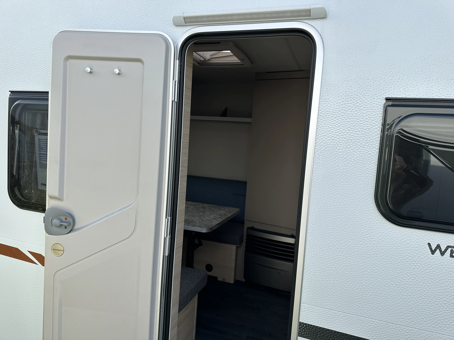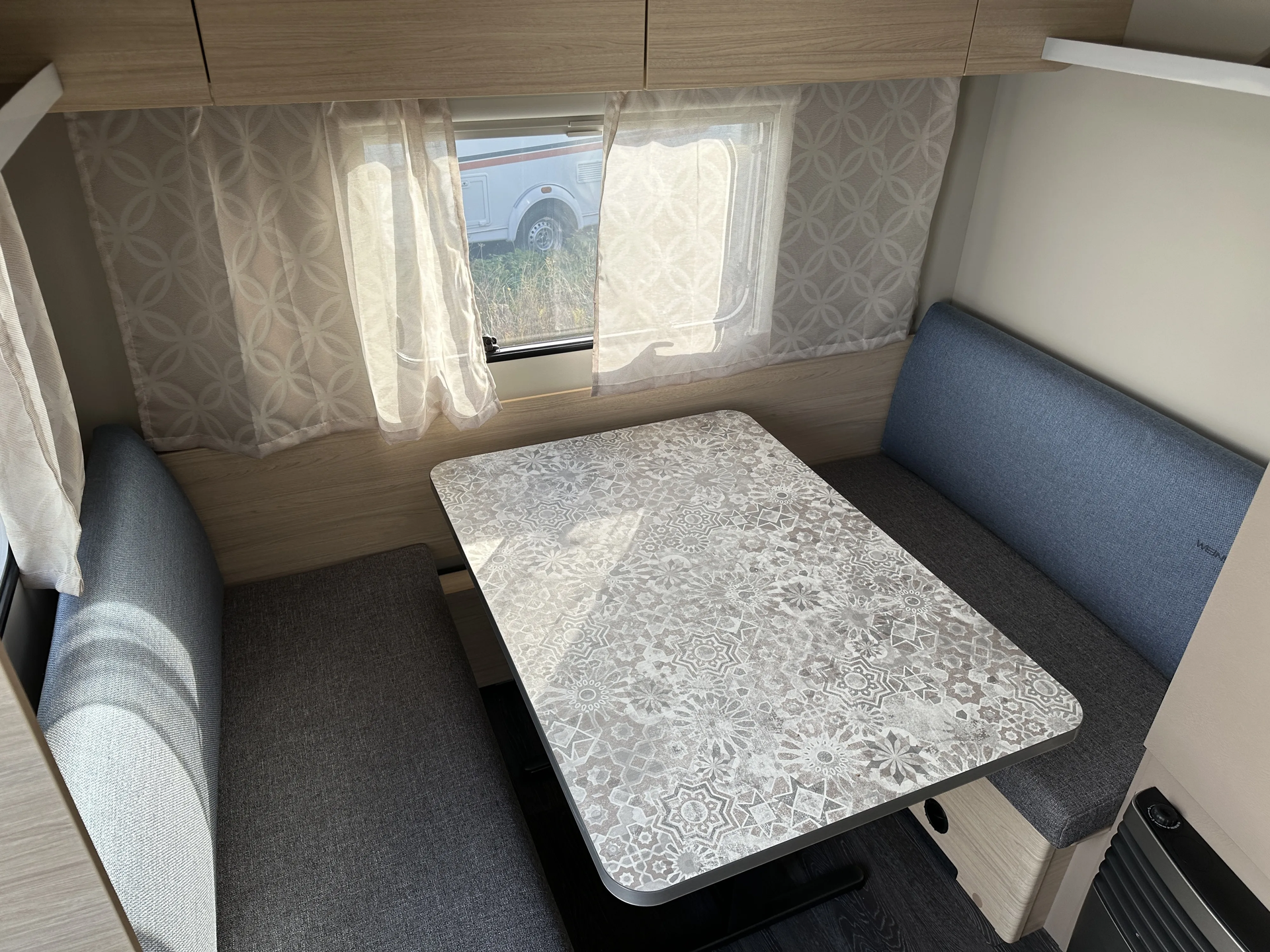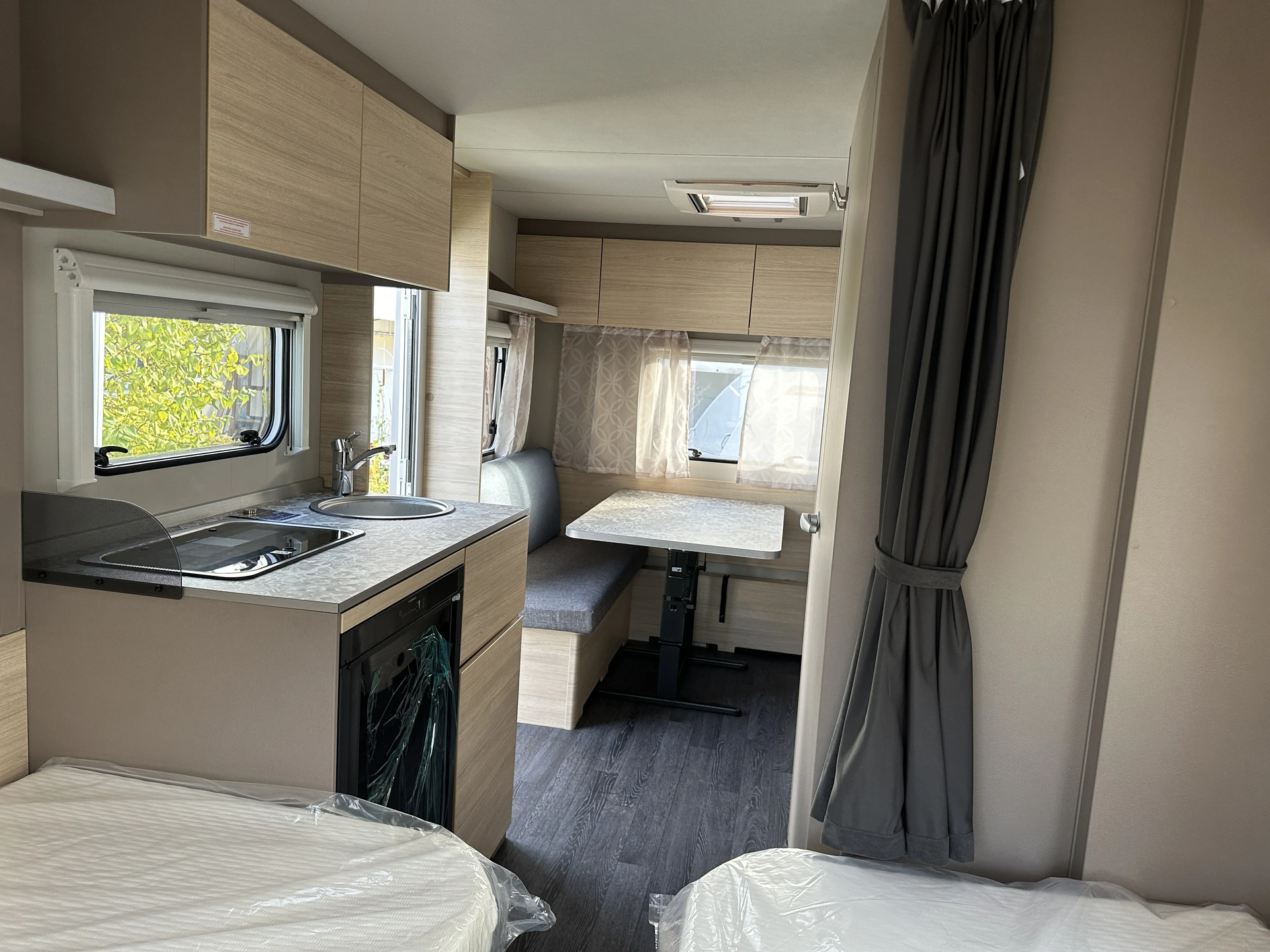- CaraCito Paket (Vorzeltleuchte mit Regenrinne, Hydraulische Radstoßdämpfer, Frischwassertank 45 Liter, Schwerlastkurbelstützen, Stabilisator Sicherheits kupplung, Kombi Rollos an den Fenstern)