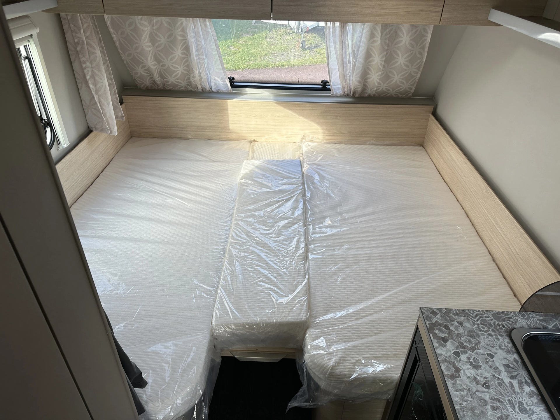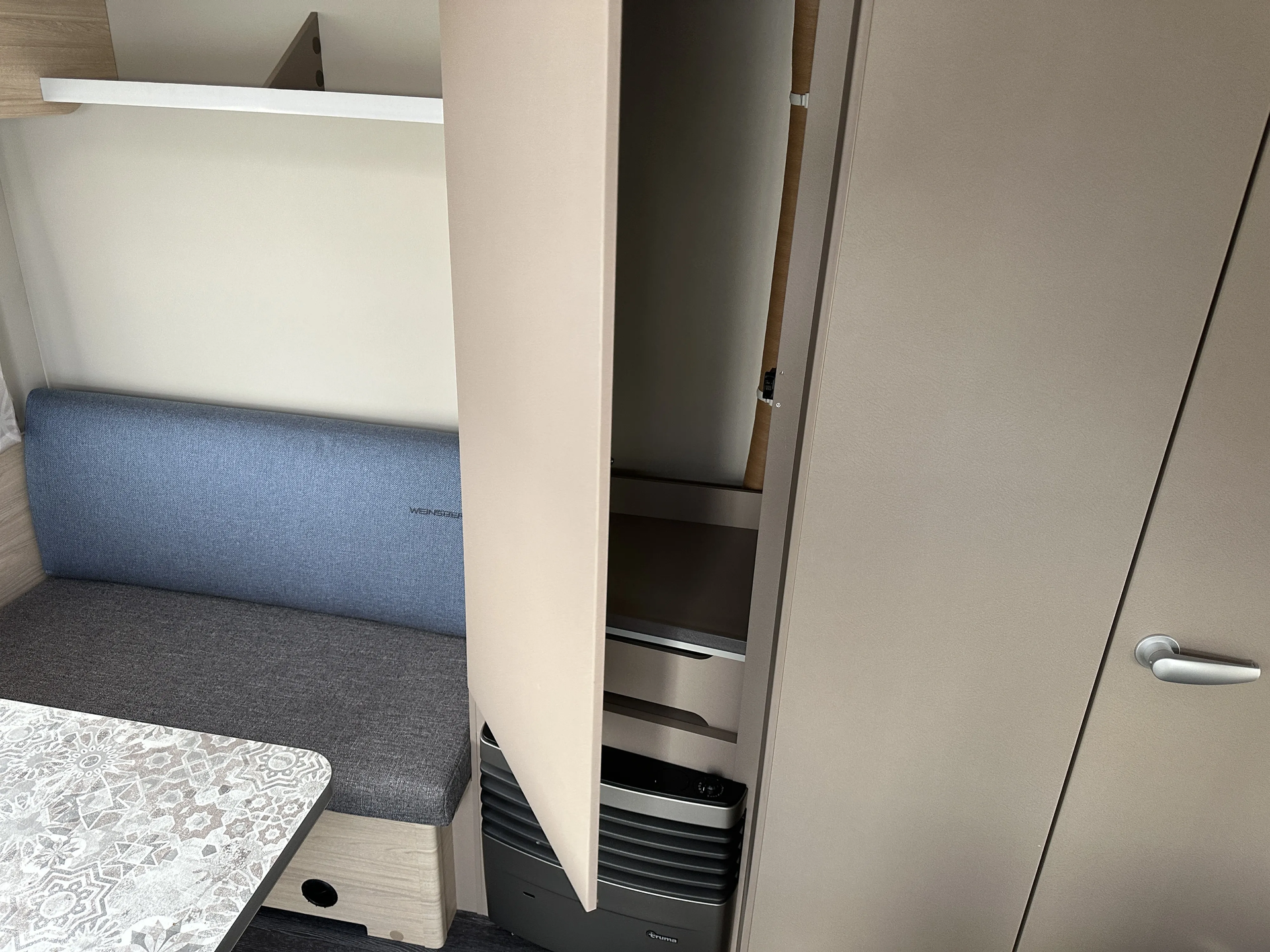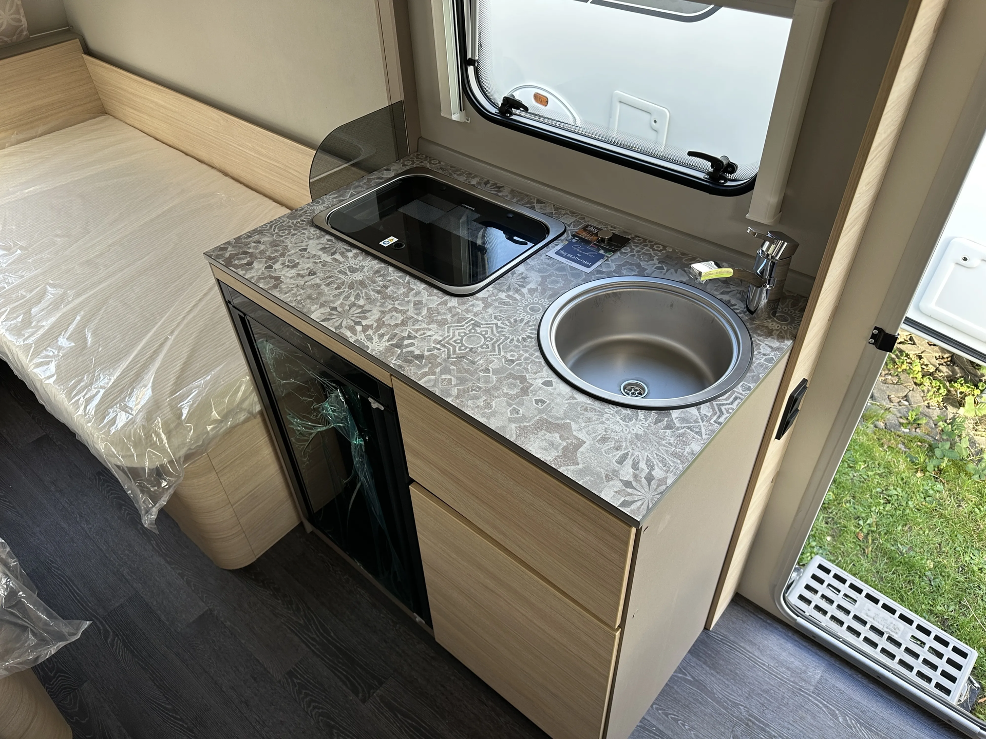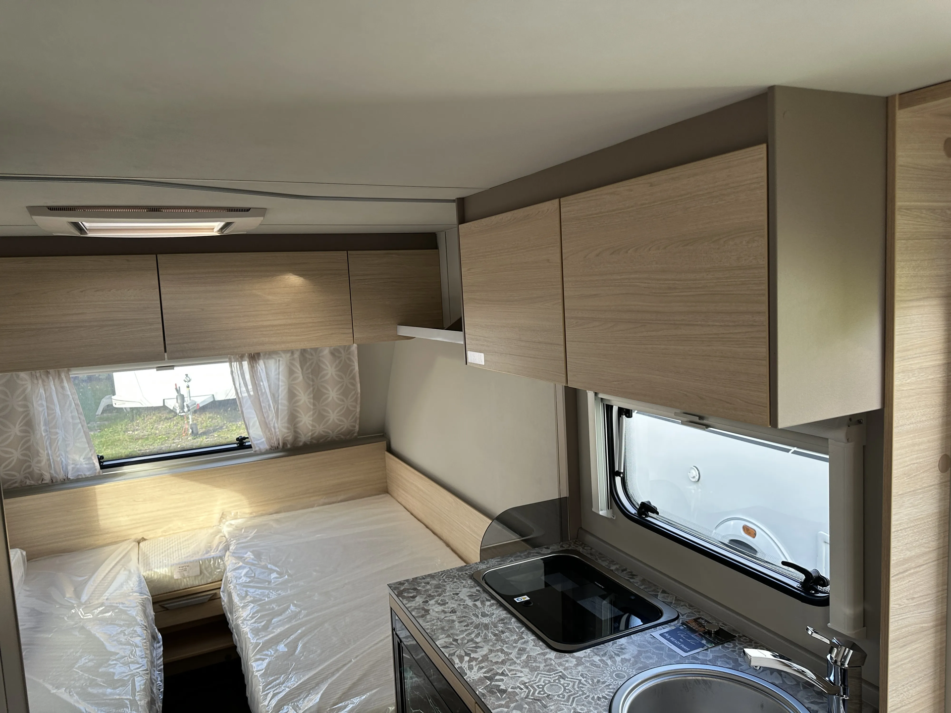 - CaraCito Paket (Vorzeltleuchte mit Regenrinne, Hydraulische Radstoßdämpfer, Frischwassertank 45 Liter, Schwerlastkurbelstützen, Stabilisator Sicherheits kupplung, Kombi Rollos an den Fenstern)