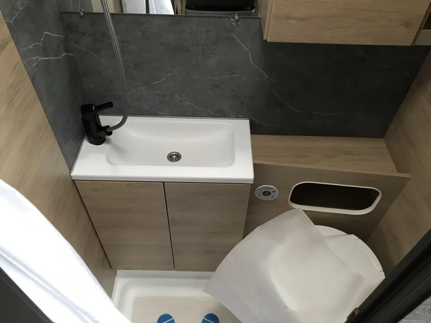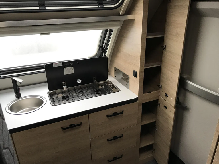 - Smart-Paket (Frischwassertank 45 Liter, Festeinbau, Stabilisator-Sicherheits-Kupplung, Umluftanlage 12 V, Kombi-Rollos an den Fenstern, inkl. Verdunklung und Insektenschutz)