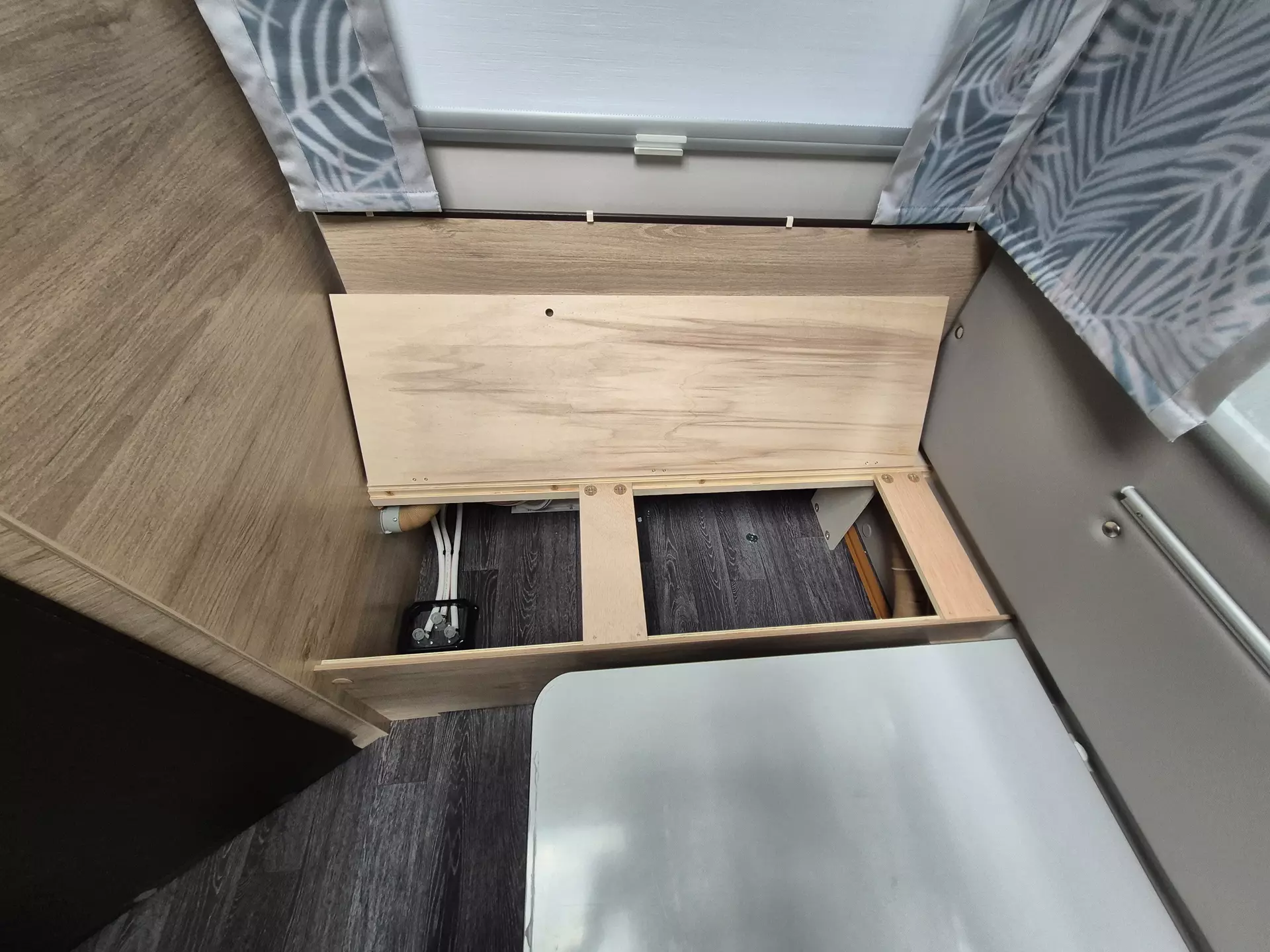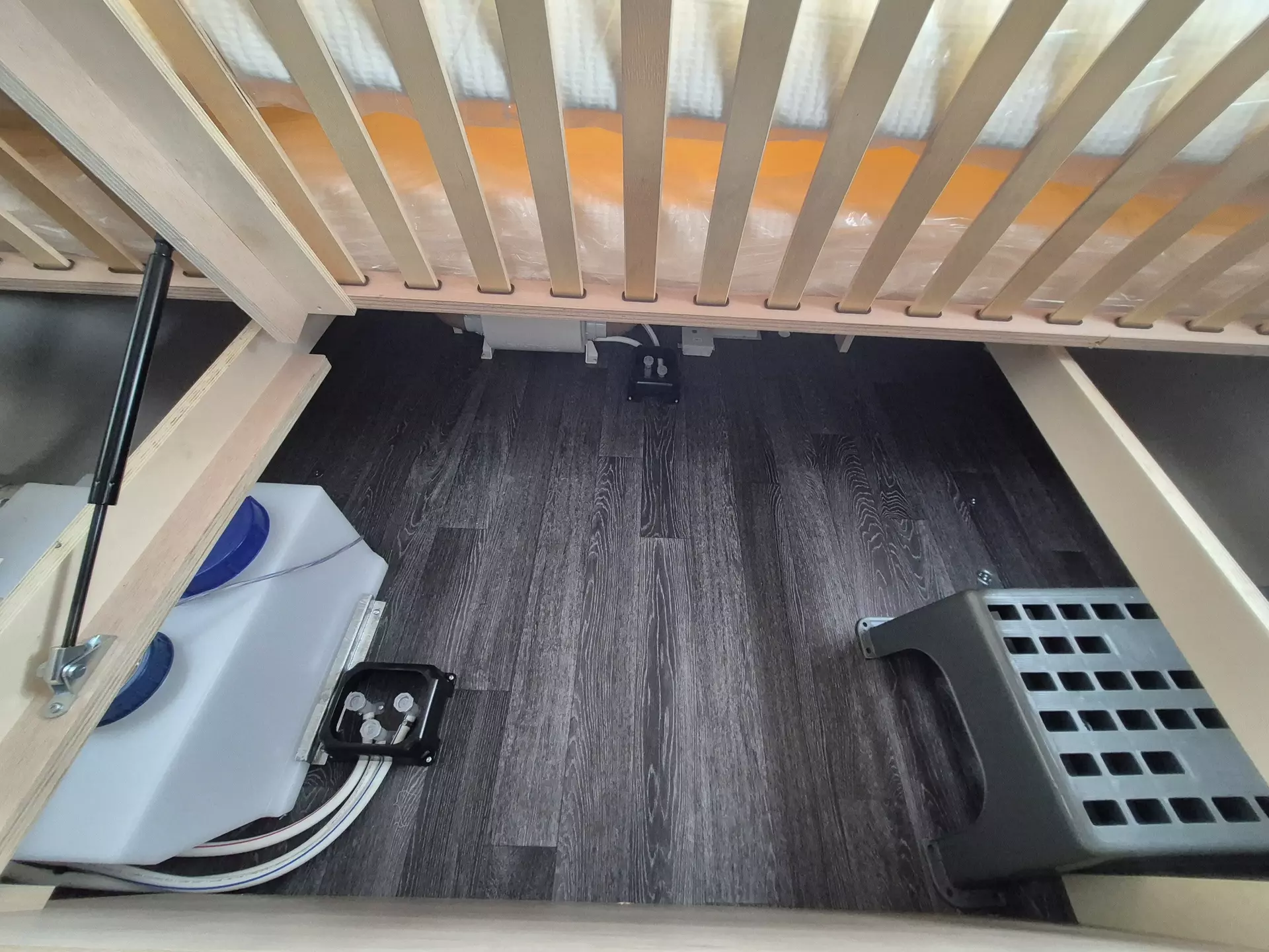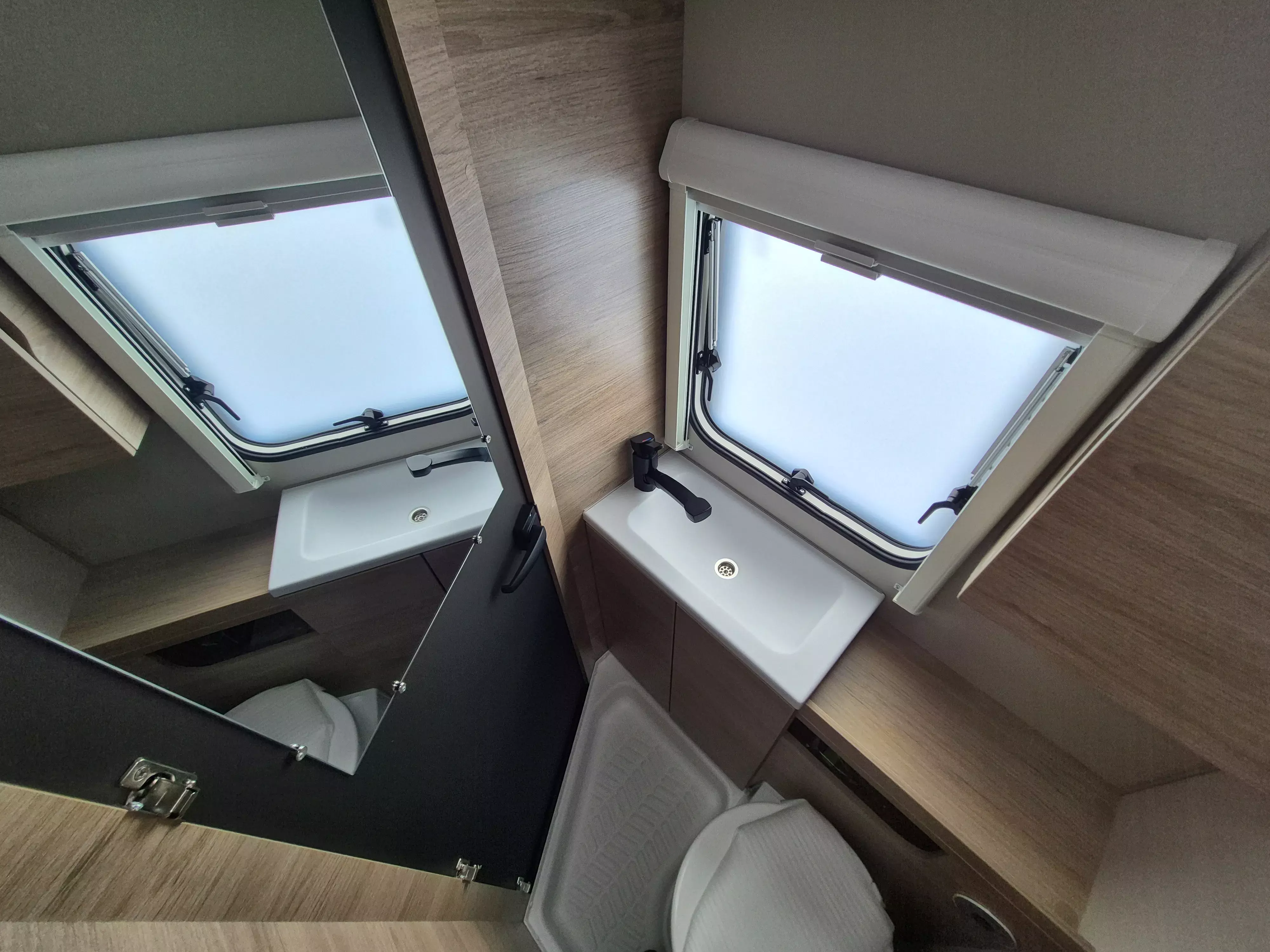 - Smart-Paket: Kombi-Rollos an den Fenstern, inkl. Verdunklung und Insektenschutz, Stabilisator-Sicherheits-Kupplung, Frischwassertank 45 Liter, Festeinbau, Umluftanlage 12 V