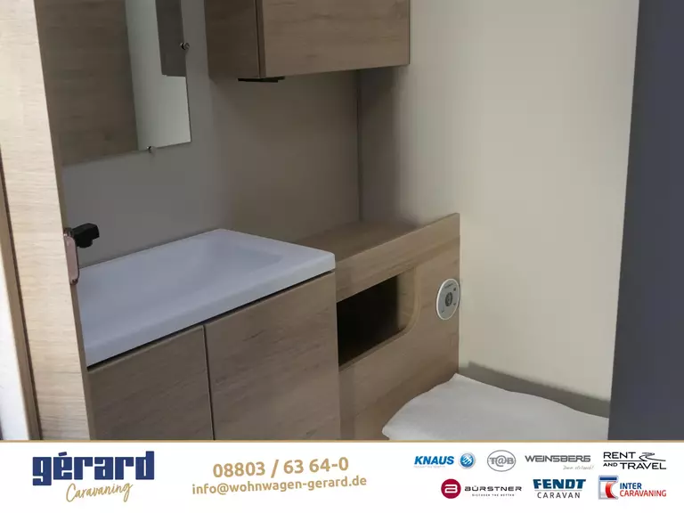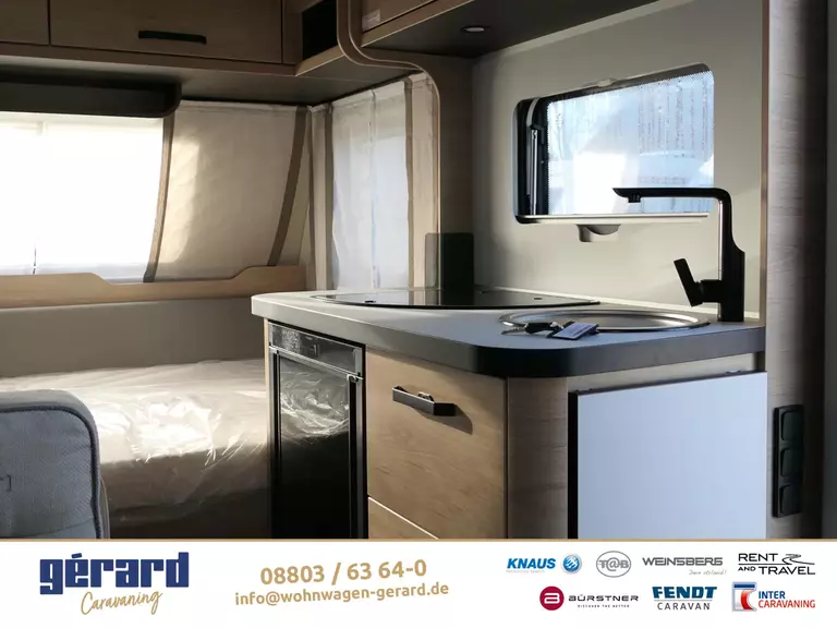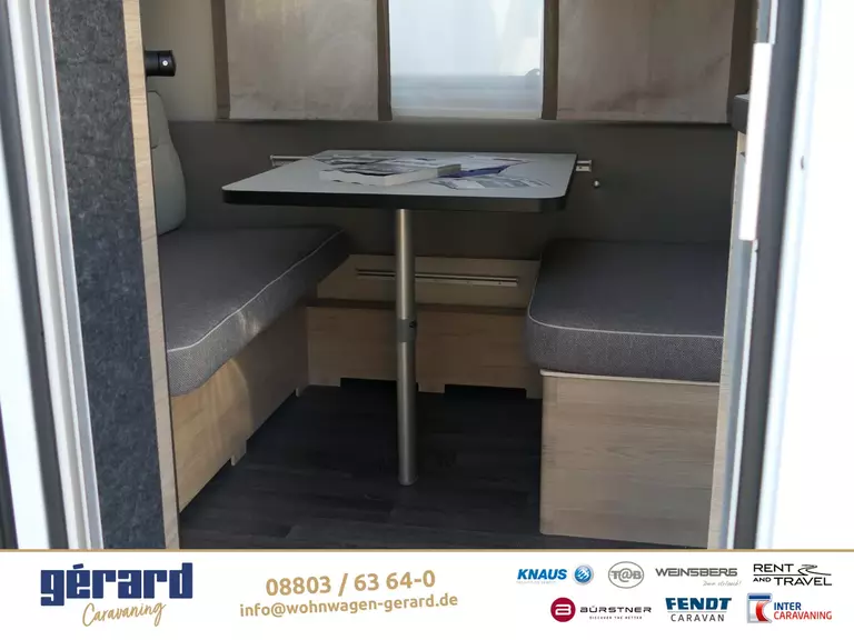 - Smart-Paket (Frischwassertank 45 Liter, Festeinbau, Stabilisator-Sicherheits-Kupplung, Umluftanlage 12 V, Kombi-Rollos an den Fenstern, inkl. Verdunklung und Insektenschutz)