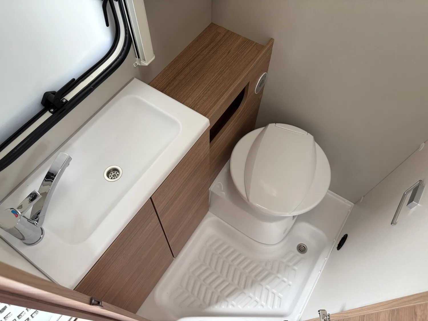 - Ausstellfenster 52 x 50 cm, mit Insektenschutz und Verdunklung (Toilettenraum)