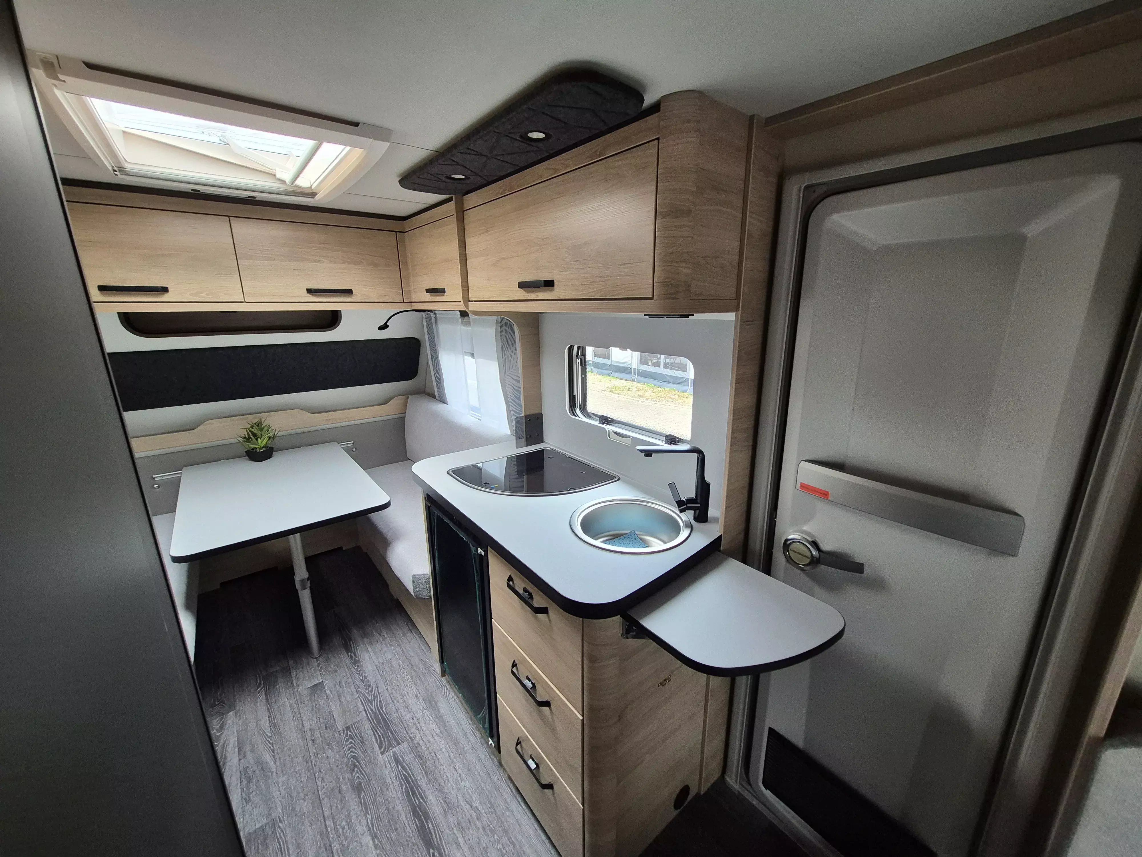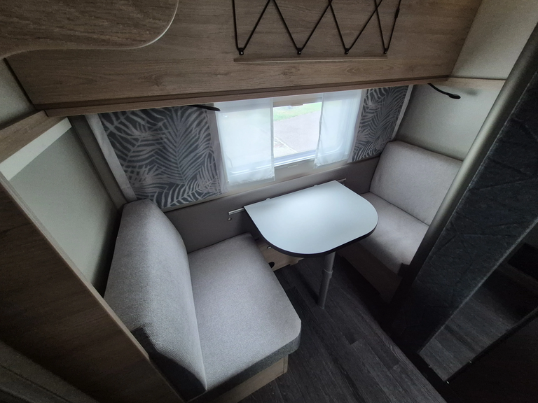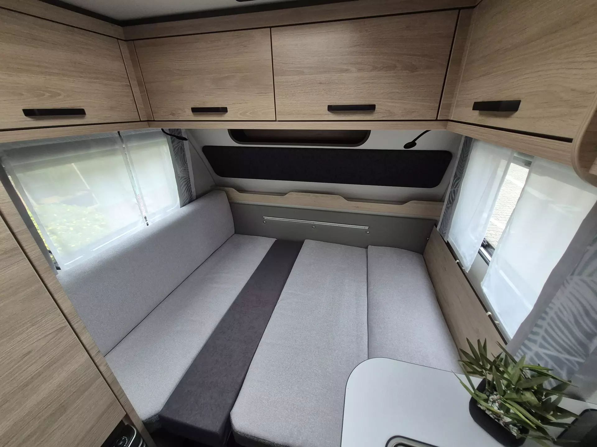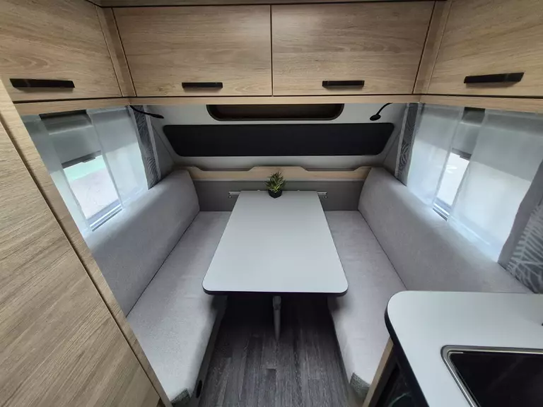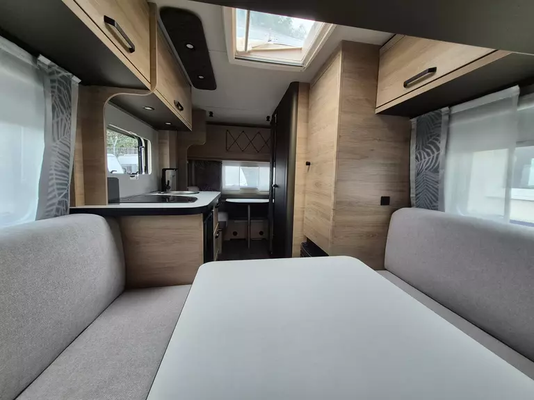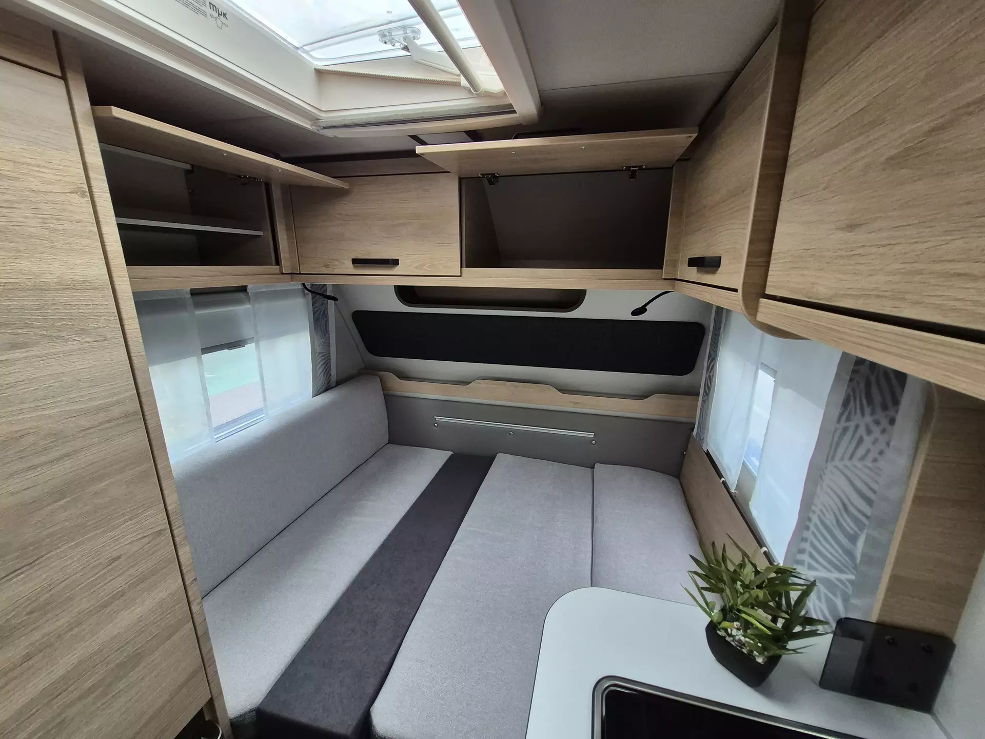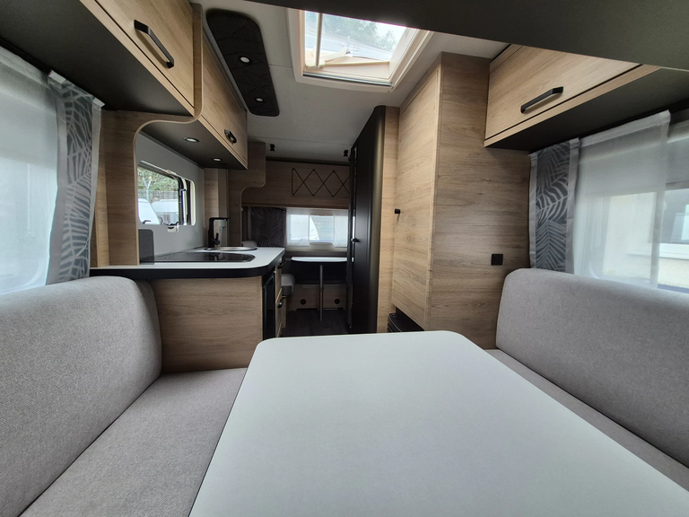 - Smart-Paket (Kombi-Rollos an den Fenstern, inkl. Verdunklung und Insektenschutz, Stabilisator-Sicherheits-Kupplung, Frischwassertank 45 Liter, Festeinbau, Umluftanlage 12 V)