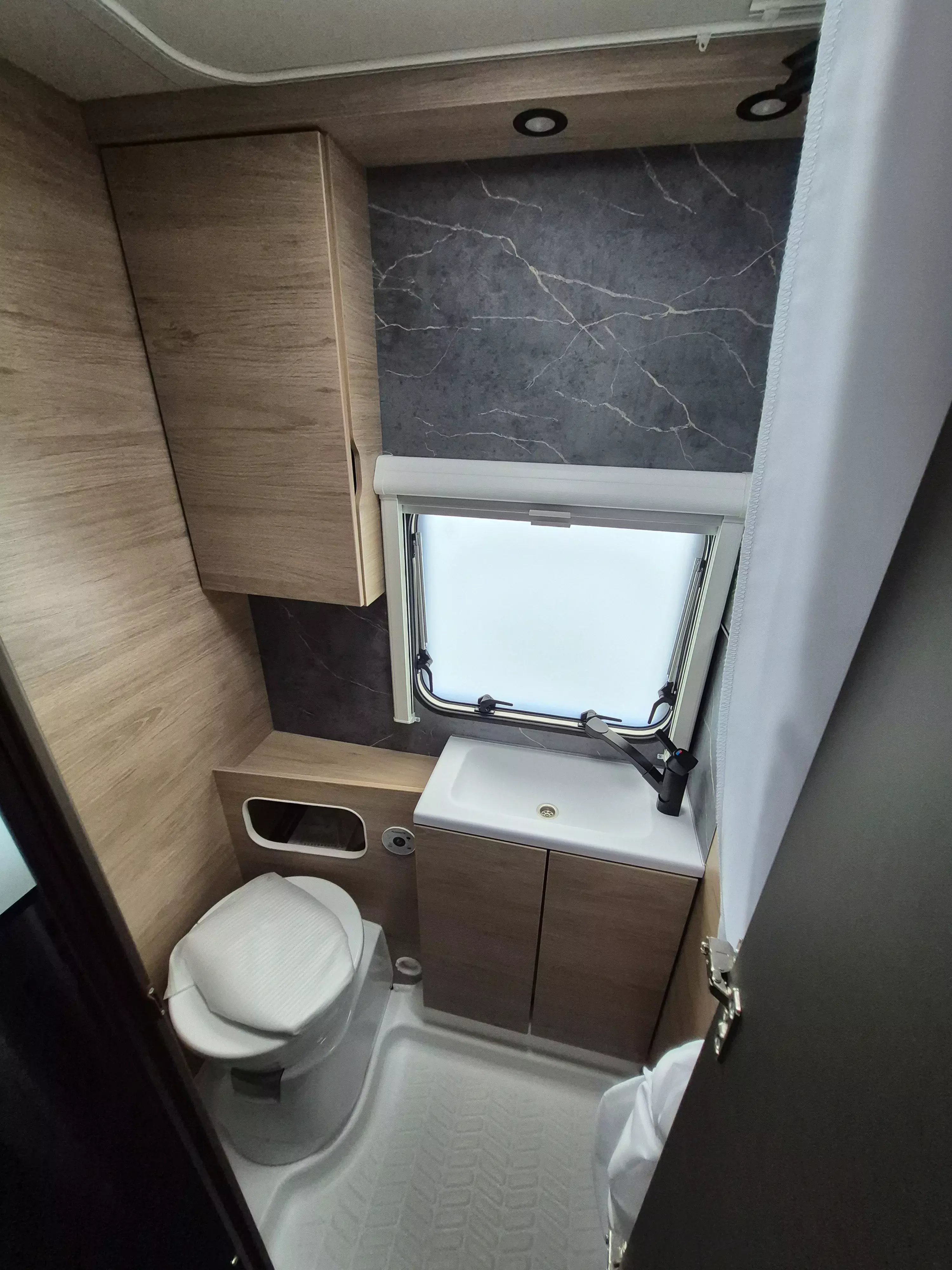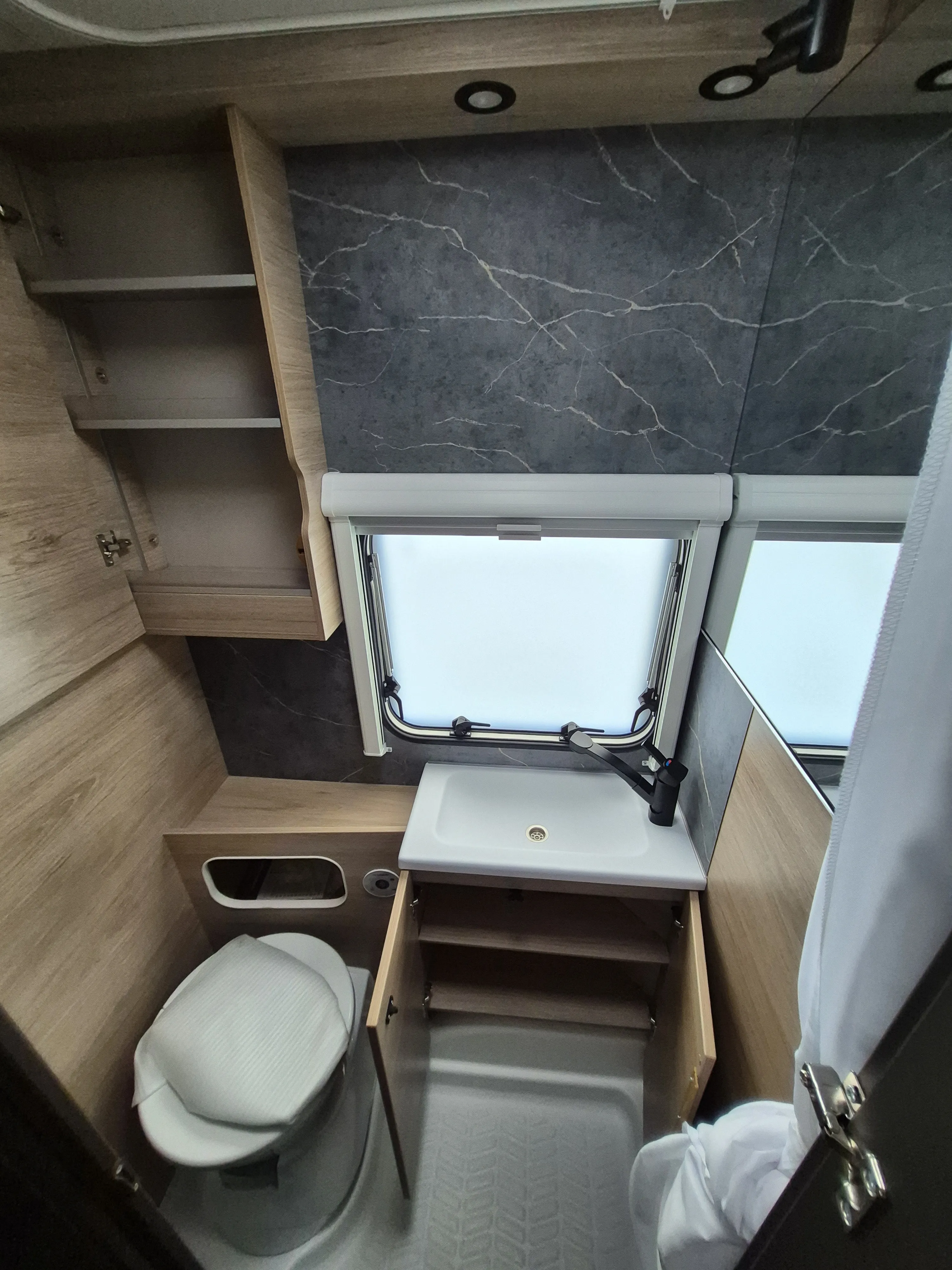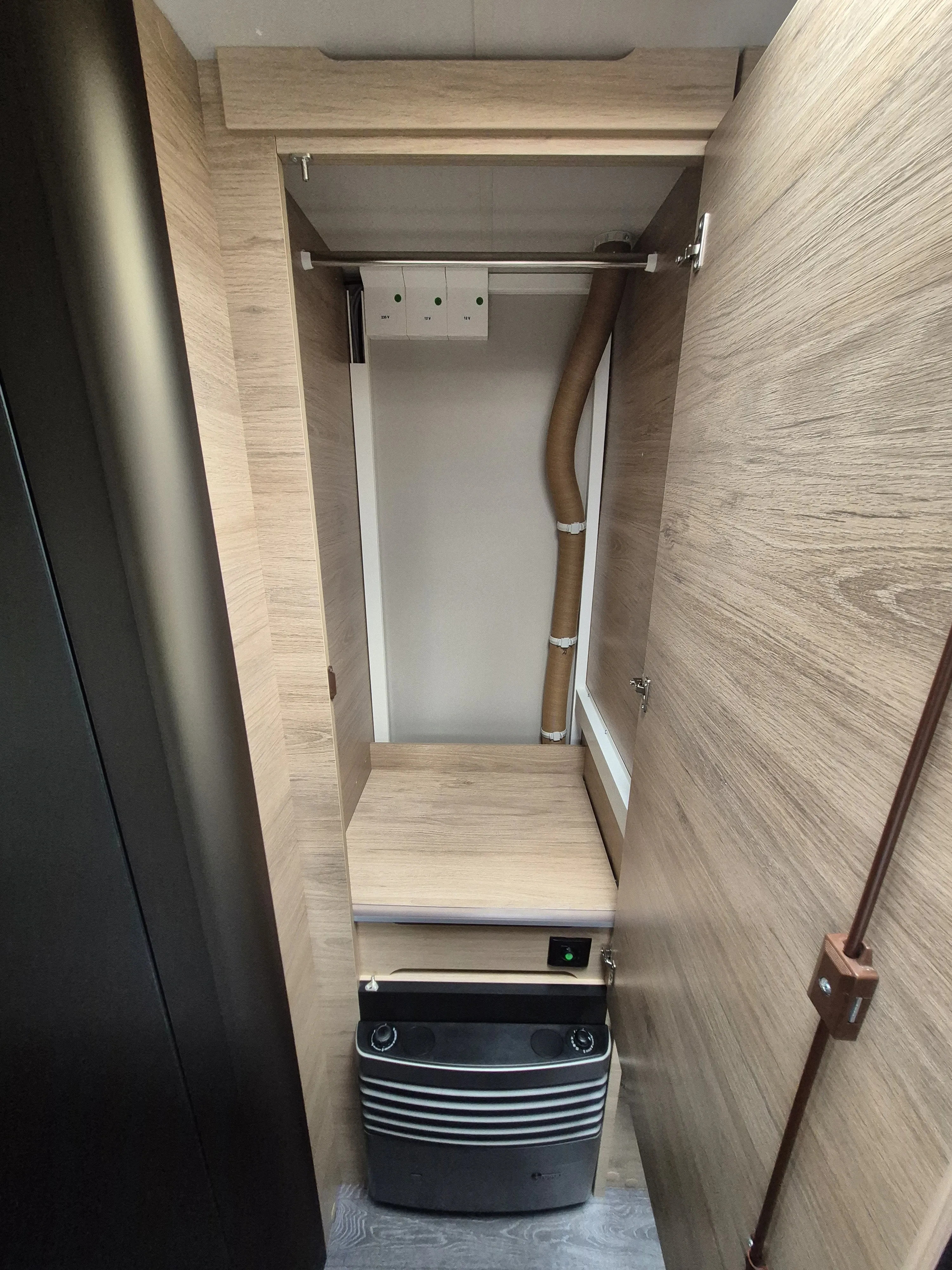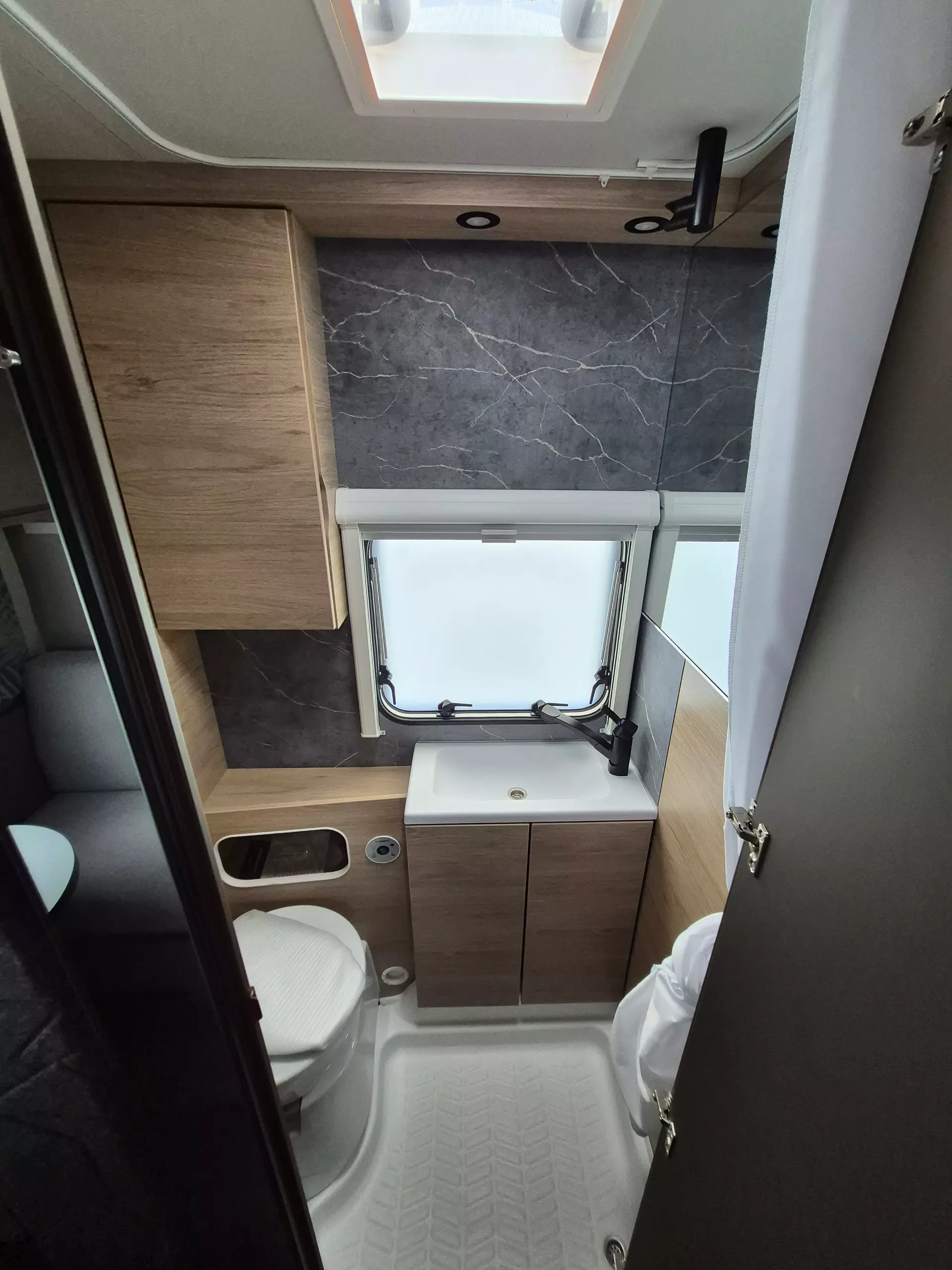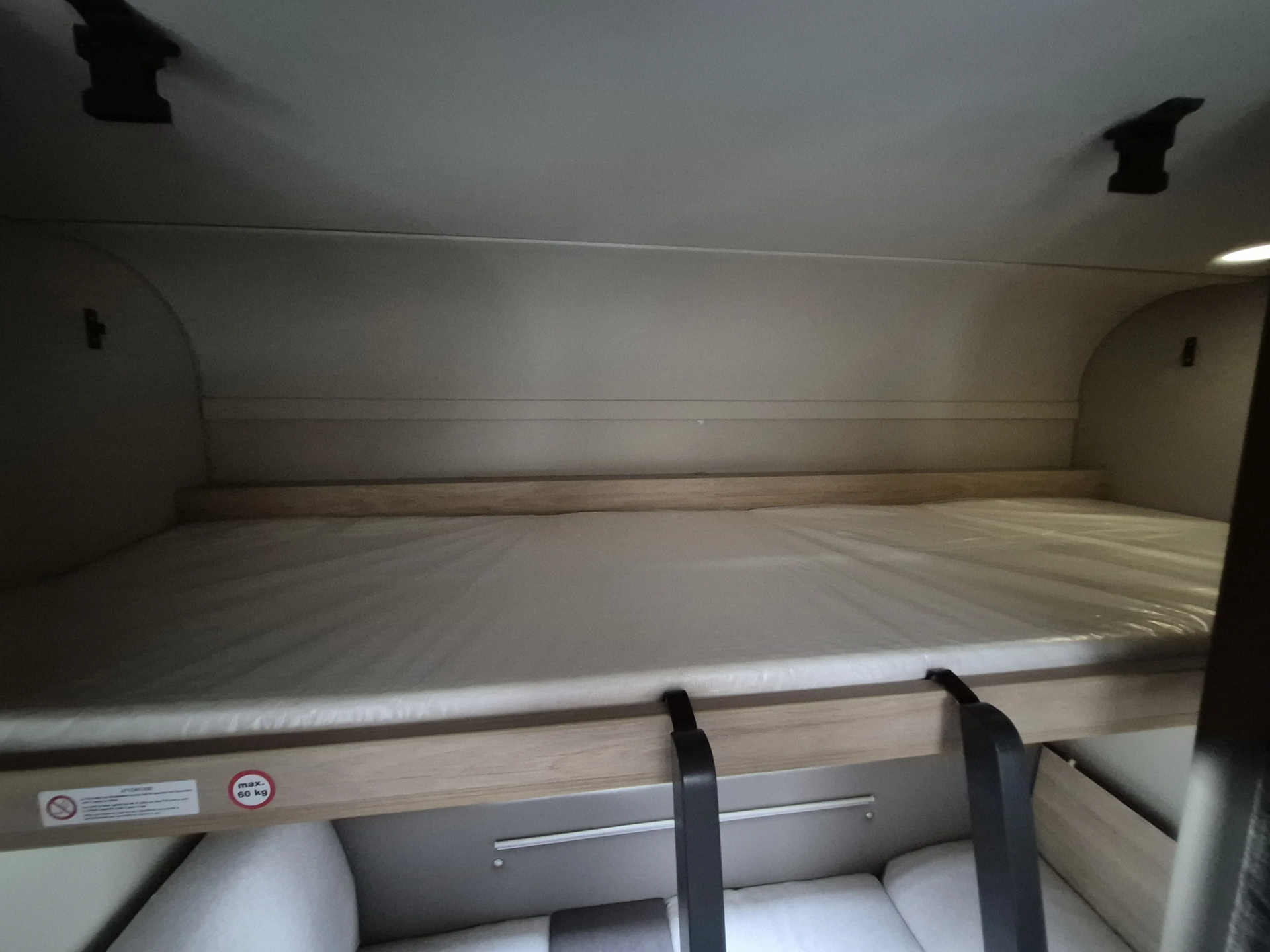 - Smart-Paket (Kombi-Rollos an den Fenstern, inkl. Verdunklung und Insektenschutz, Stabilisator-Sicherheits-Kupplung, Frischwassertank 45 Liter, Festeinbau, Umluftanlage 12 V)
