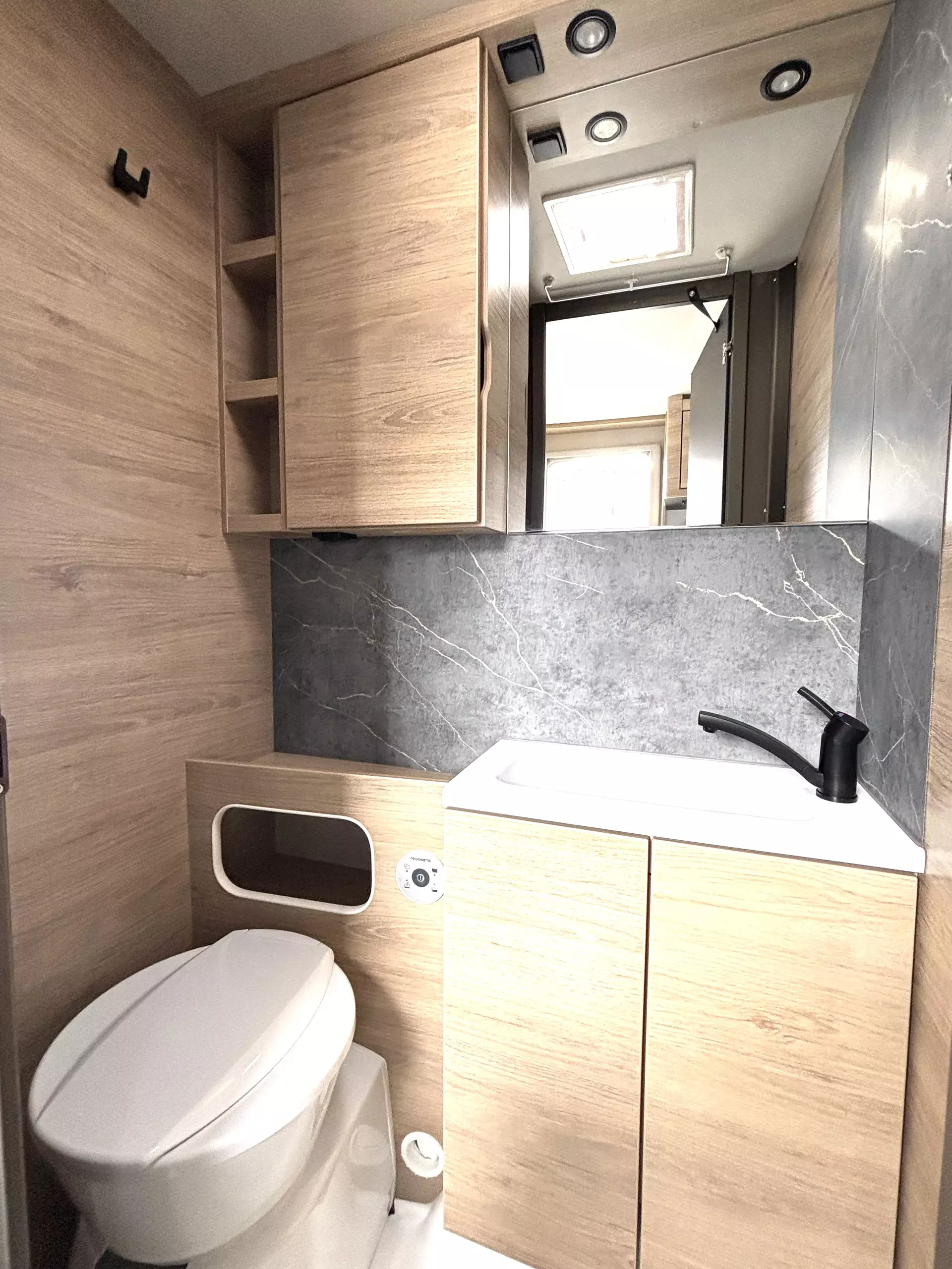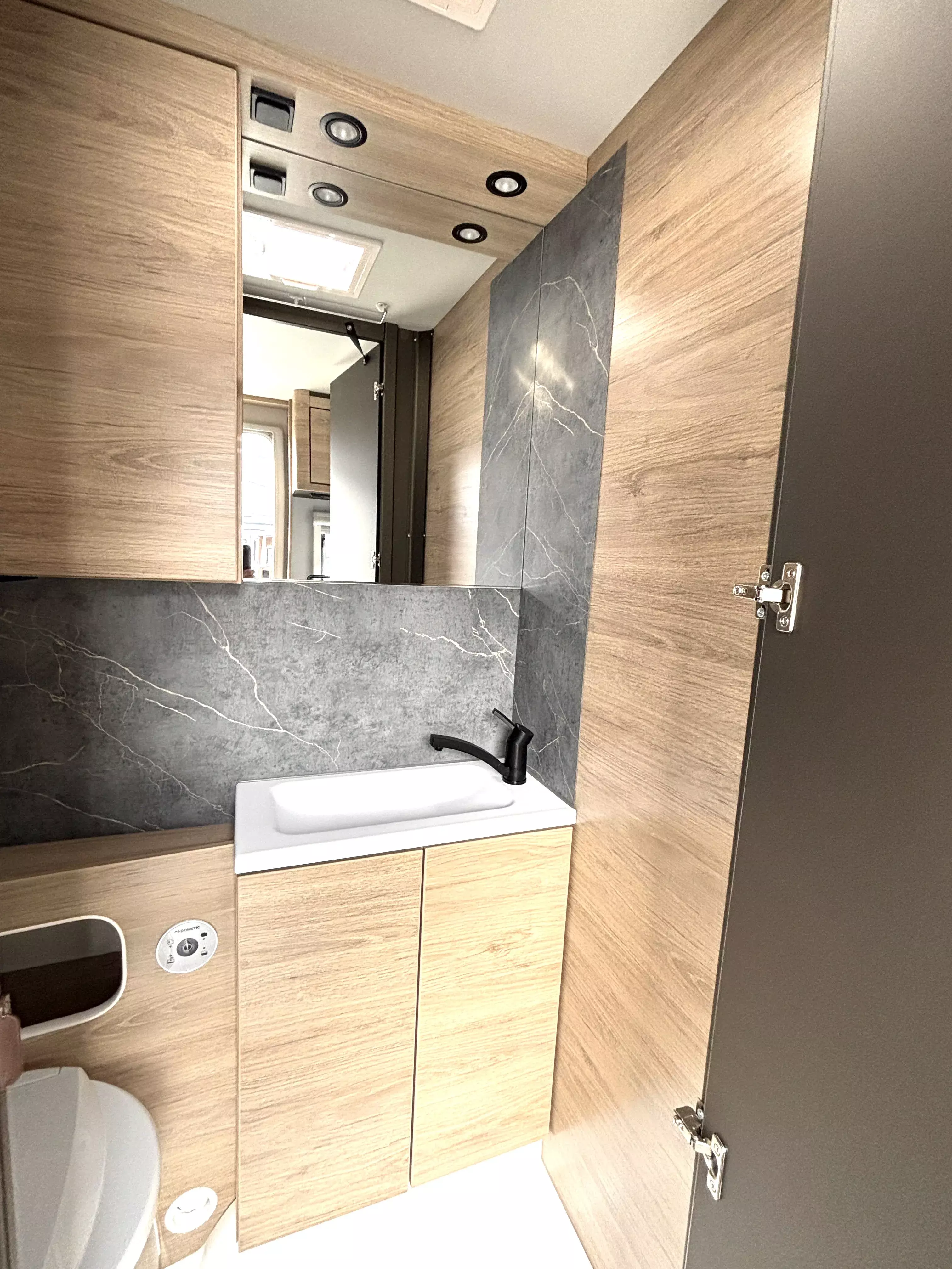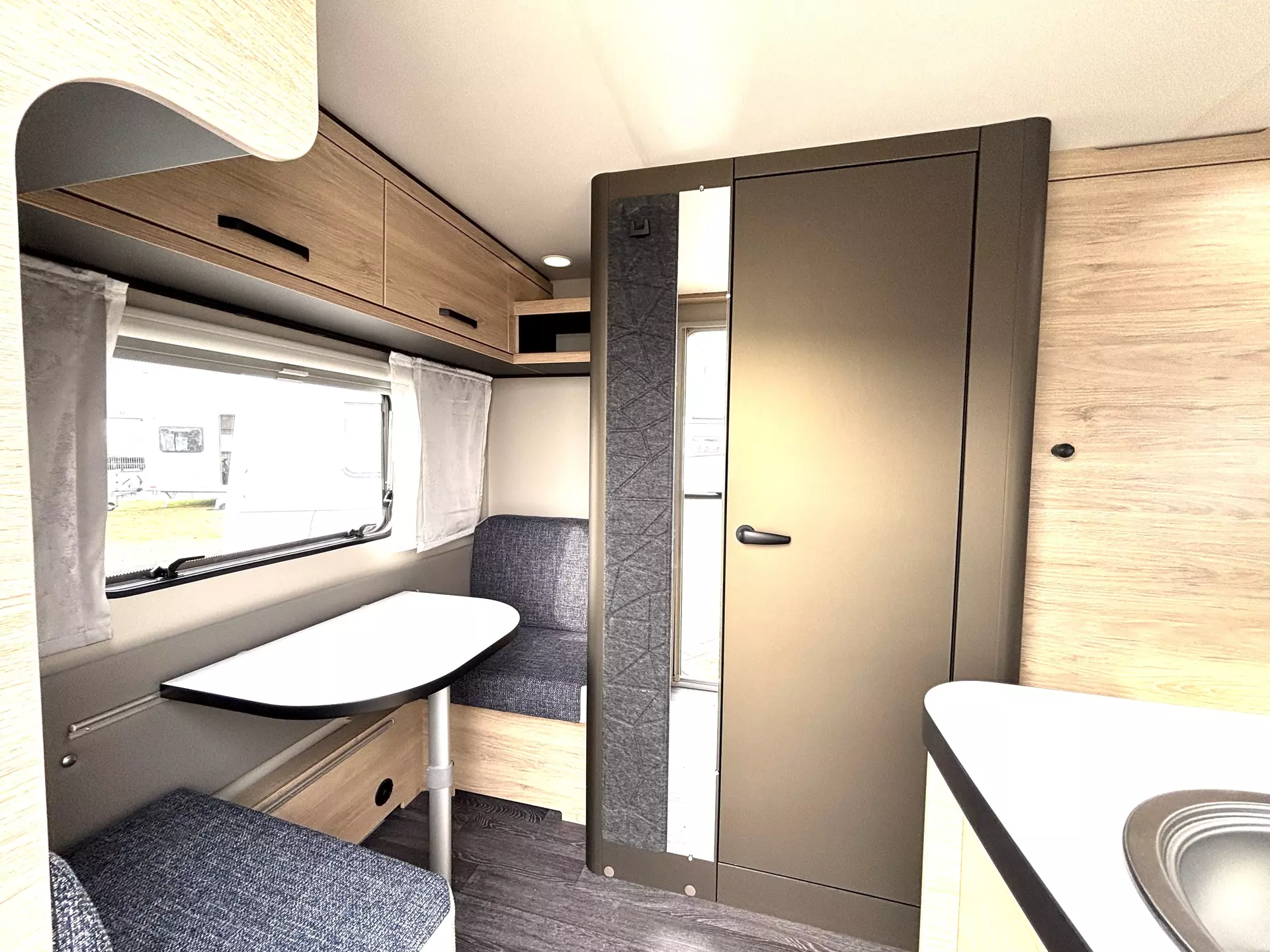- Sitzgruppe mit Deckenschrank im Heck