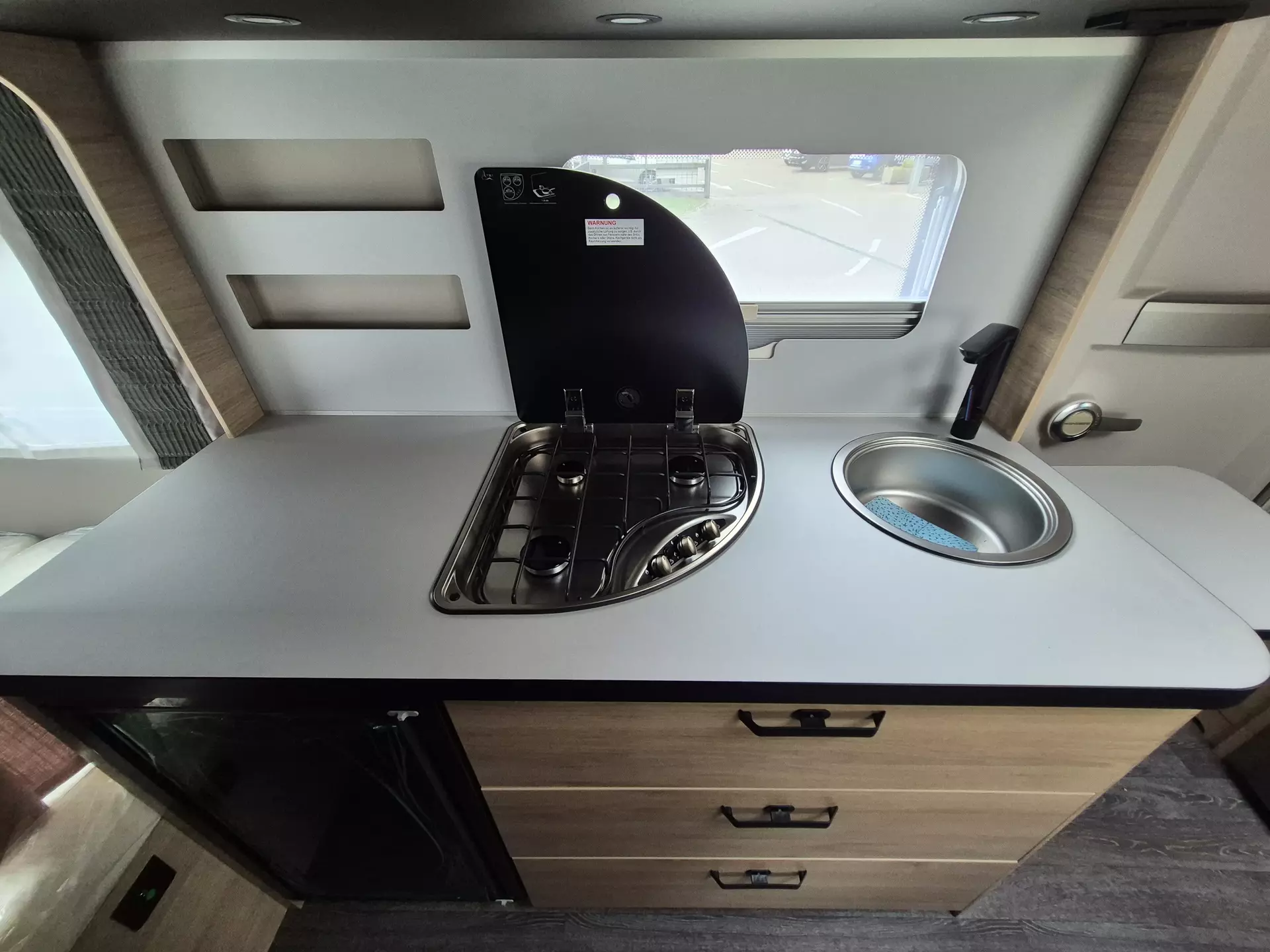 - 3-Flammen-Kocher mit Glasabdeckung, Spülbecken aus Edelstahl, versenkt