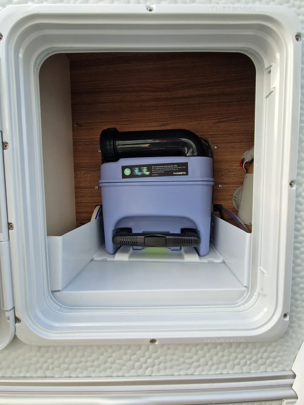 - Advanced-Paket (TRUMA Therme mit Anschluss für Küche und T-Raum (nur 230 V Betrieb), Dachhaube (Hebe-Kipp) 70 x 50 cm, mit Insektenschutz und Verdunklung (Mitte), Abwassertank 25 Liter, rollbar, Duschausbau Waschraum: Brausearmatur mit Halter und Duschvorhang, Insektenschutztür)