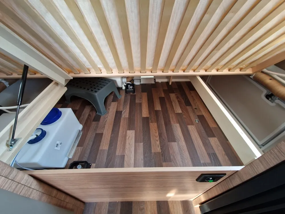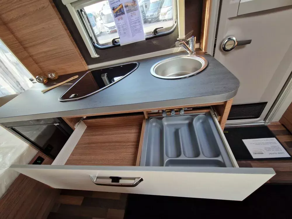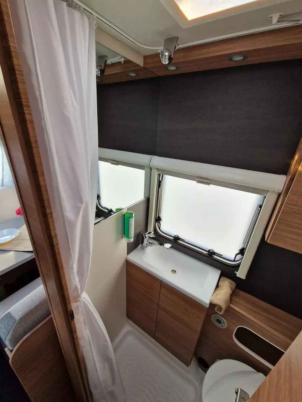 - Smart-Paket (Seifen- und Spülmittelspender, Wasserfiltersystem "bluuwater", Frischwassertank 45 Liter, Festeinbau, MediKit Gutschein, Schwerlastkurbelstützen, Stabilisator-Sicherheits-Kupplung, Umluftanlage 12 V, Kombi-Rollos an den Fenstern, inkl. Verdunklung und Insektenschutz)