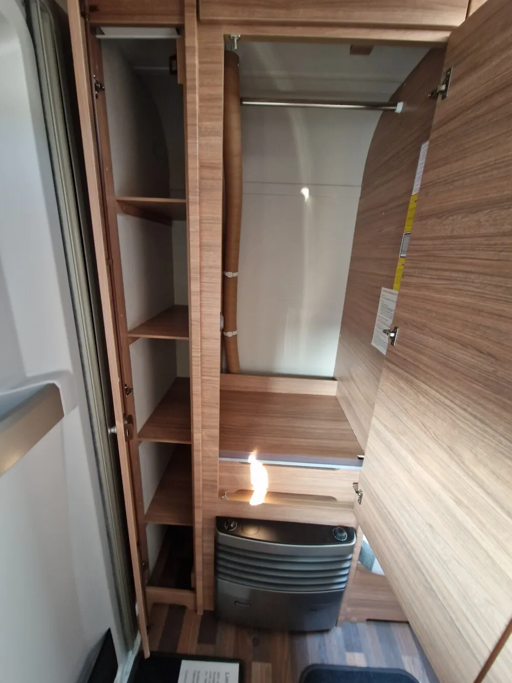 - Advanced-Paket (TRUMA Therme mit Anschluss für Küche und T-Raum (nur 230 V Betrieb), Dachhaube (Hebe-Kipp) 70 x 50 cm, mit Insektenschutz und Verdunklung (Mitte), Abwassertank 25 Liter, rollbar, Duschausbau Waschraum: Brausearmatur mit Halter und Duschvorhang, Insektenschutztür)