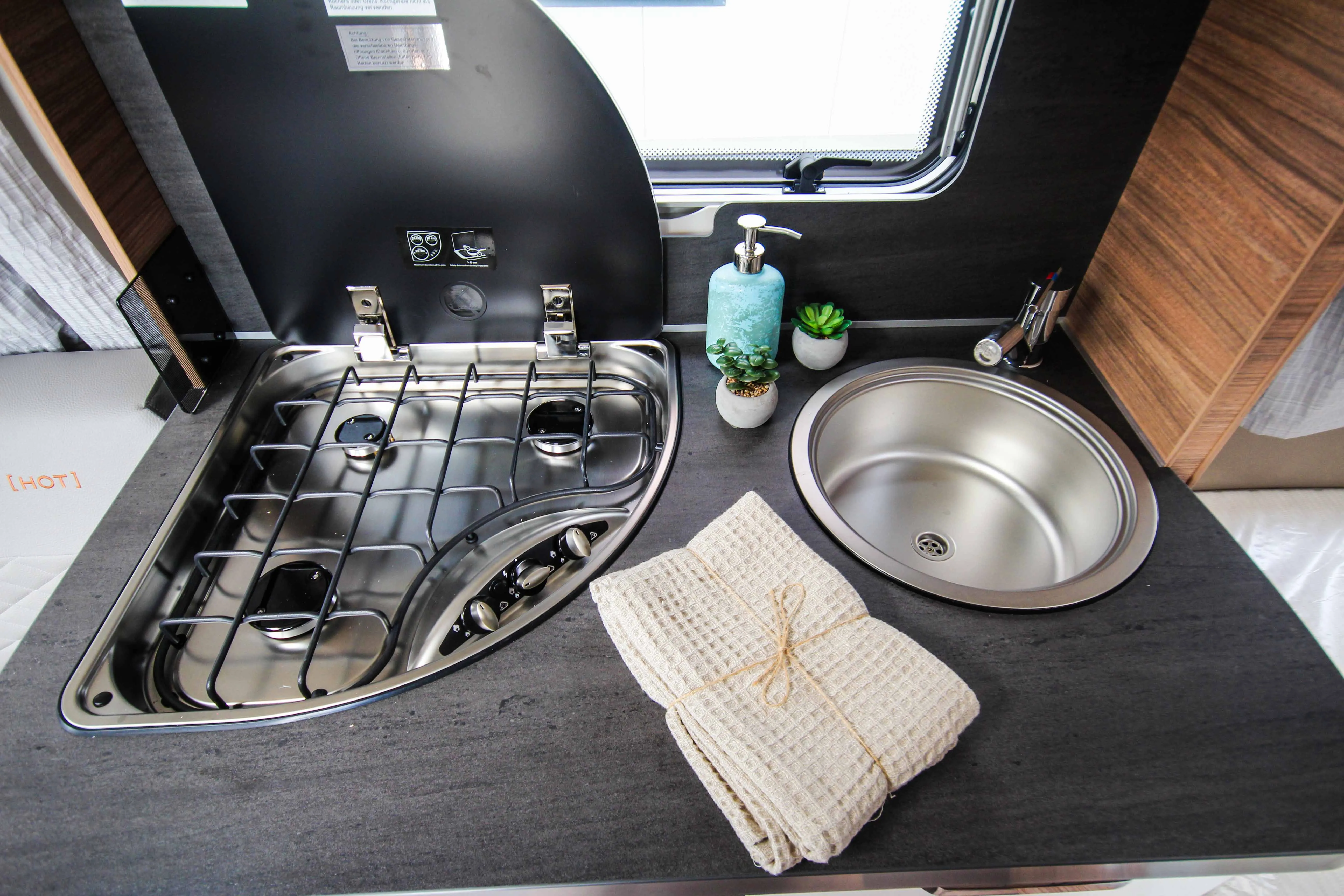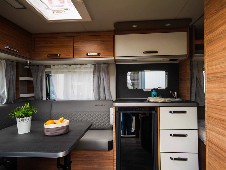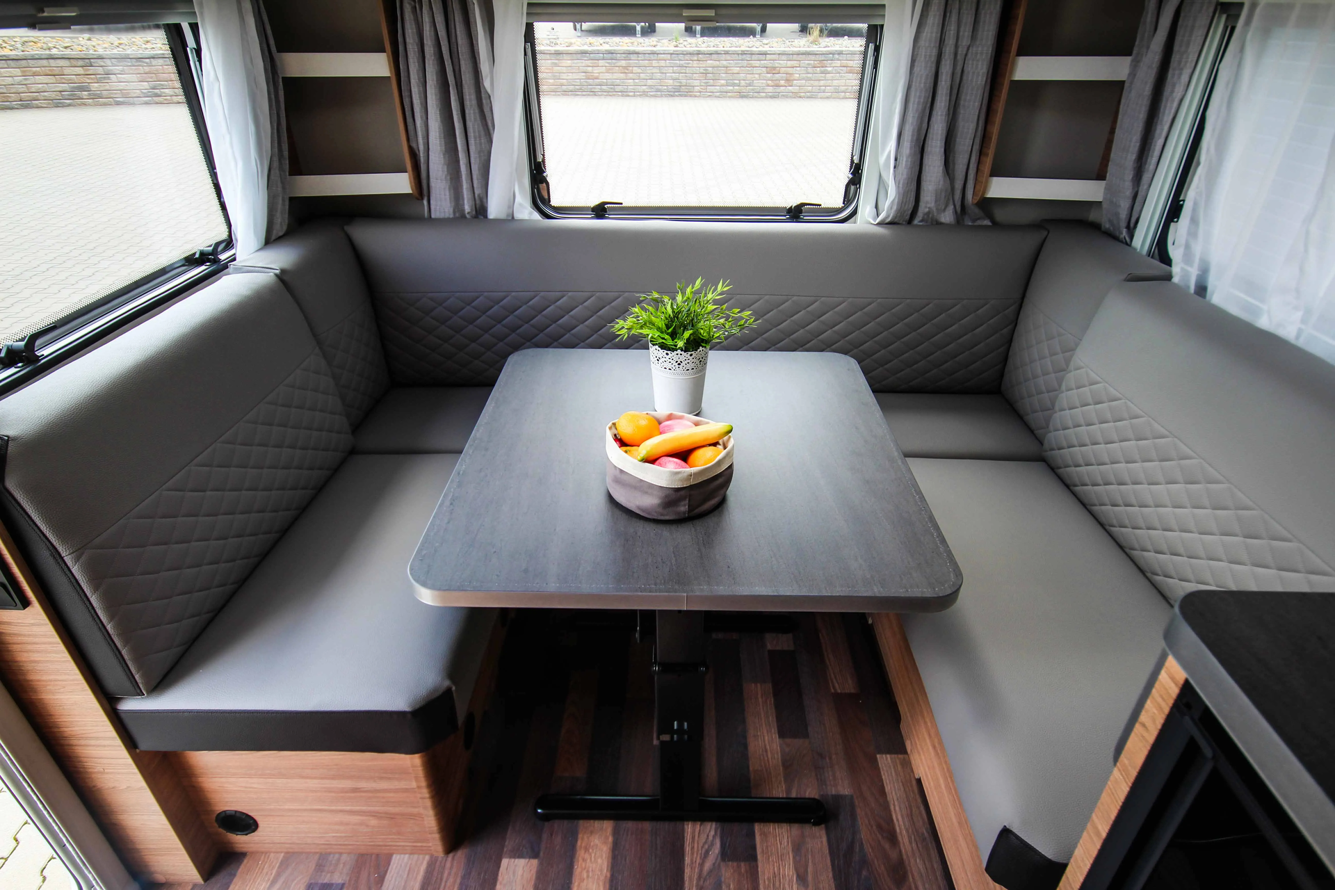 Die zusätzliche Sonderausstattung Auflastung auf 1.500 KG, Steckdosen Plus-Paket (eine zusätzliche 230 V Steckdose im Küchenbereich und jeweils eine zusätzliche USB-Steckdose im Schlaf- und Sitzgruppenbereich), Deckenschrank statt Ablagen Heck links/rechts, Combi-Außensteckdose (Strom+TV), aufklappbare Arbeitsplattenverlängerung an der Küche sowie die