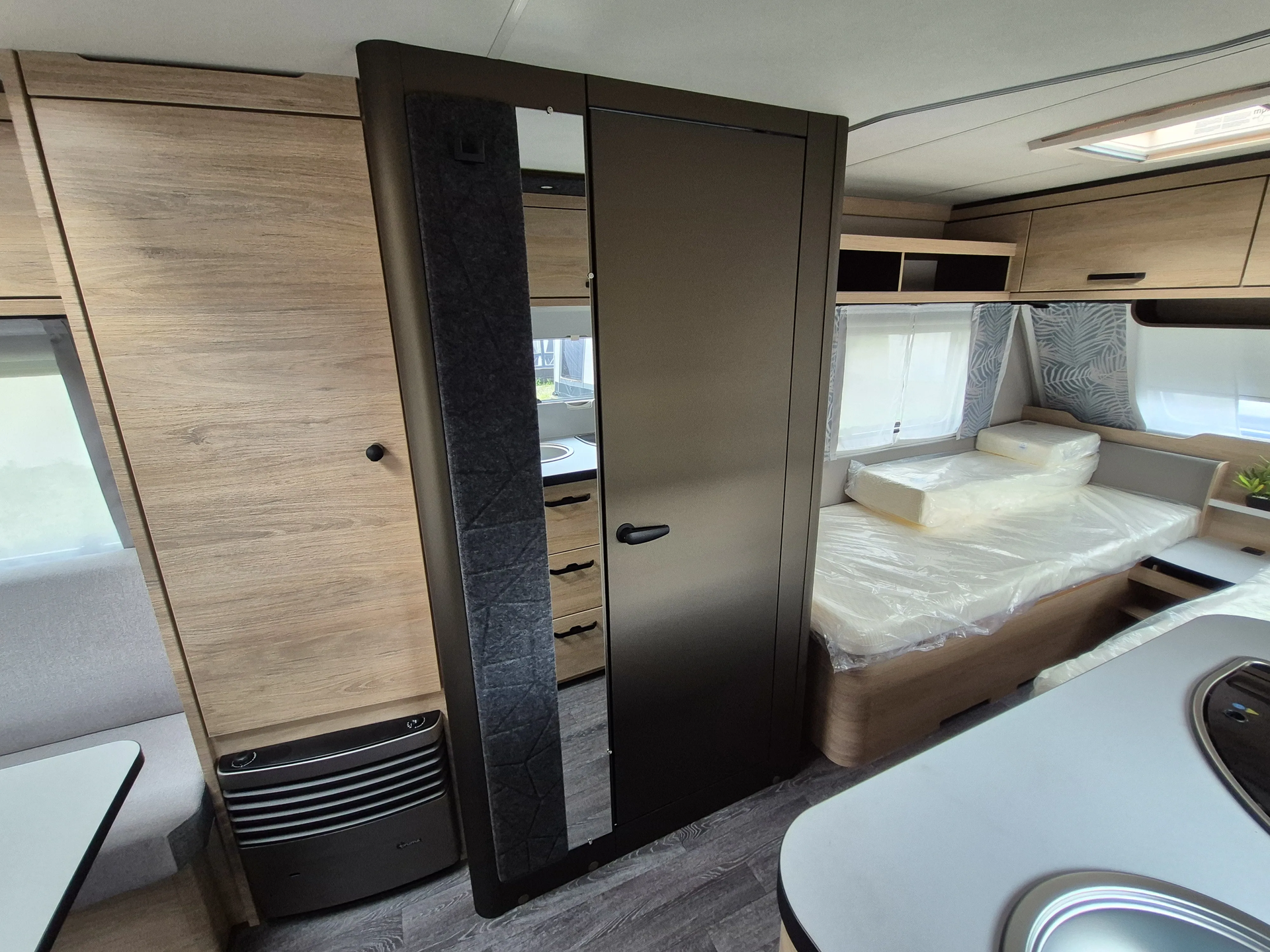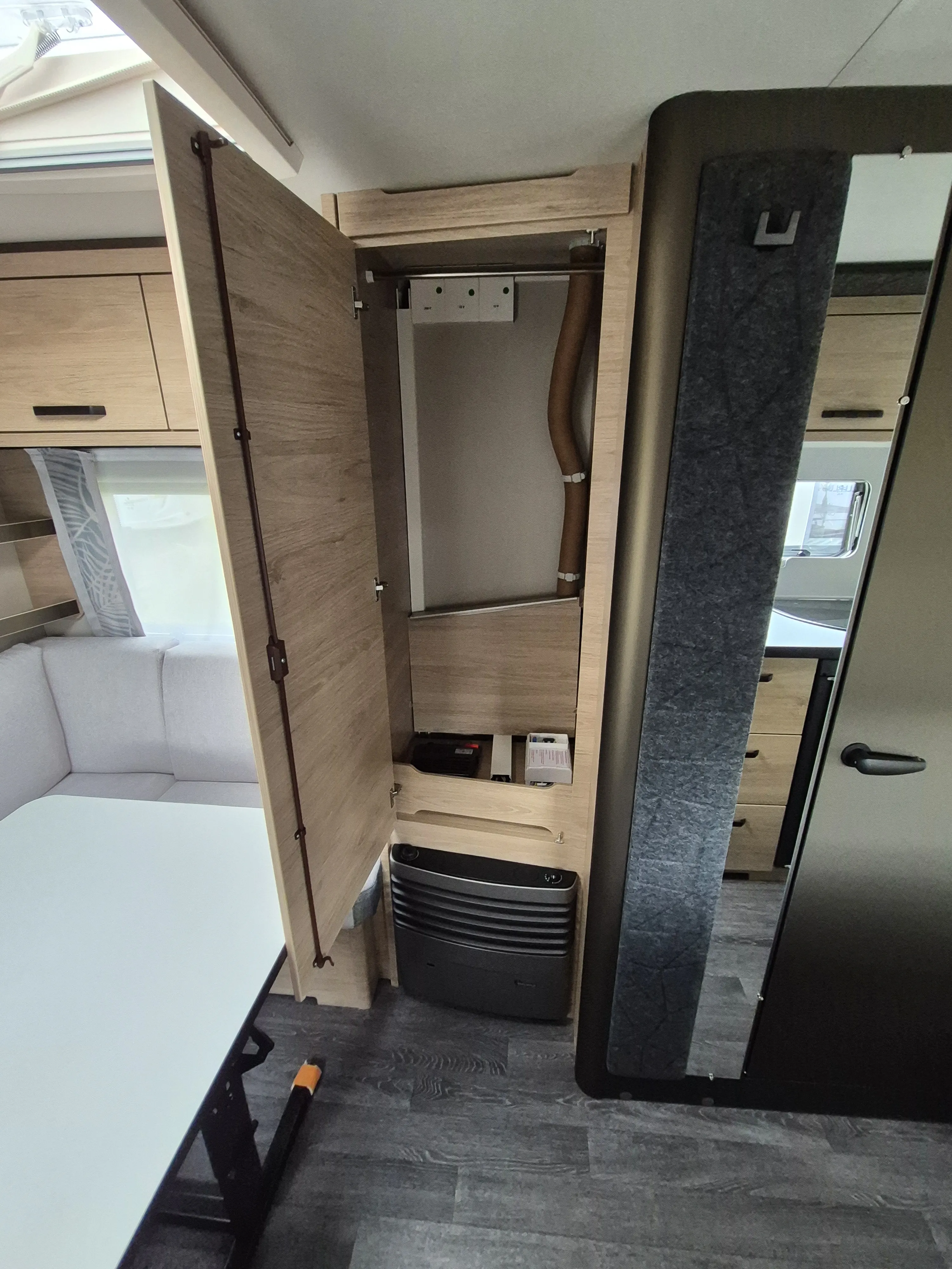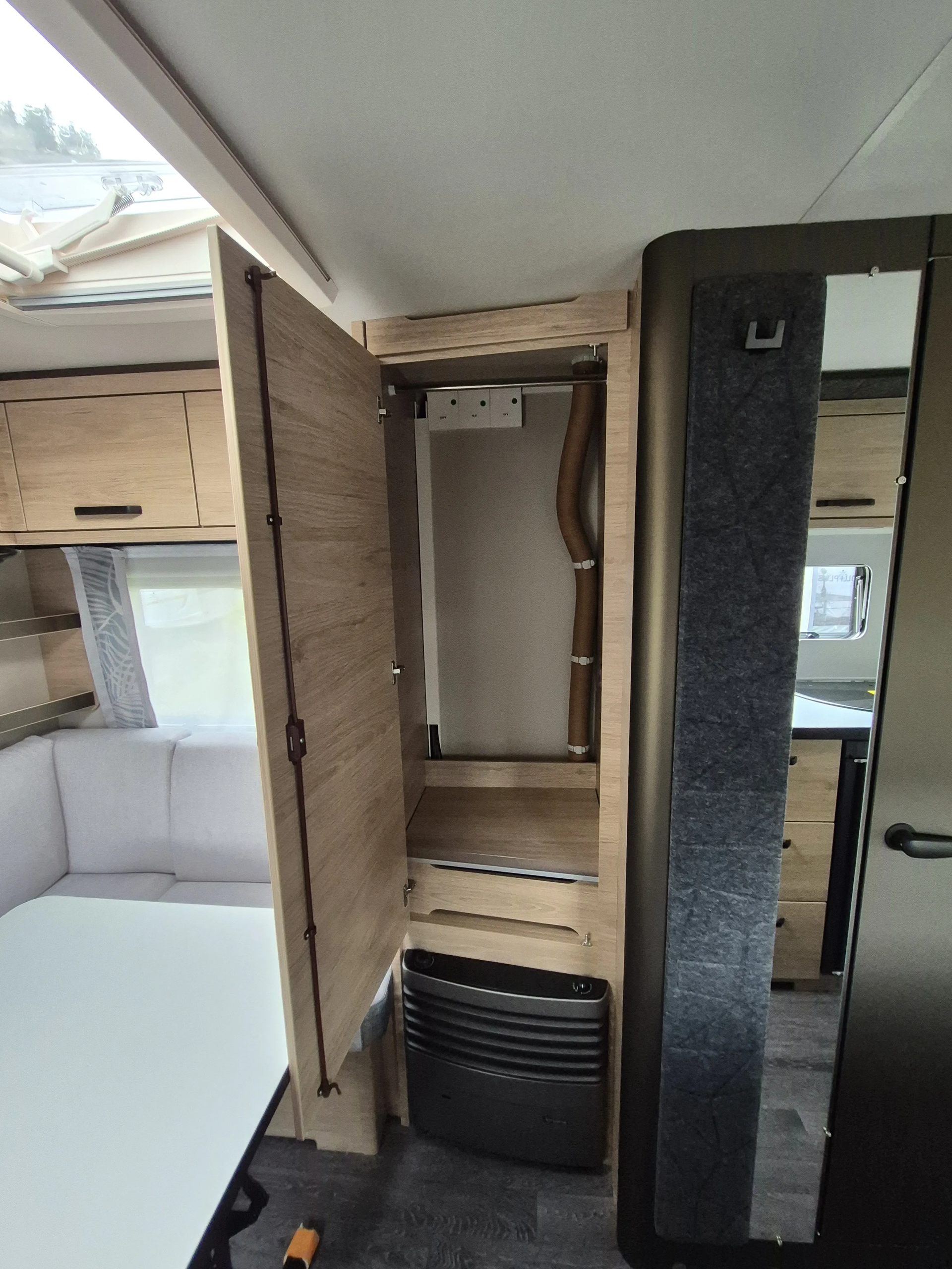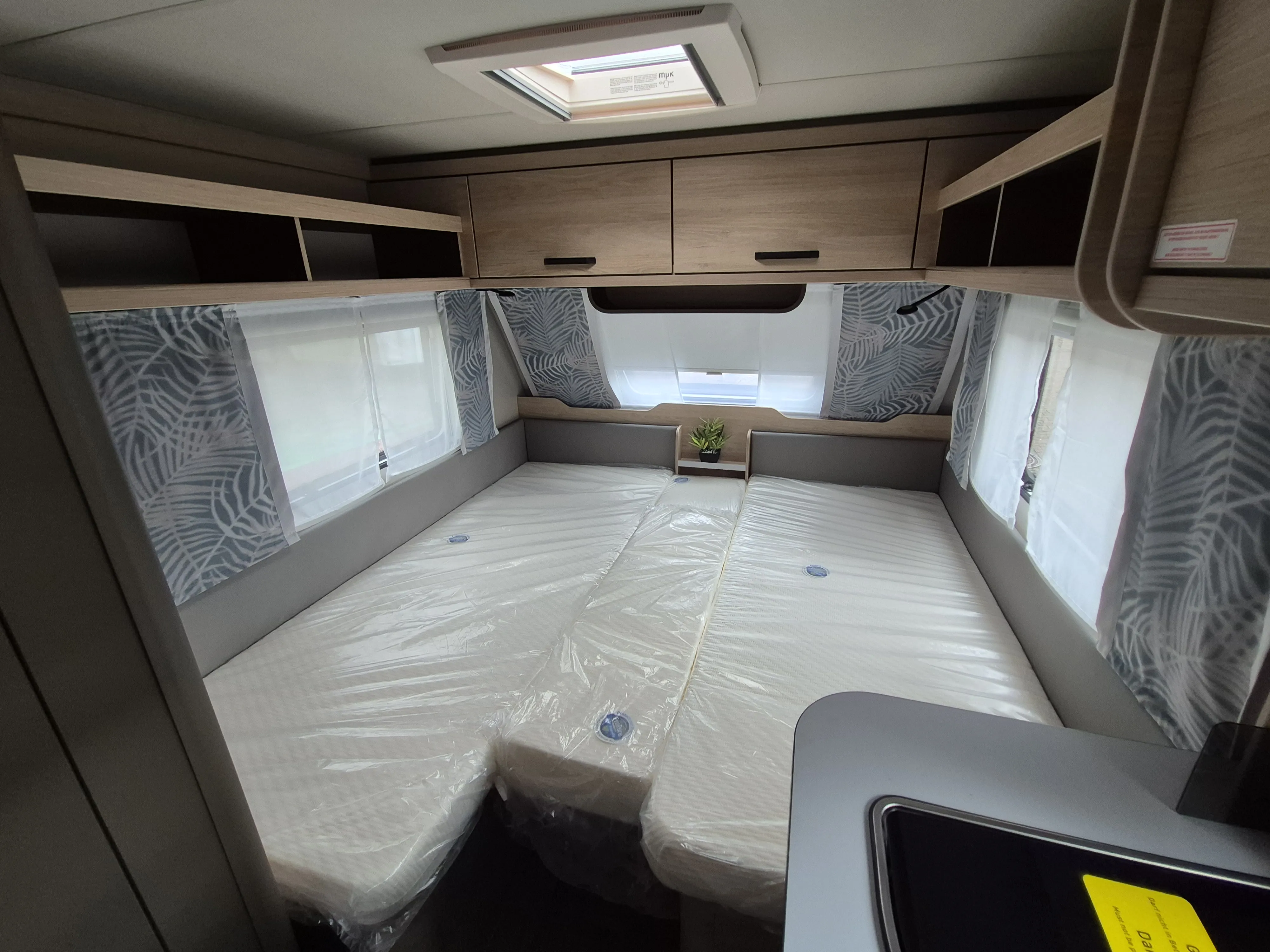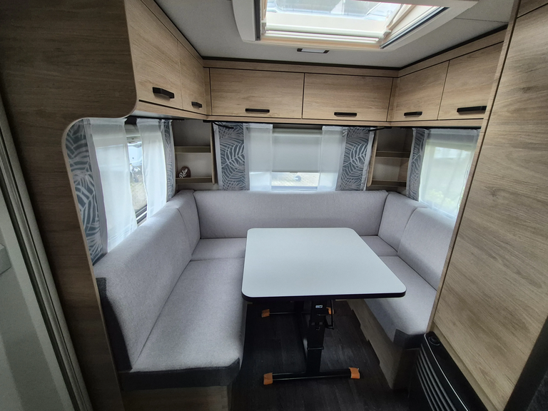 - Smart-Paket ( Kombi-Rollos an den Fenstern, inkl. Verdunklung und Insektenschutz, Stabilisator-Sicherheits-Kupplung, Frischwassertank 45 Liter, Festeinbau, Umluftanlage 12 V)
