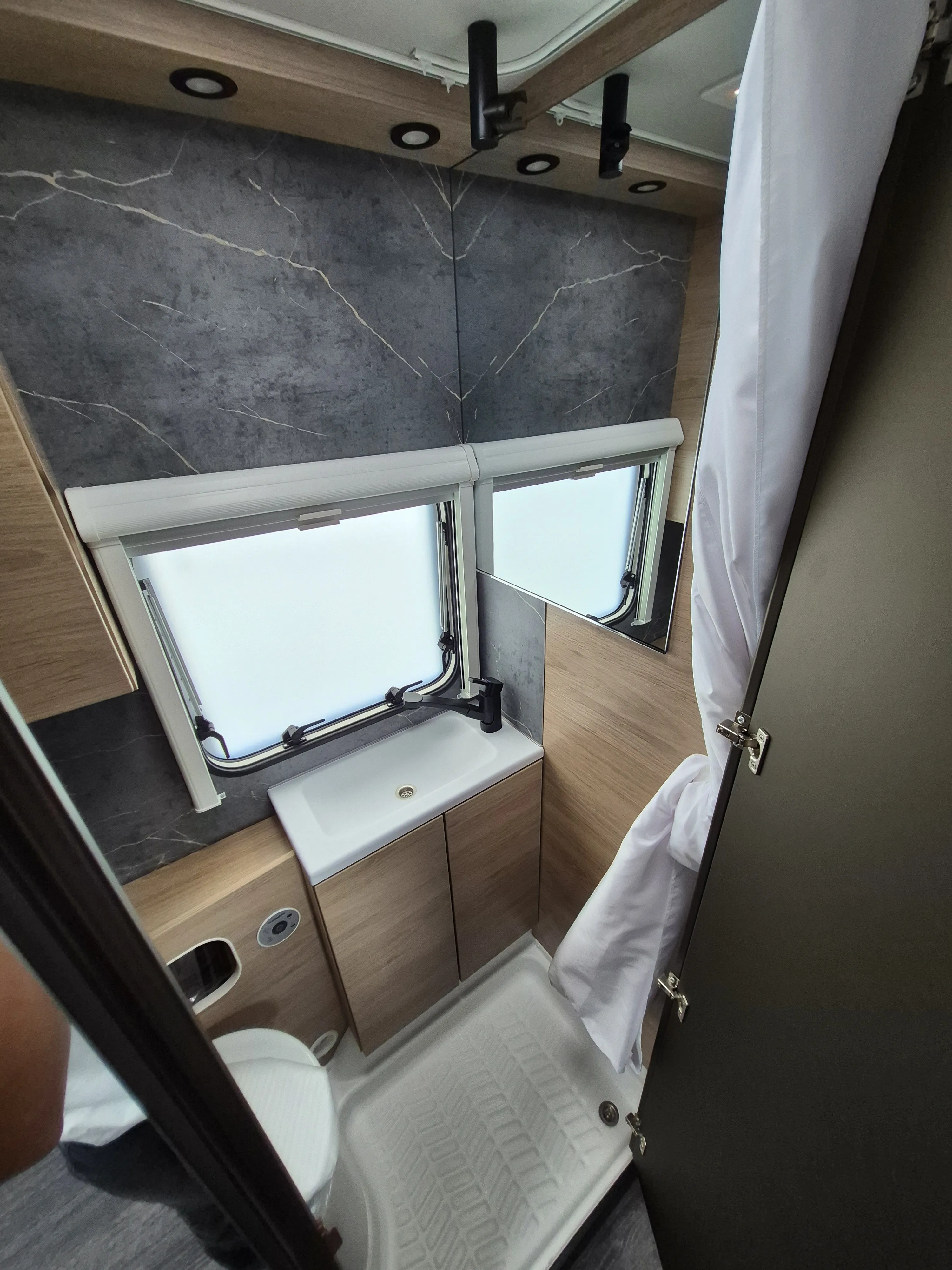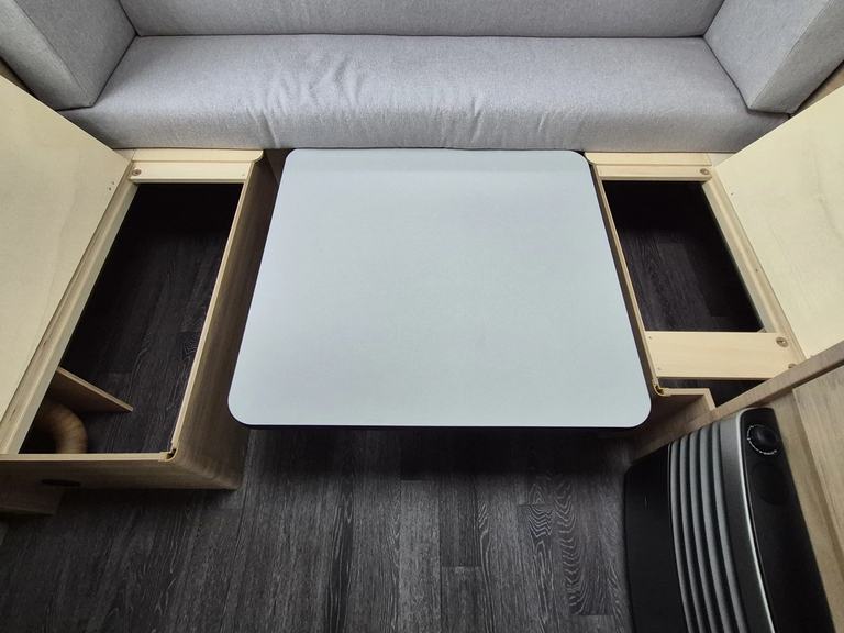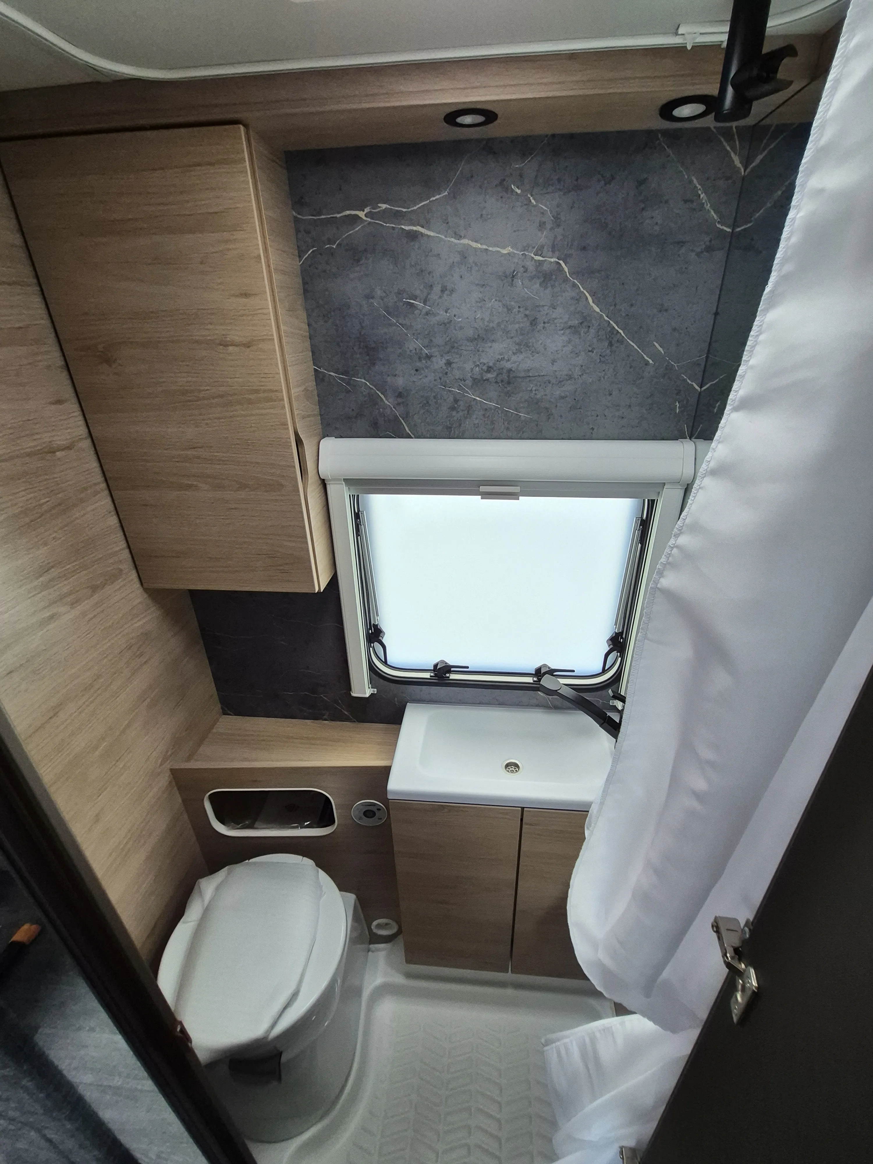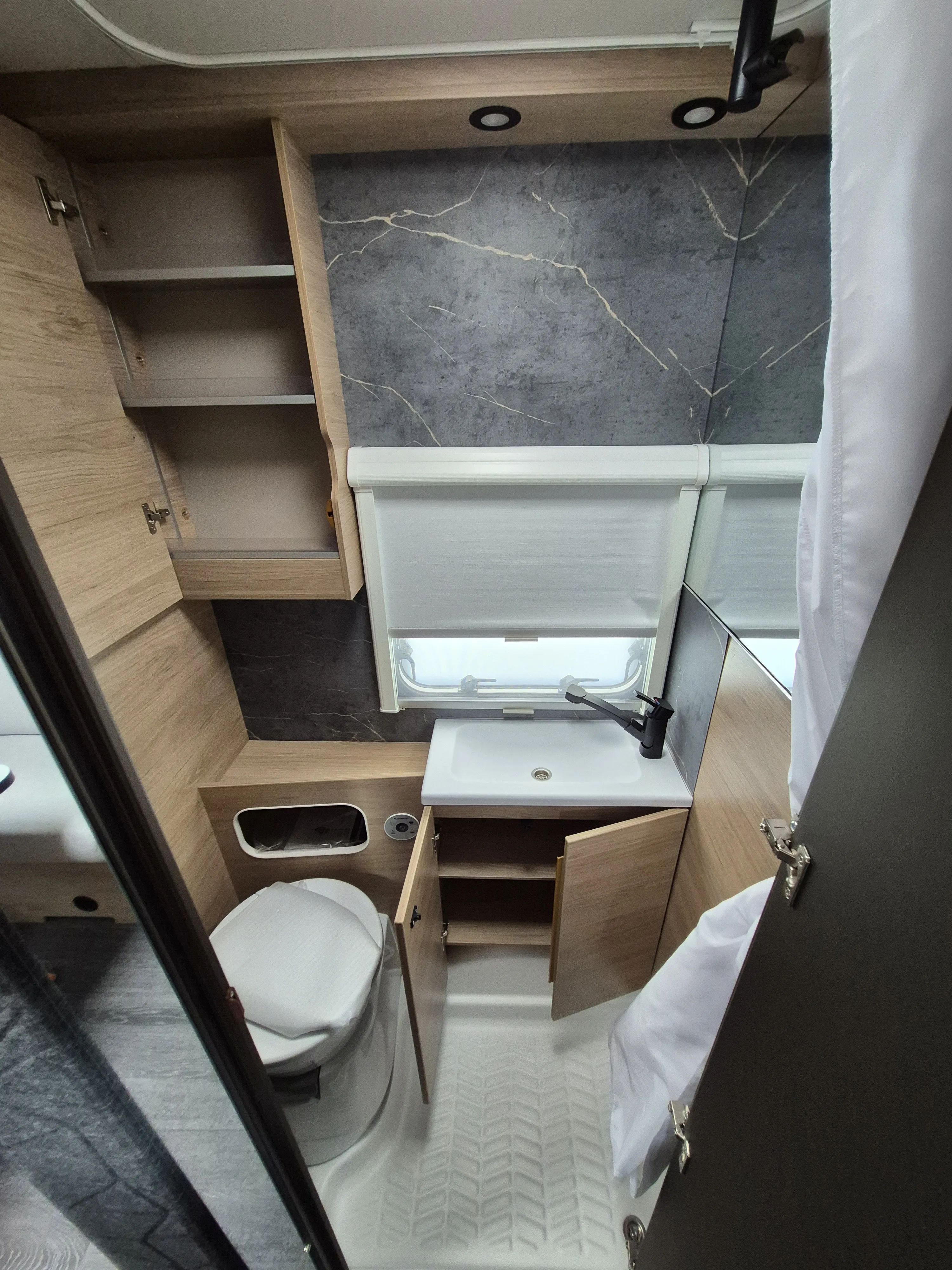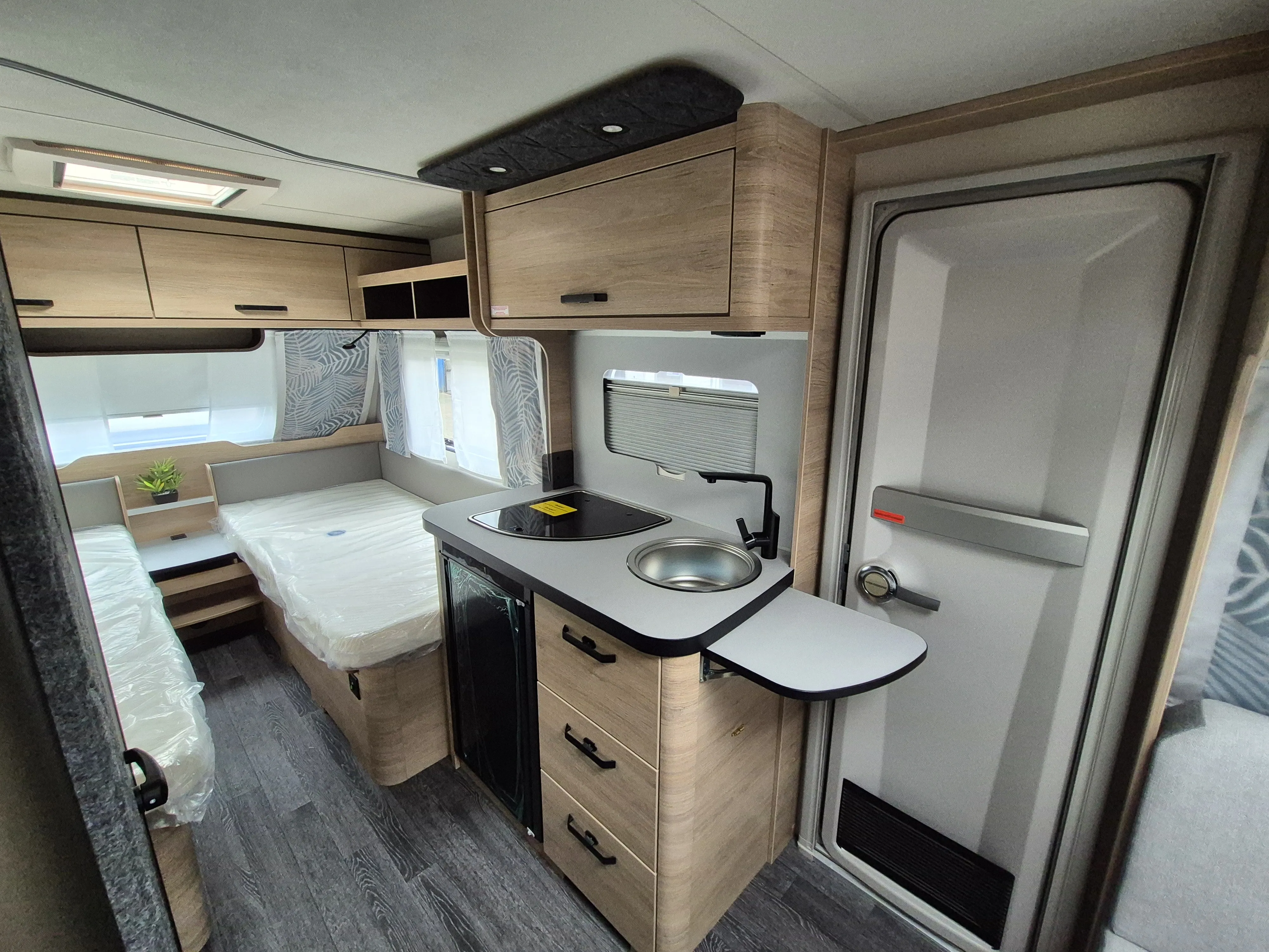 - Smart-Paket ( Kombi-Rollos an den Fenstern, inkl. Verdunklung und Insektenschutz, Stabilisator-Sicherheits-Kupplung, Frischwassertank 45 Liter, Festeinbau, Umluftanlage 12 V)