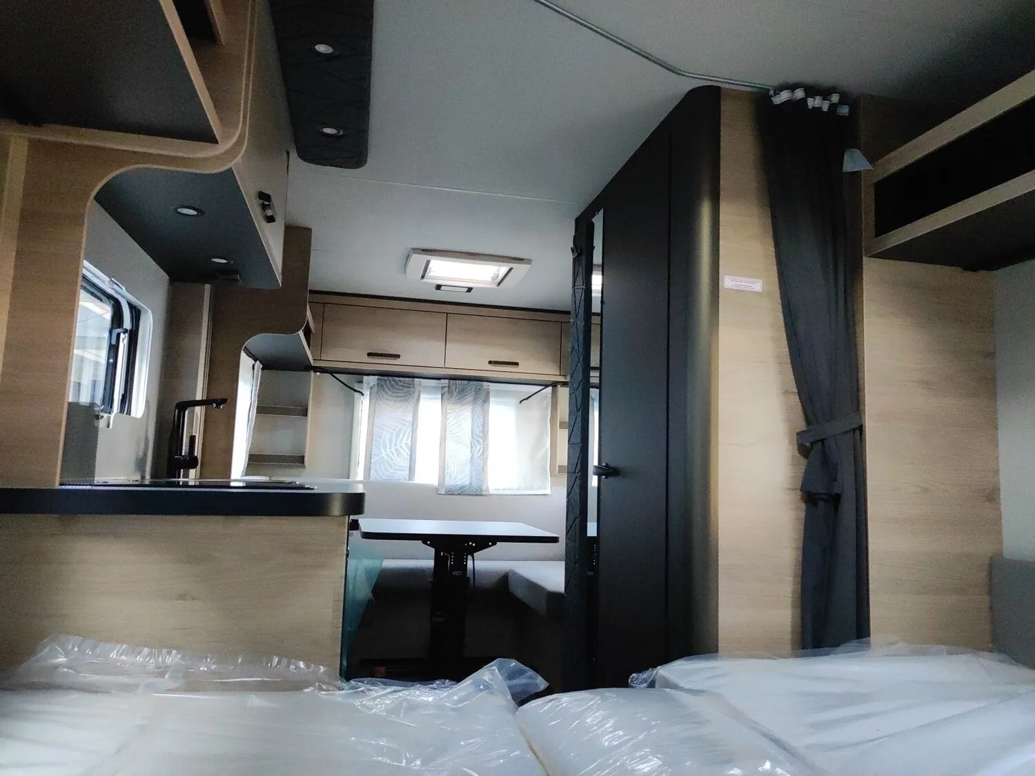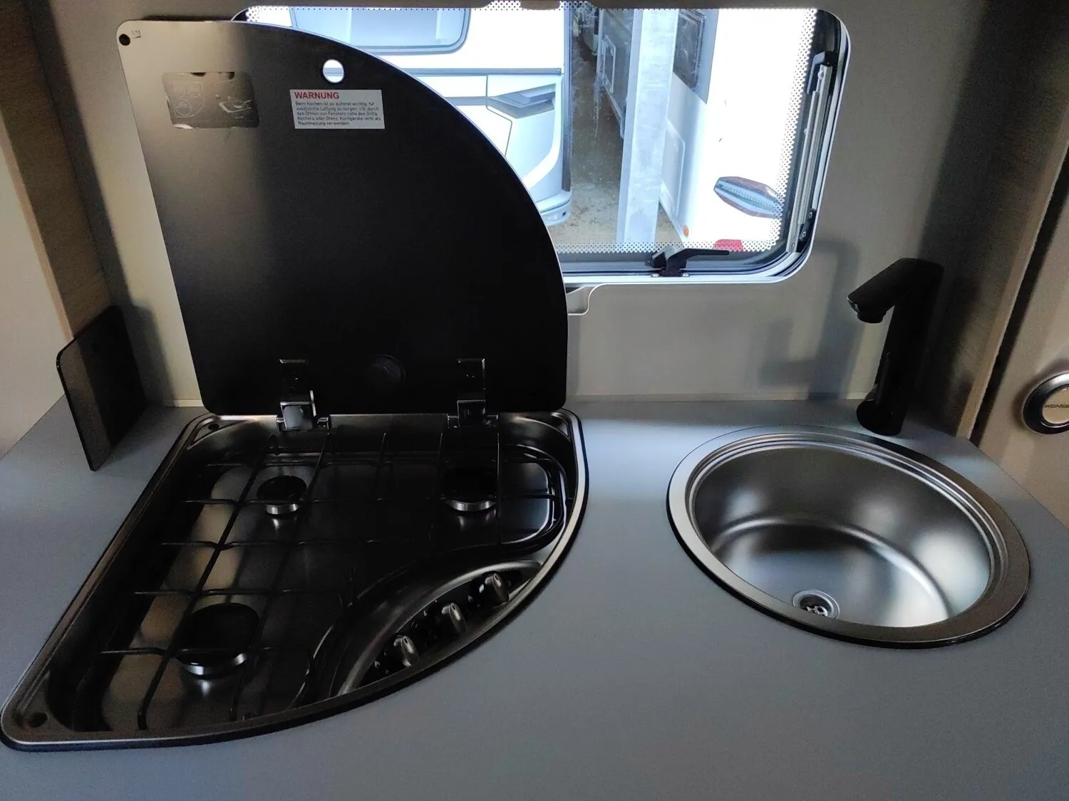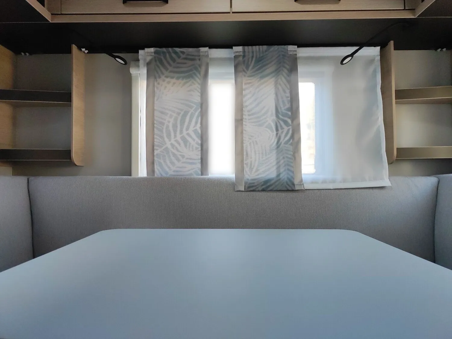 - Smart-Paket (Frischwassertank 45 Liter, Festeinbau, Stabilisator-Sicherheits-Kupplung, Umluftanlage 12 V, Kombi-Rollos an den Fenstern, inkl. Verdunklung und Insektenschutz)