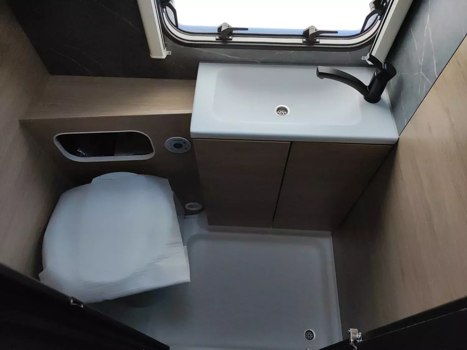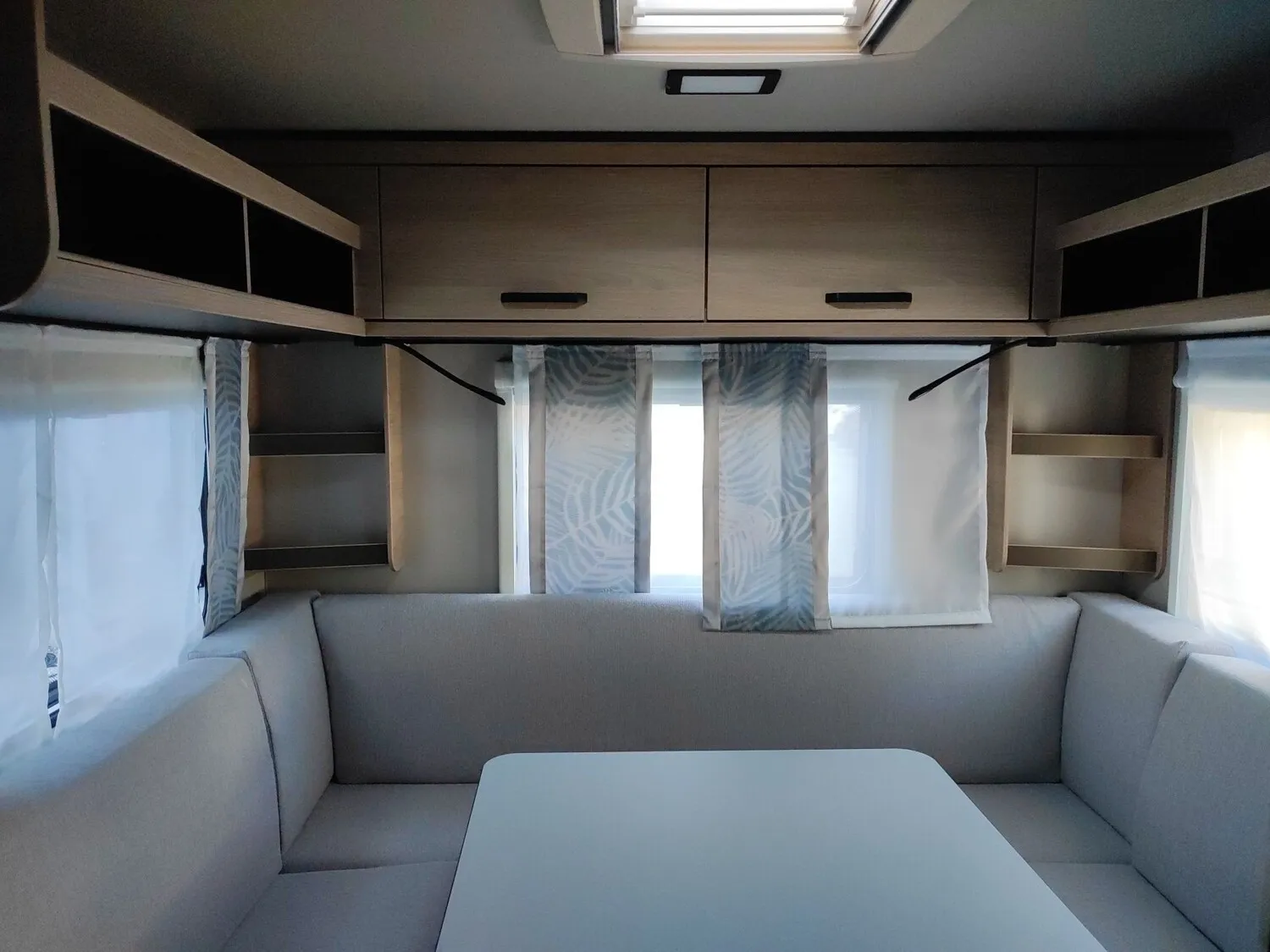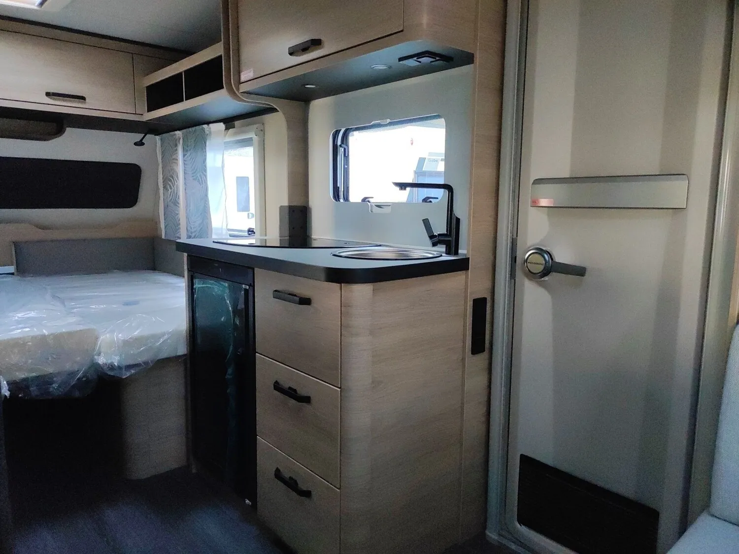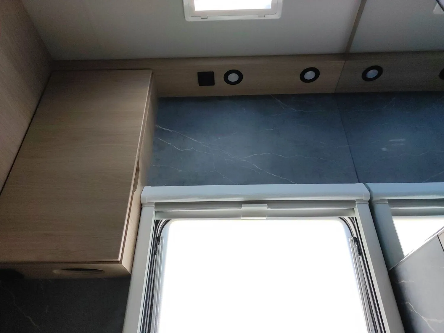 - Smart-Paket (Frischwassertank 45 Liter, Festeinbau, Stabilisator-Sicherheits-Kupplung, Umluftanlage 12 V, Kombi-Rollos an den Fenstern, inkl. Verdunklung und Insektenschutz)