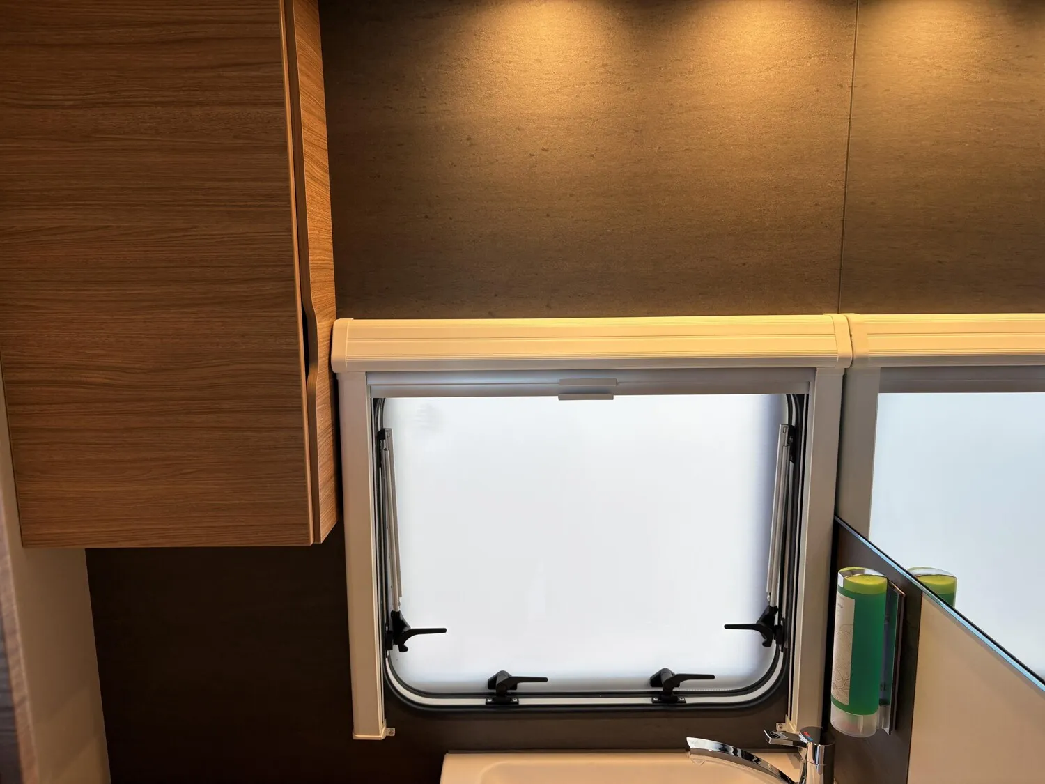 - Ausstellfenster 52 x 50 cm, mit Insektenschutz und Verdunklung (Toilettenraum)