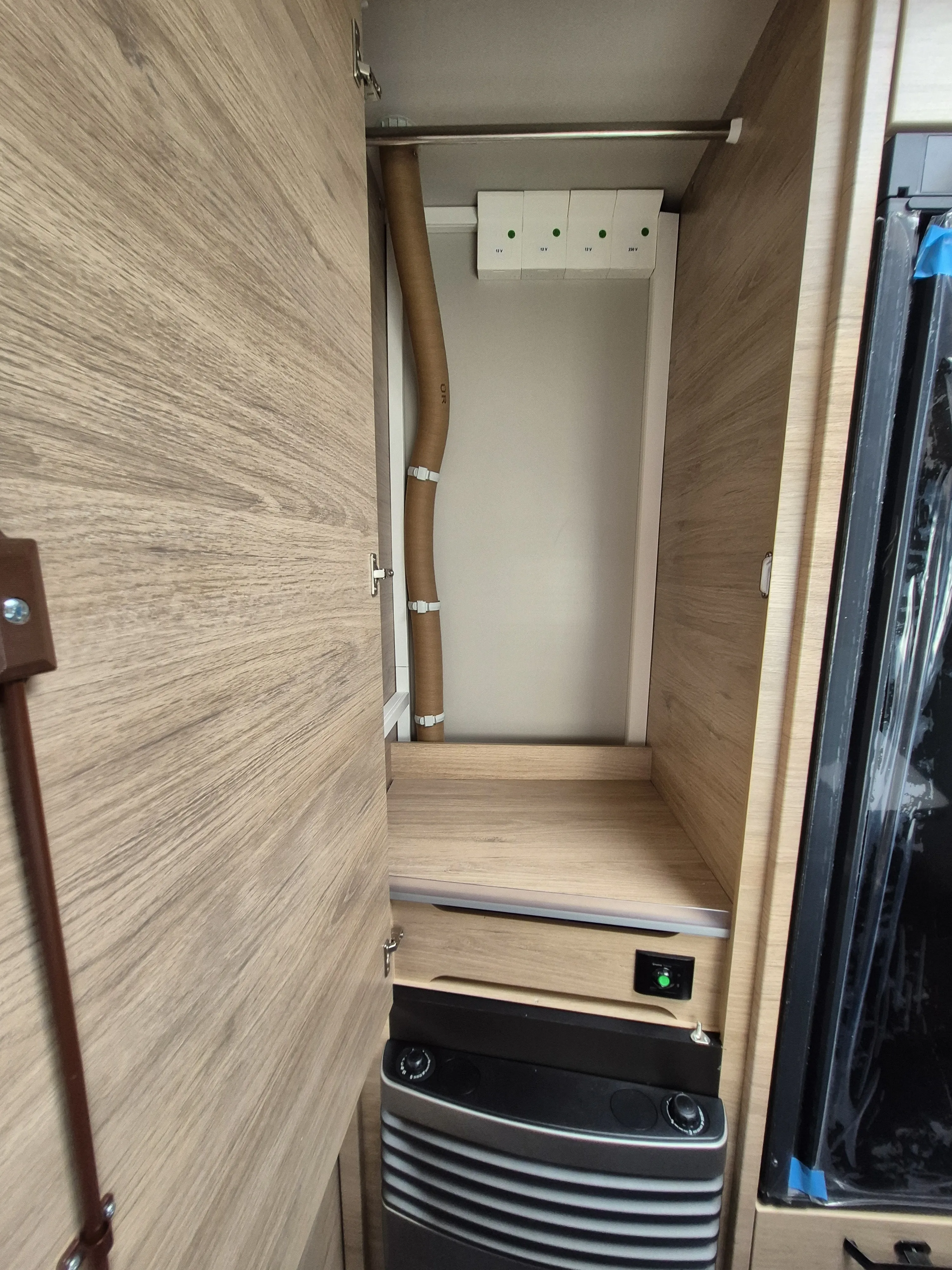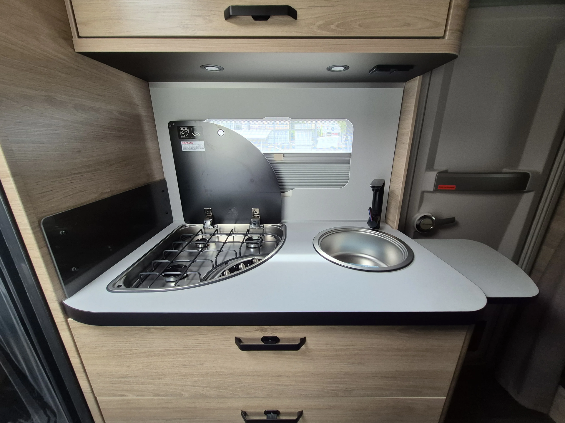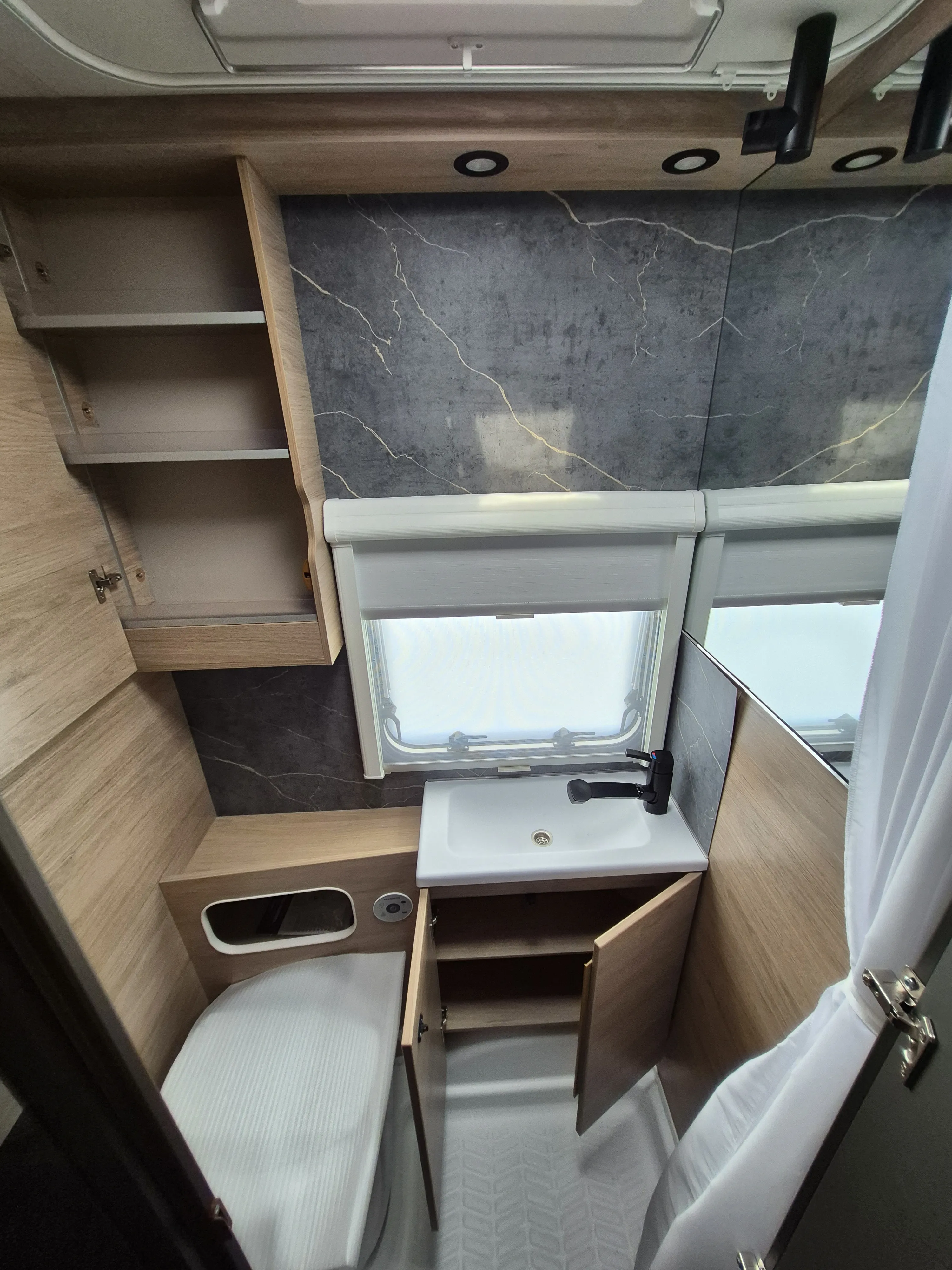 - Smart-Paket: Kombi-Rollos an den Fenstern, inkl. Verdunklung und Insektenschutz, Stabilisator-Sicherheits-Kupplung, Frischwassertank 45 Liter (Festeinbau), Umluftanlage 12 V