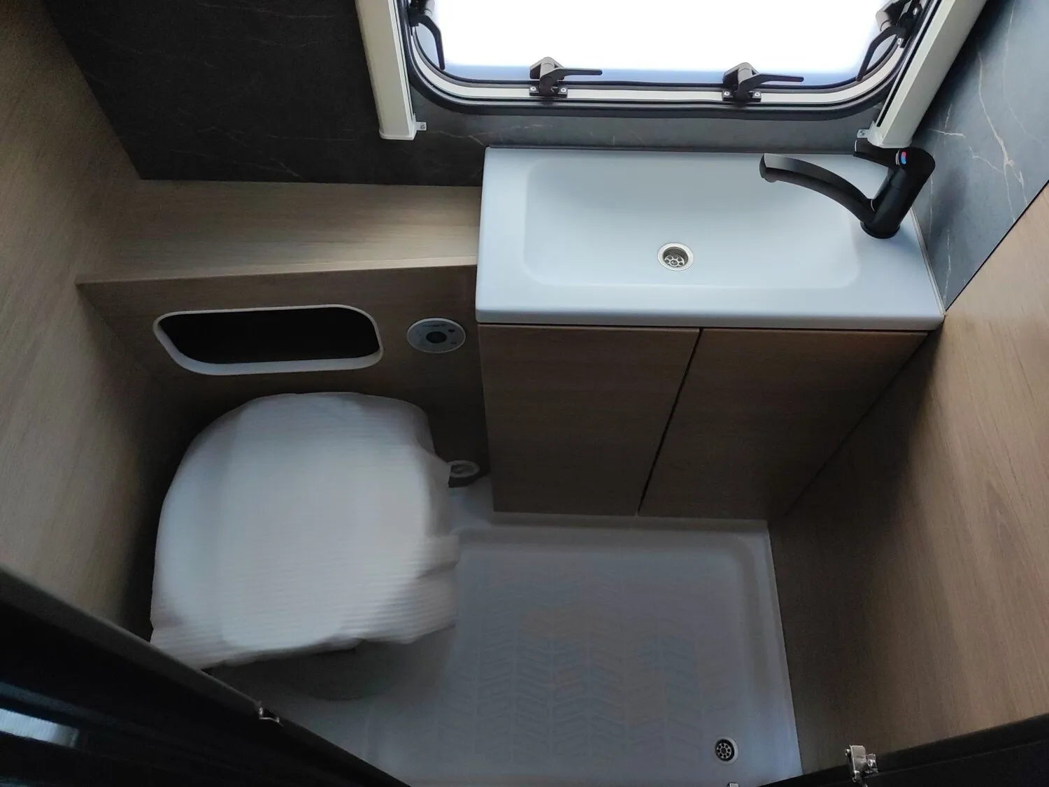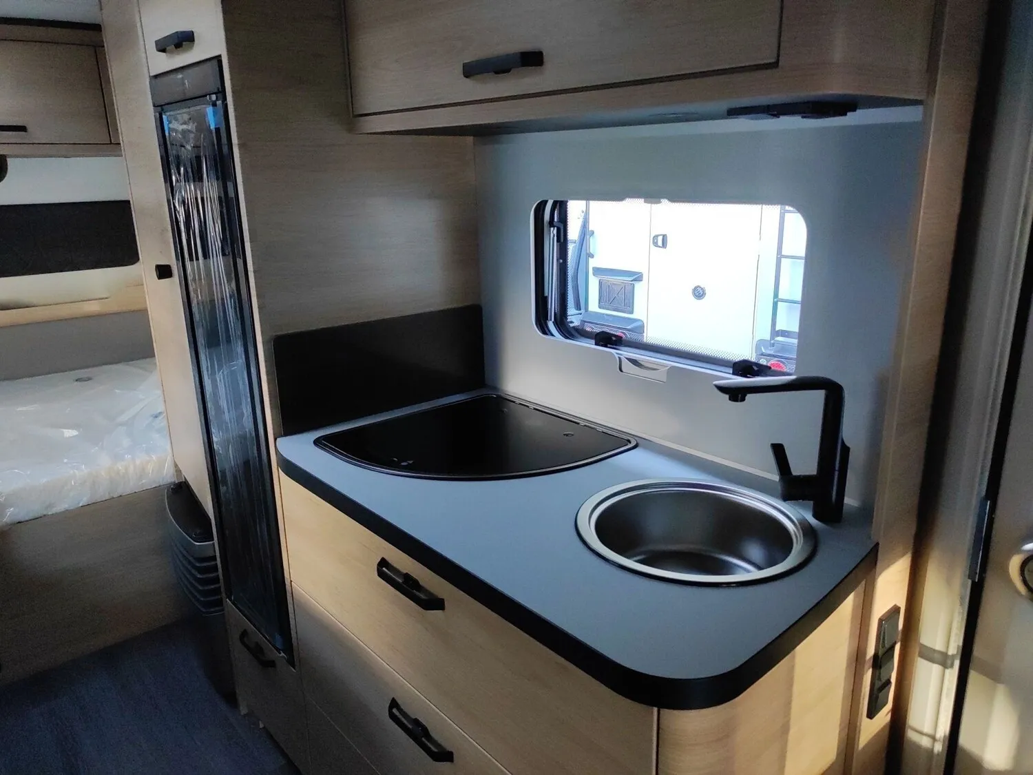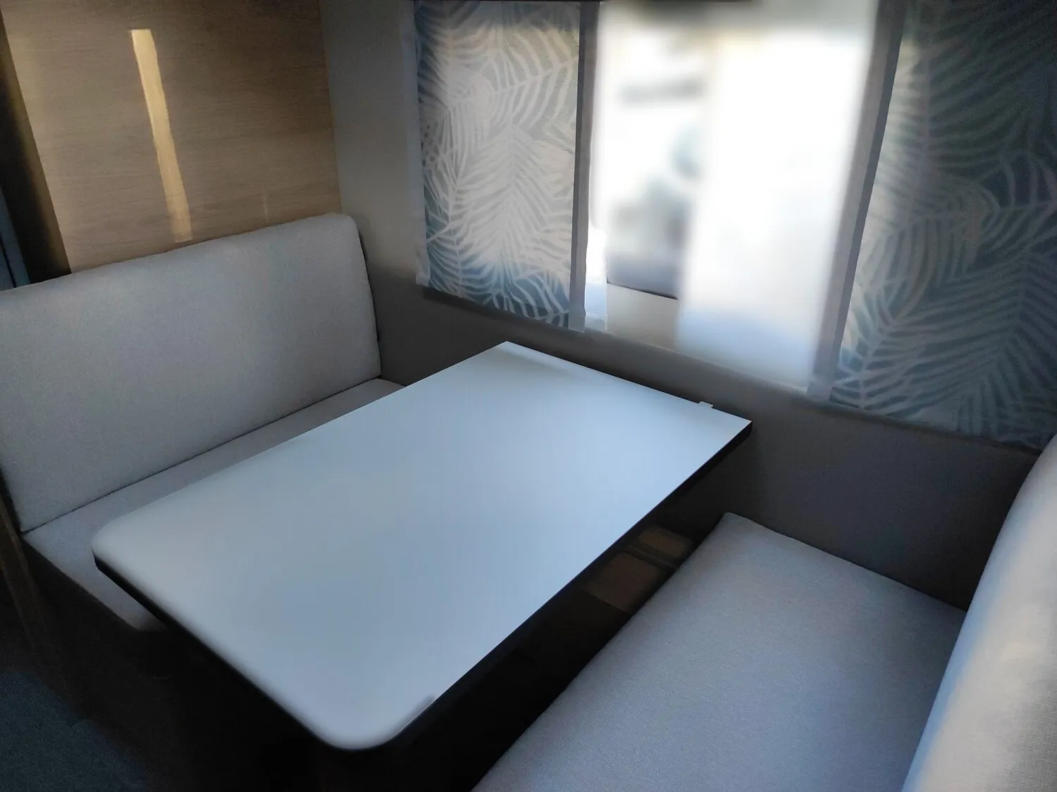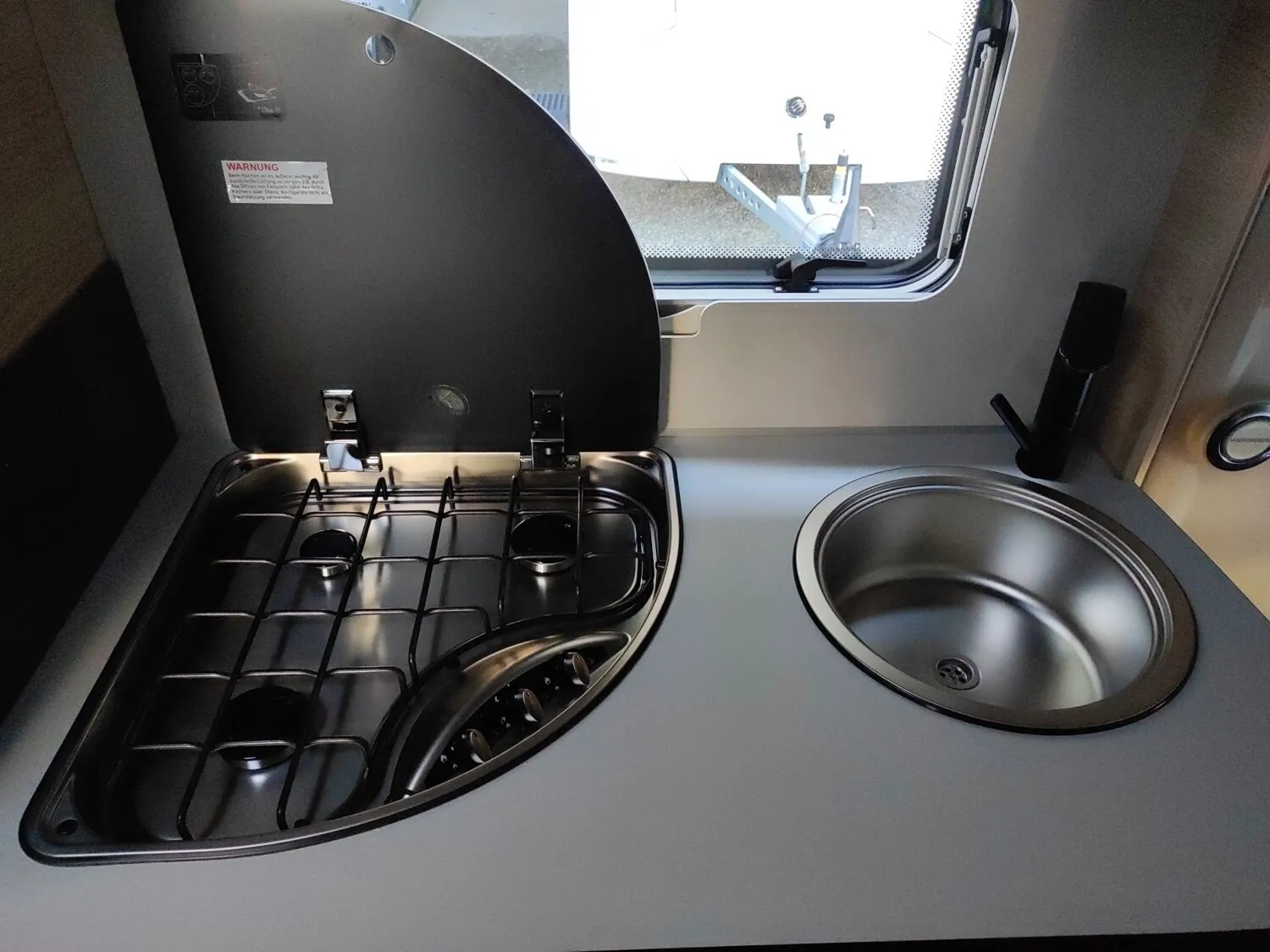 - Smart-Paket (Frischwassertank 45 Liter, Festeinbau, Stabilisator-Sicherheits-Kupplung, Umluftanlage 12 V, Kombi-Rollos an den Fenstern, inkl. Verdunklung und Insektenschutz)