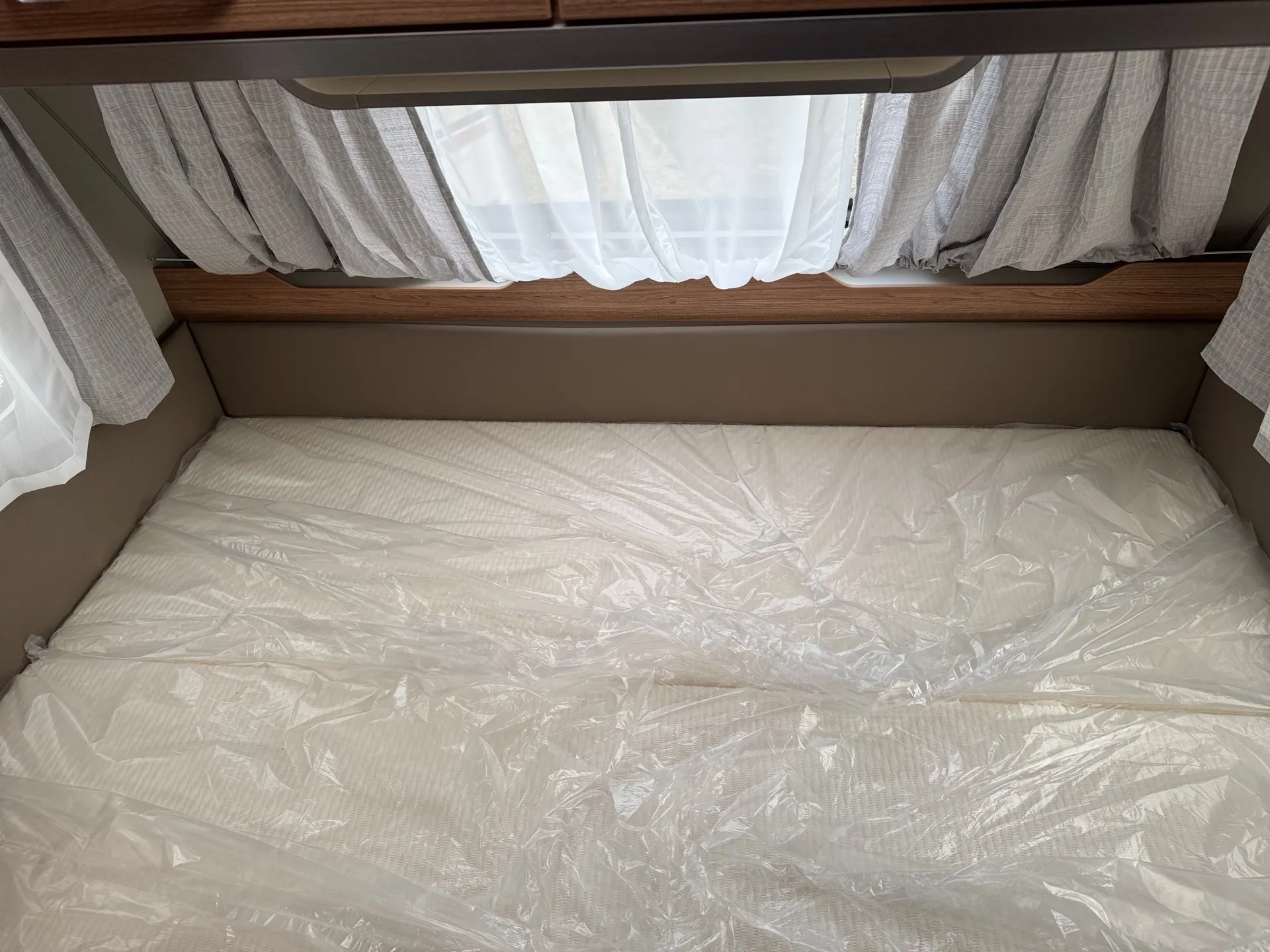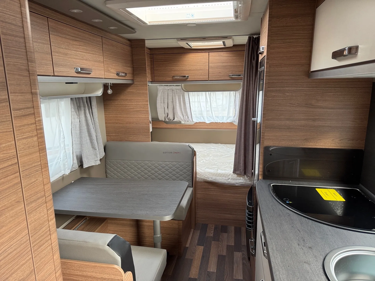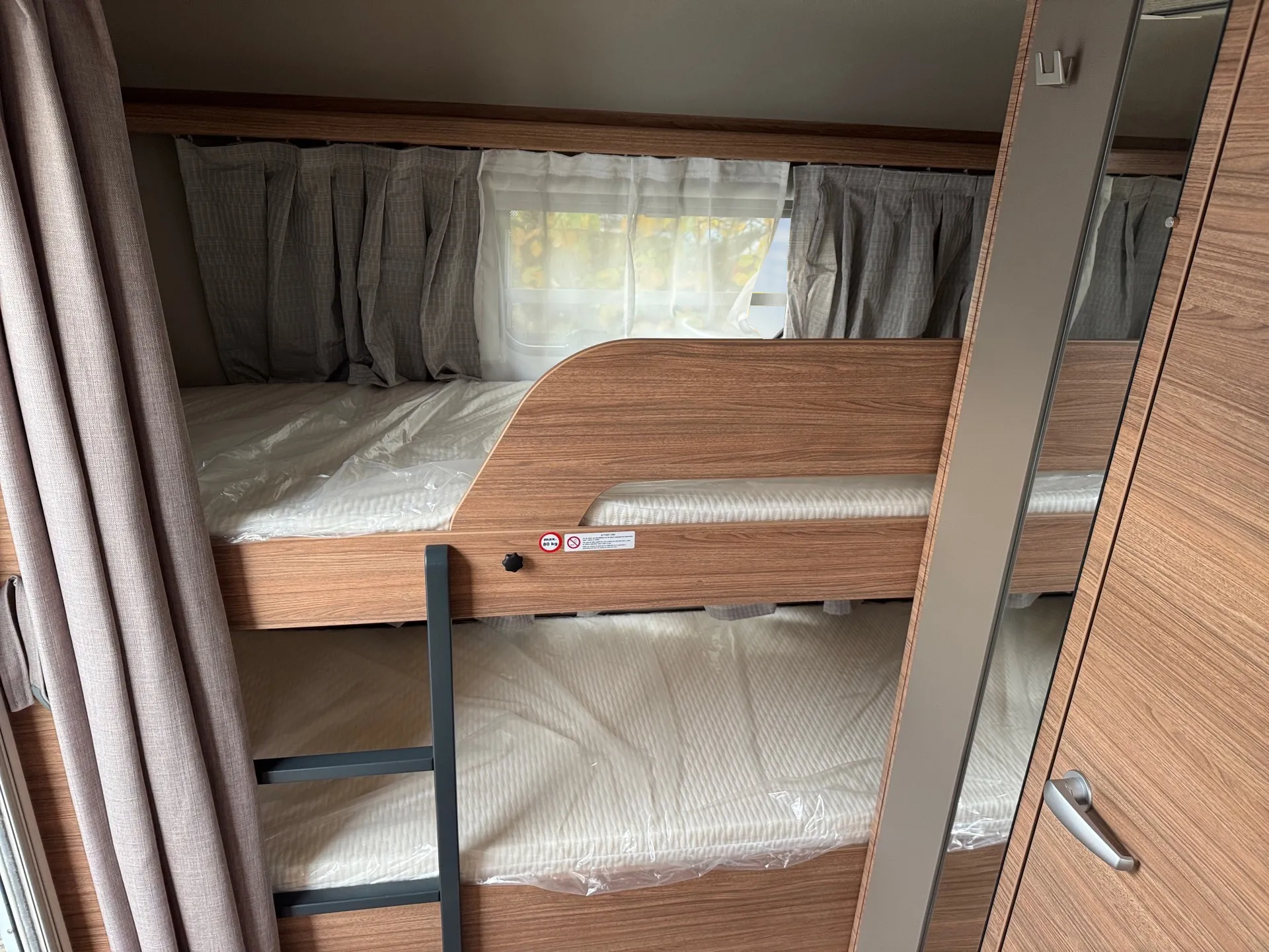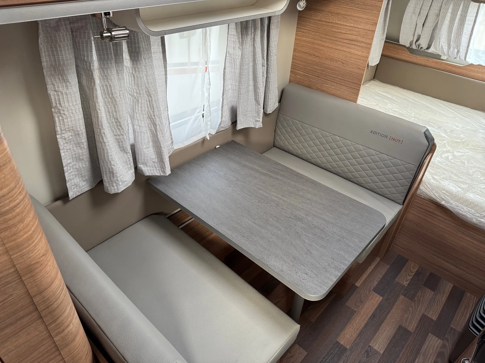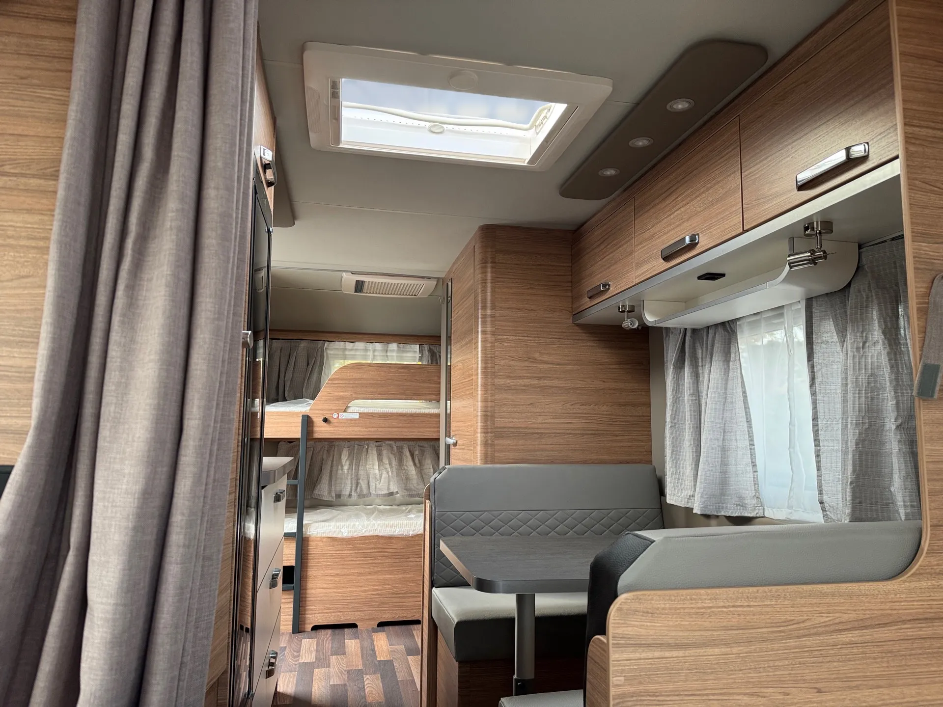 Schlafplätze: bis zu 6 (Doppelbett vorne, Etagenbett hinten, Sitzgruppe umbaubar)