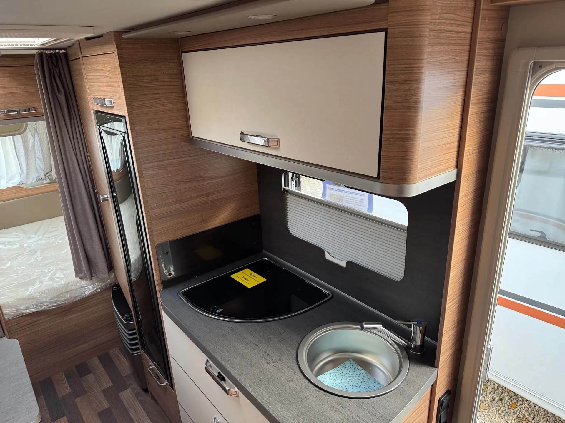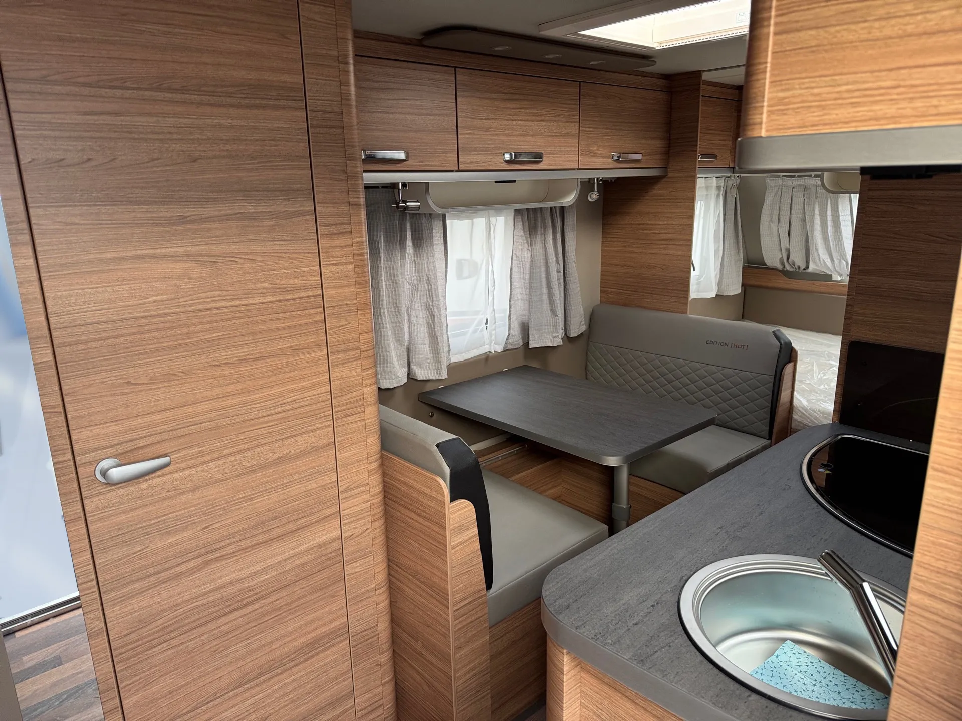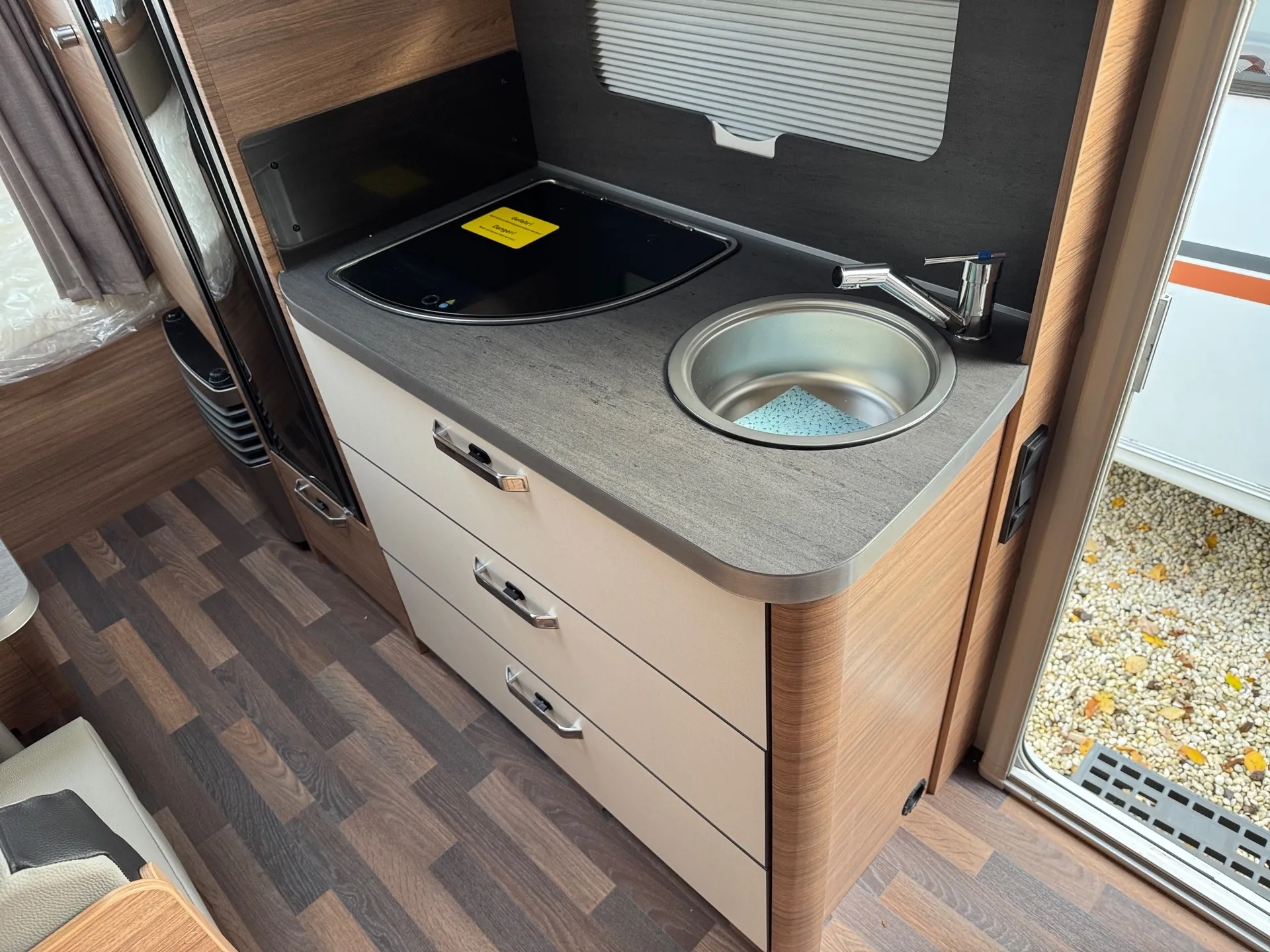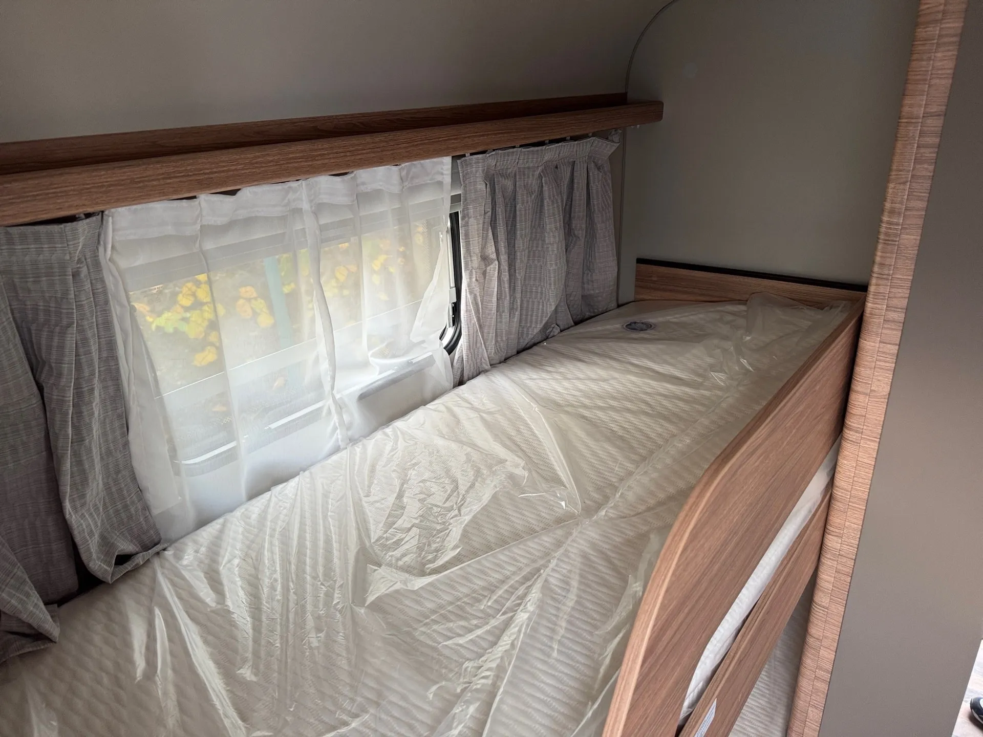 Schlafplätze: bis zu 6 (Doppelbett vorne, Etagenbett hinten, Sitzgruppe umbaubar)