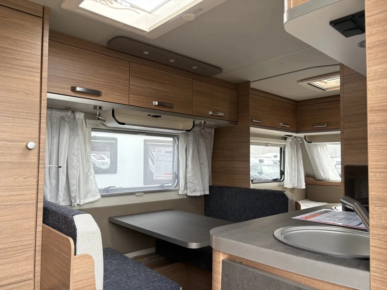 - Smart-Paket (Seifen- und Spülmittelspender, Wasserfiltersystem "bluuwater", Frischwassertank 45 Liter, Festeinbau, MediKit Gutschein, Schwerlastkurbelstützen, Stabilisator-Sicherheits-Kupplung, Umluftanlage 12 V, Kombi-Rollos an den Fenstern, inkl. Verdunklung und Insektenschutz)