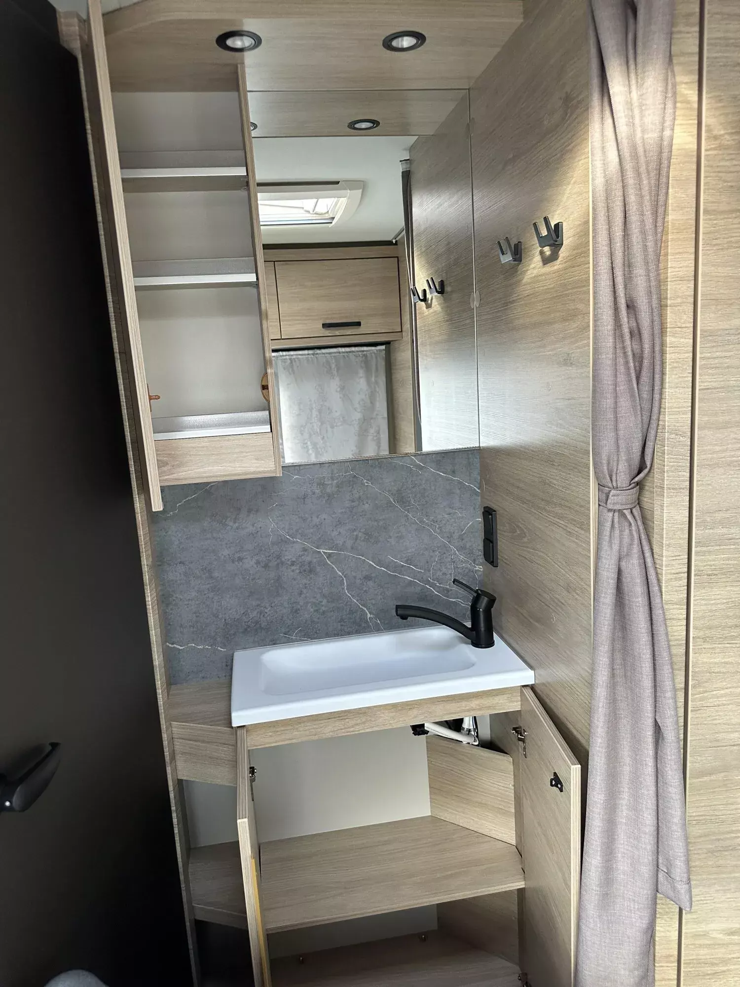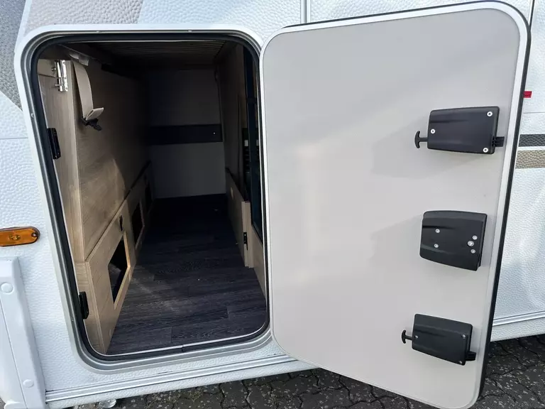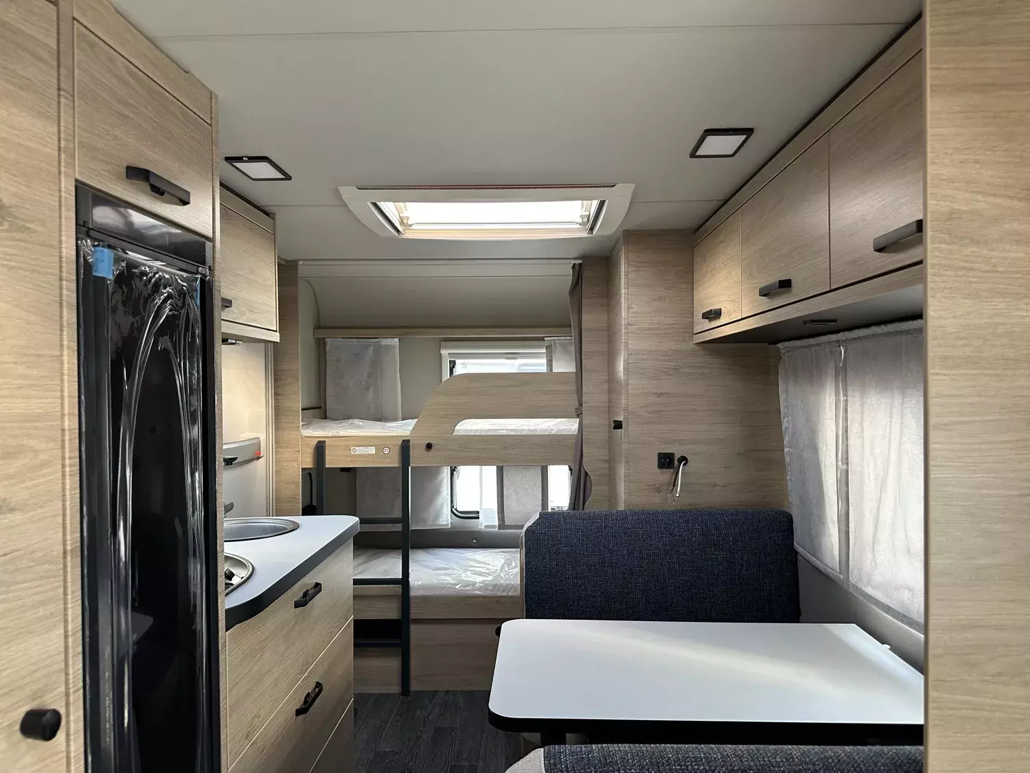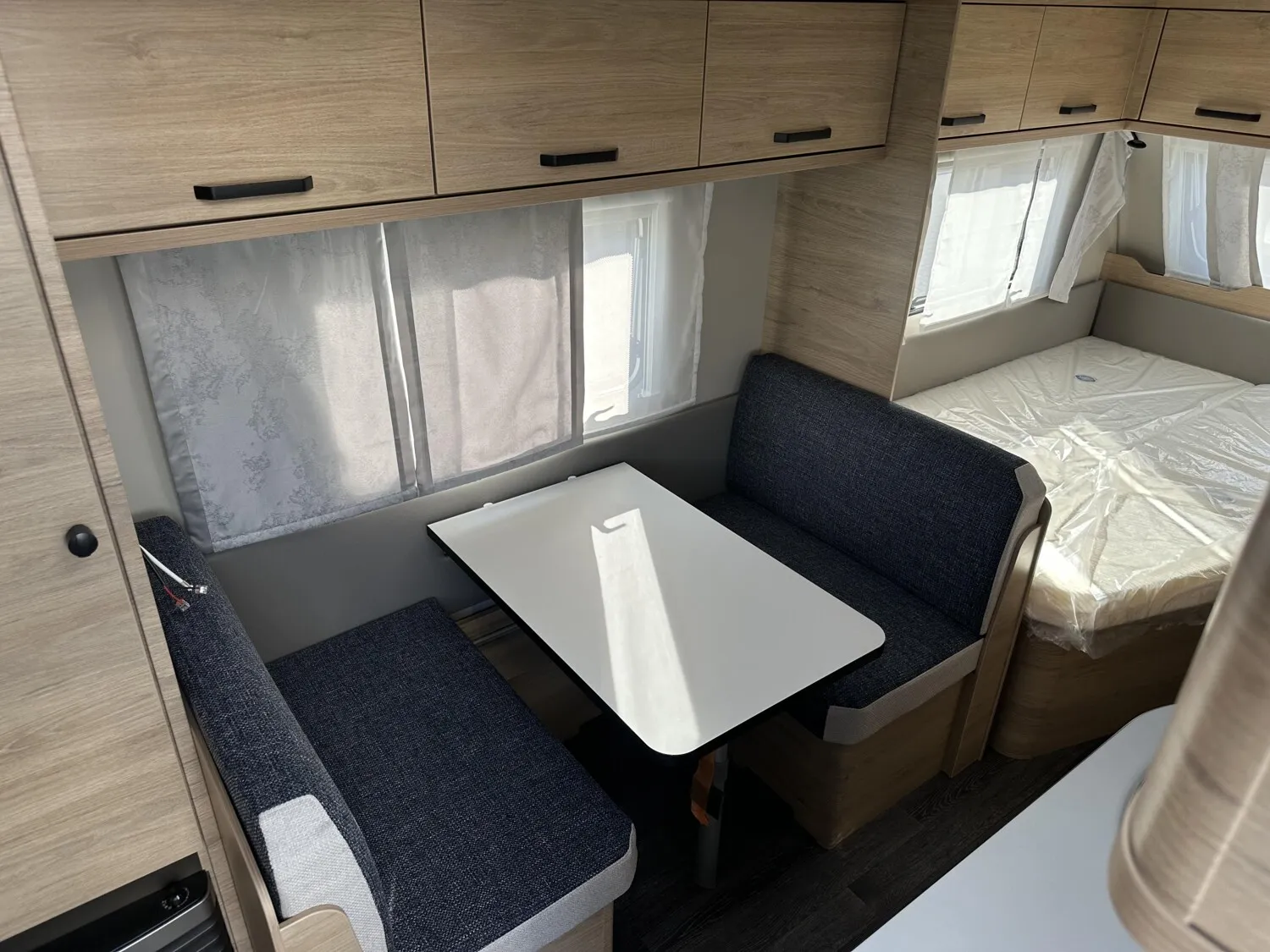 - Smart-Paket (Frischwassertank 45 Liter, Festeinbau, Stabilisator-Sicherheits-Kupplung, Umluftanlage 12 V, Kombi-Rollos an den Fenstern, inkl. Verdunklung und Insektenschutz)