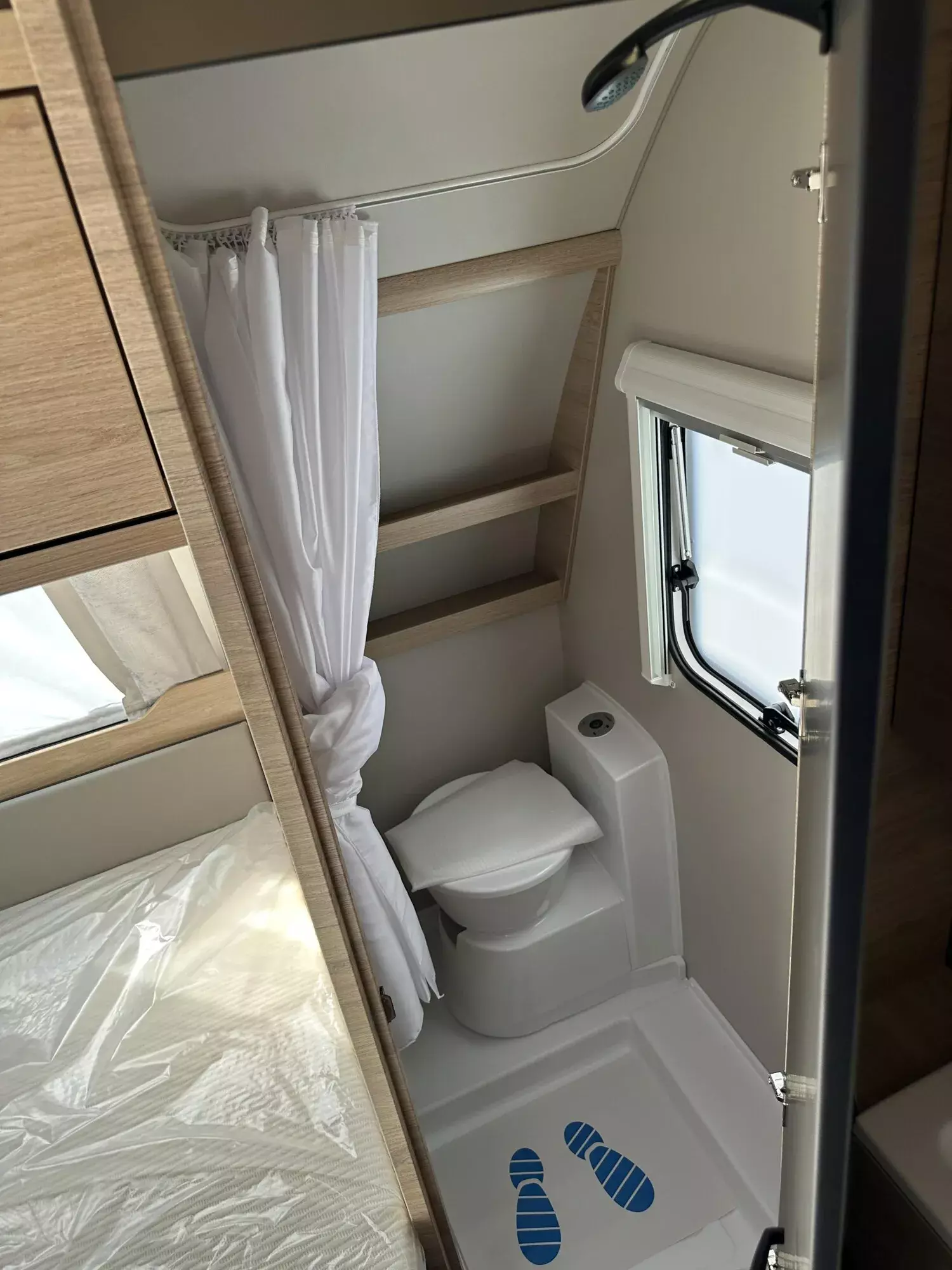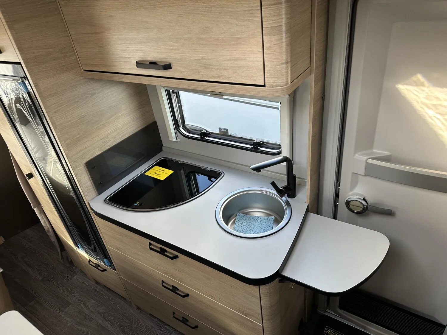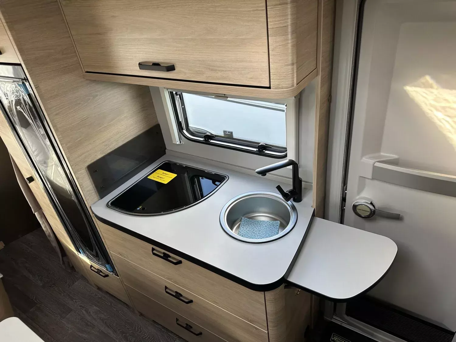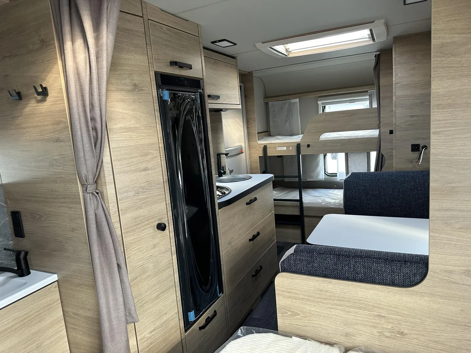 - Smart-Paket (Frischwassertank 45 Liter, Festeinbau, Stabilisator-Sicherheits-Kupplung, Umluftanlage 12 V, Kombi-Rollos an den Fenstern, inkl. Verdunklung und Insektenschutz)