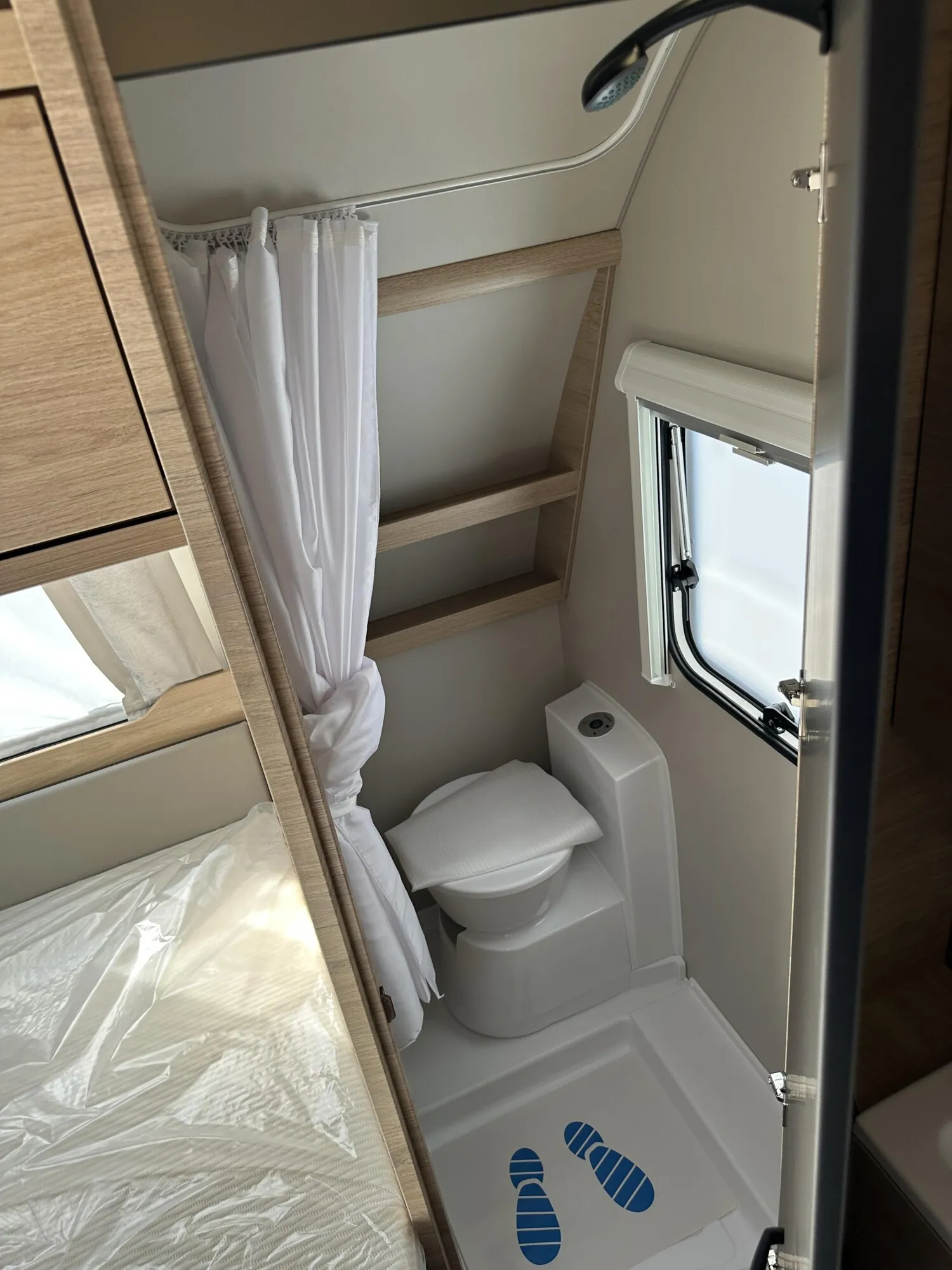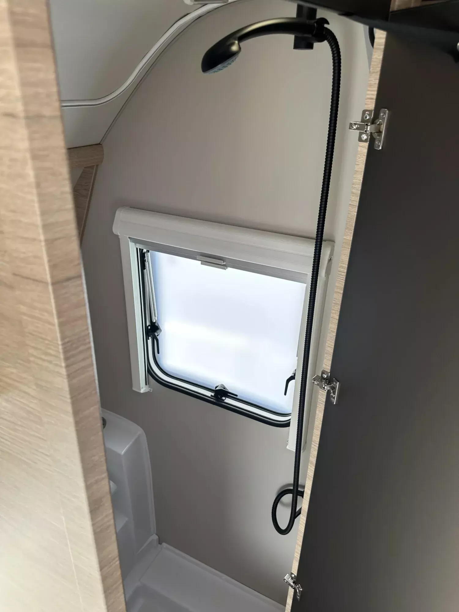 - Advanced-Paket (TRUMA Therme mit Anschluss für Küche und T-Raum (nur 230 V Betrieb), Dachhaube (Hebe-Kipp) 70 x 50 cm, mit Insektenschutz und Verdunklung (Mitte), Abwassertank 25 Liter, rollbar, Duschausbau Waschraum: Brausearmatur mit Halter und Duschvorhang, Insektenschutztür)